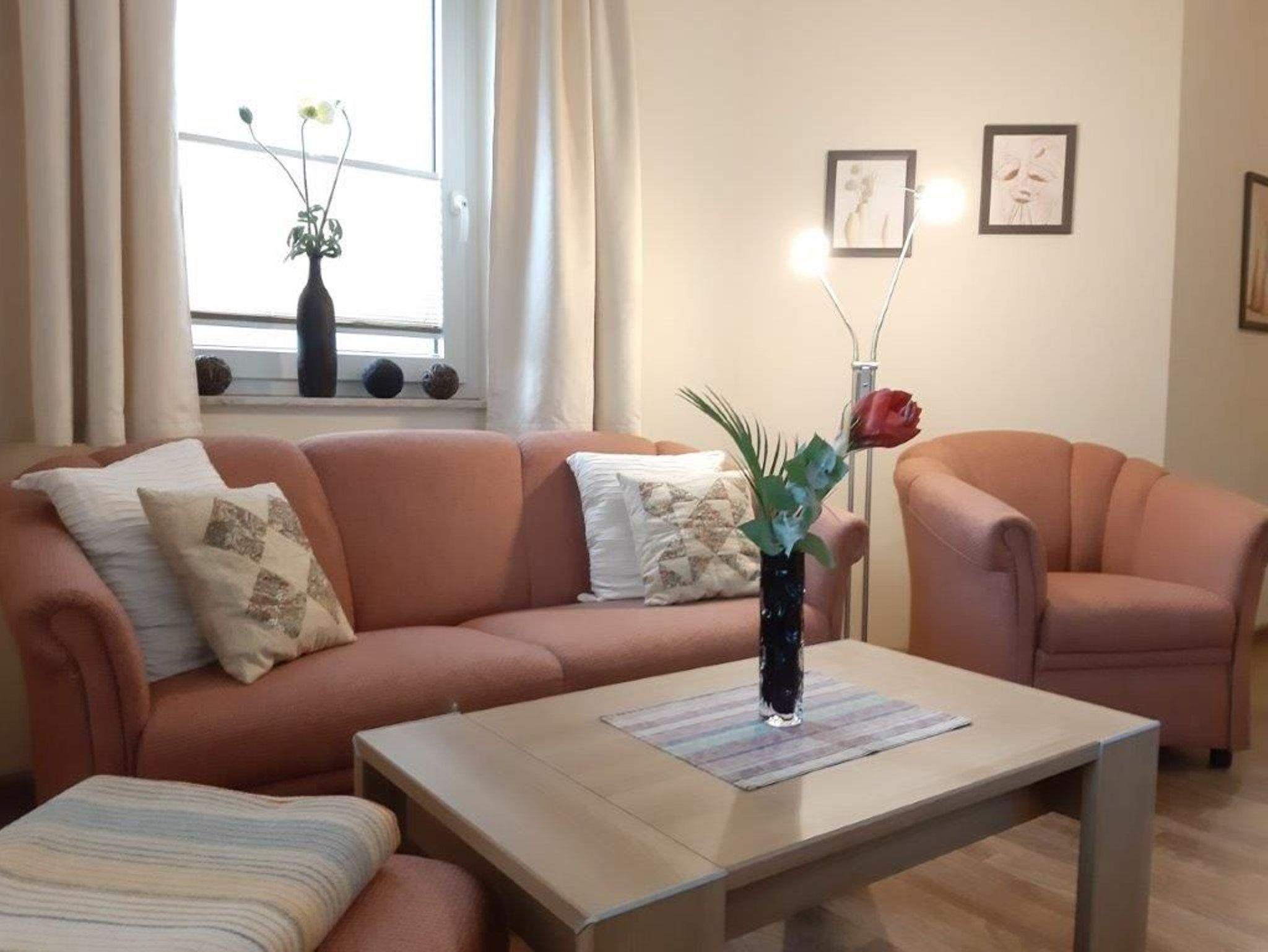 - in der Parterre - möblierte Terrasse - Autostellplatz auf dem Grundstück - Waschmaschine und Trockner gegen Gebühr (Haus 7) - Nichtraucherappartement! Keine Haustiere! - WLAN-Bereitstellung kostenfrei (ohne Gewähr) - Wohnbereich mit Couch (ohne Schlaffunktion) , Küche und Essplatz - Küchenzeile - 2 Kochplatten, Mikrowelle, Kühlschrank und Geschirrspüler - DU/WC buchbar ab 5 ÜN, Juli-August ab 7 ÜN