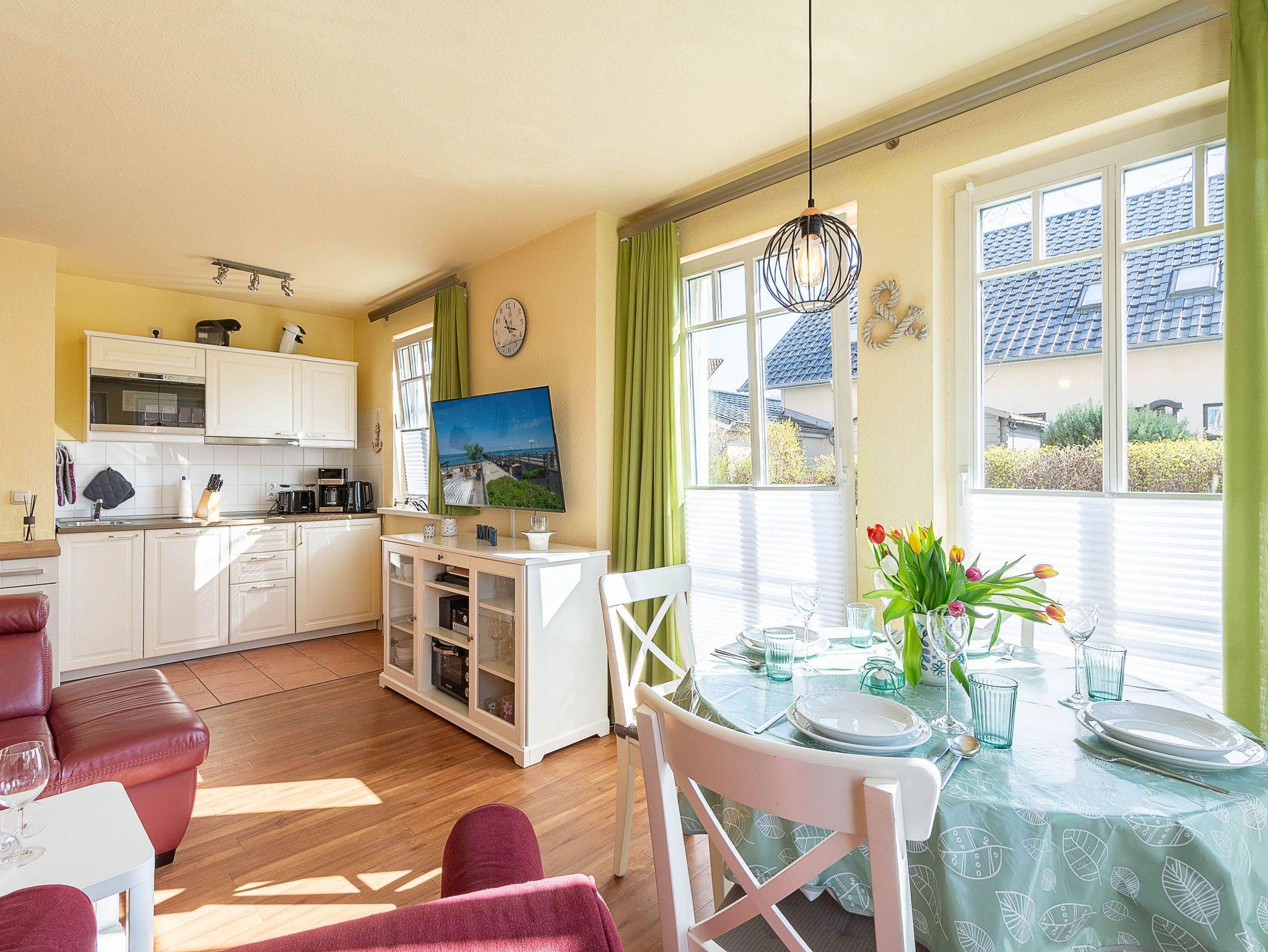 Unsere liebevoll eingerichtete Ferienwohnung 02 bietet Ihnen auf 50 m² ein gemütliches Zuhause für bis zu vier Personen. Die moderne 3-Raum-Wohnung befindet sich im Erdgeschoss der Ferienanlage Ulmenschlößchen und wurde mit 4 Sternen vom Deutschen Tourismusverband ausgezeichnet. Sie verfügt über ein einladendes Wohnzimmer mit integrierter Küchenzeile, zwei behagliche Schlafzimmer und ein stilvolles Badezimmer. Ein besonderes Highlight ist die nach Süden ausgerichtete Terrasse zur Straßenseite, die Sie direkt vom Schlafzimmer aus betreten können ? perfekt, um den Tag mit einer Tasse Kaffee an der frischen Ostseeluft zu beginnen.