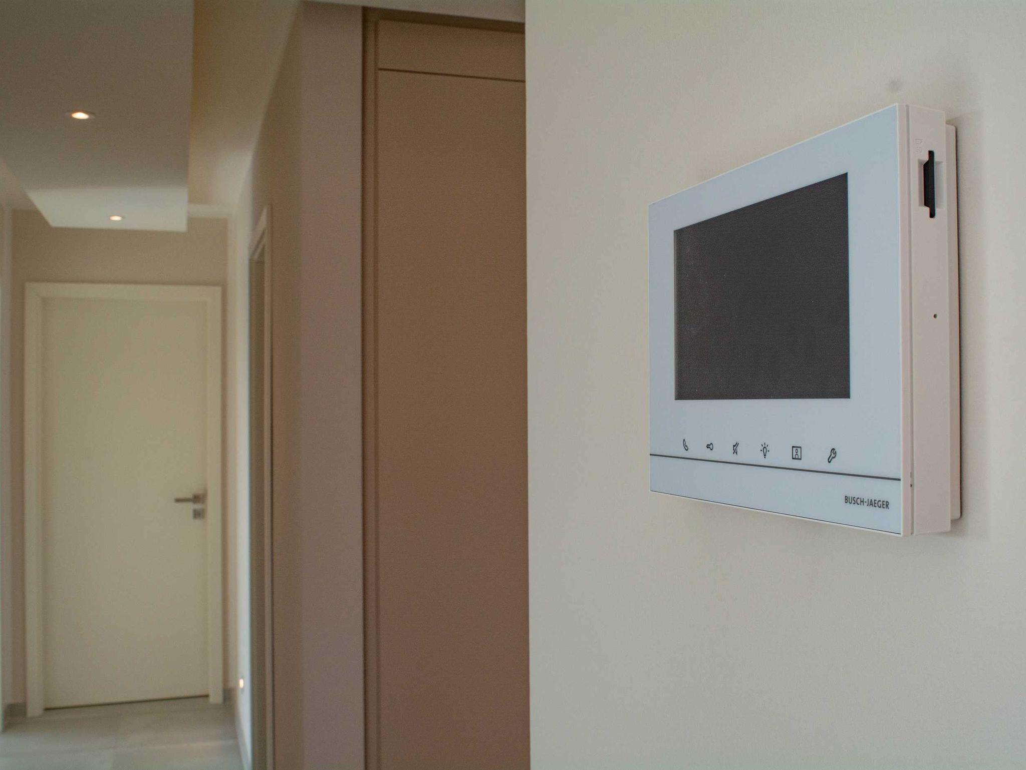 Heizung und Fensterläden werden bequem über ein modernes Haustechniksystem gesteuert. Hierüber lässt sich auch die nach einem Lichtkonzept eingerichtete Beleuchtung in bestimmten Programmen steuern.