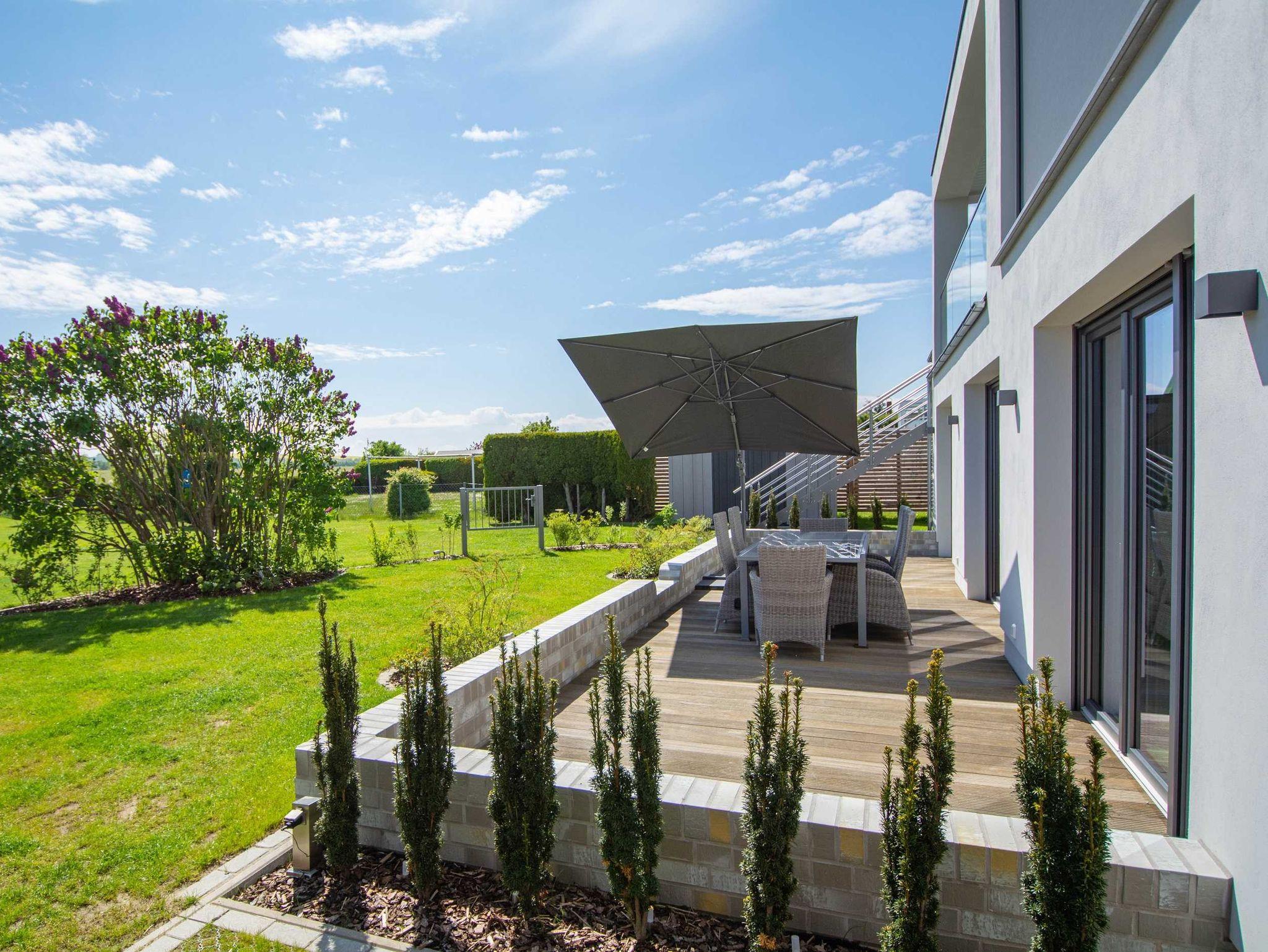 Der im Jahr 2021 in einem Wohngebiet im Ostseebad Kühlungsborn erbaute luxuriöse Neubau fasziniert in seiner modernen und schlichten Bauweise. In diesem Mehrfamillienhaus befindet sich eine Ferienwohnung im Erdgeschoss sowie eine Mietwohnung im Obergeschoss. Am Haus befinden sich 2 Pkw-Stellplätze (wobei einer gefangen ist), die den Gästen der Ferienwohnung zur Verfügung stehen. Die großzügige Terrasse ist besonders im Sommer wie ein zweites Wohnzimmer und auch im Dunkeln eine Augenweide: Durch die indirekte Gartenbeleuchtung (Dämmerungsschalter) wird jeder Abend im Freien zu einem absolut gemütlichen Soiree in bezaubernder Atmosphäre. Der freie Blick in Richtung Leuchturm ist dann nur noch das i-Tüpfelchen.