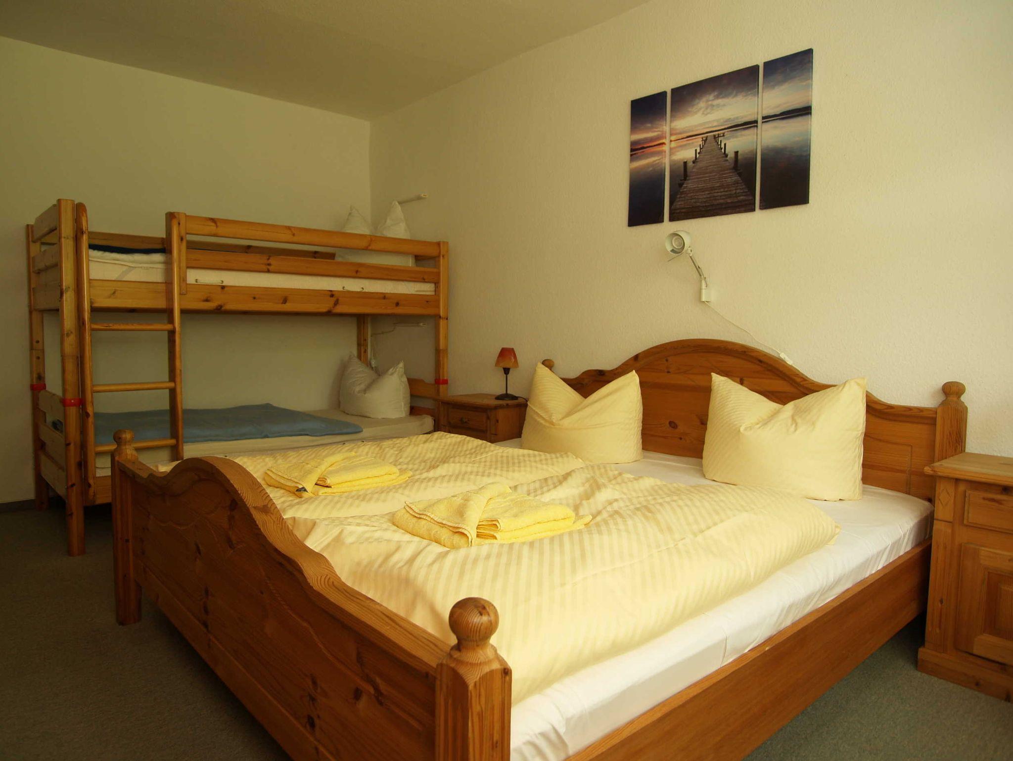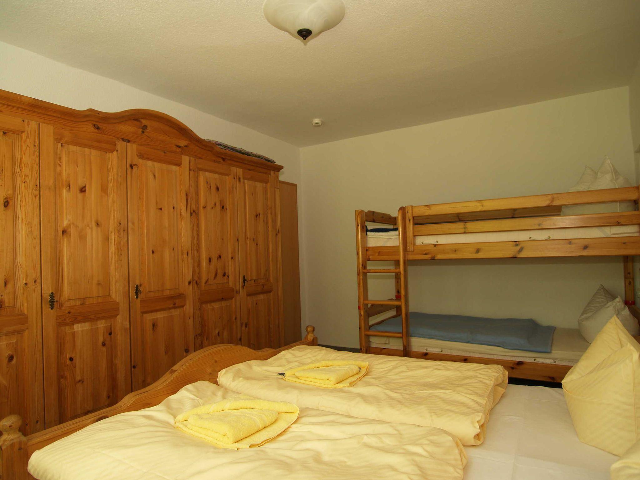 Im Schlafzimmer lädt Sie ein komfortables Doppelbett (2 x 90 x 200 cm) zur Nachtruhe ein. Ein Doppelstockbett (je Etage 90cm x 200cm) für Ihre kleinsten Mitreisenden sowie ein Kinderbett und ein Hochstuhl stehen Ihnen hier ebenfalls zur Verfügung. Der großzügige Kleiderschrank bietet genügend Platz für Ihre Urlaubsgarderobe.