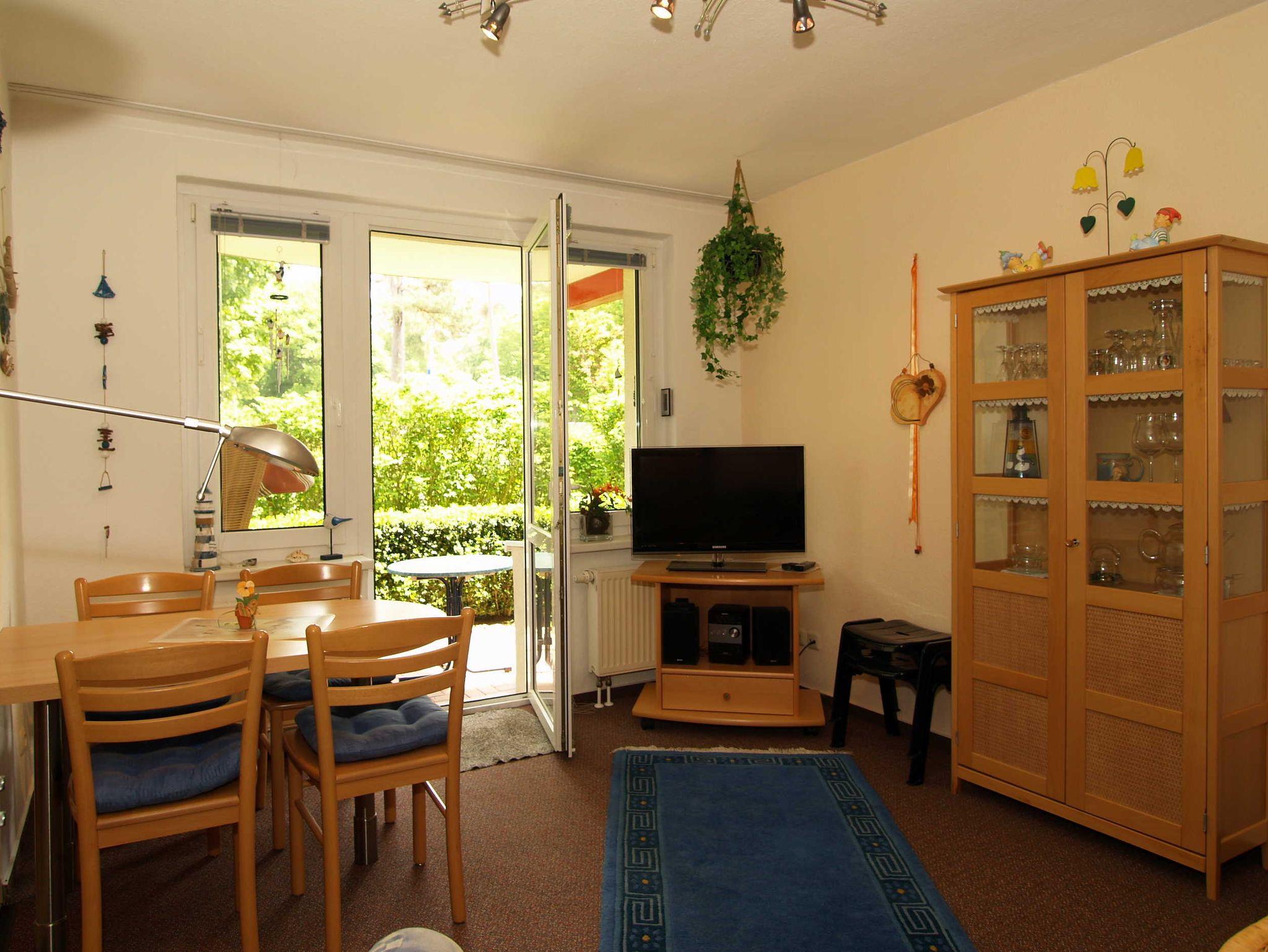 Herzlich willkommen in der Wohnung Nr. 10 in der Residenz Dünengarten. Sie wohnen in einer ca. 50m² großen 2-Raum-Ferienwohnung, die sich im Erdgeschoss des Hauses befindet. Es empfangen Sie ein heller offener Wohn-und Essbereich mit Küchenzeile und Terrasse, ein Schlafzimmer mit Doppelbett und Etagenbett sowie ein Wannenbad.
