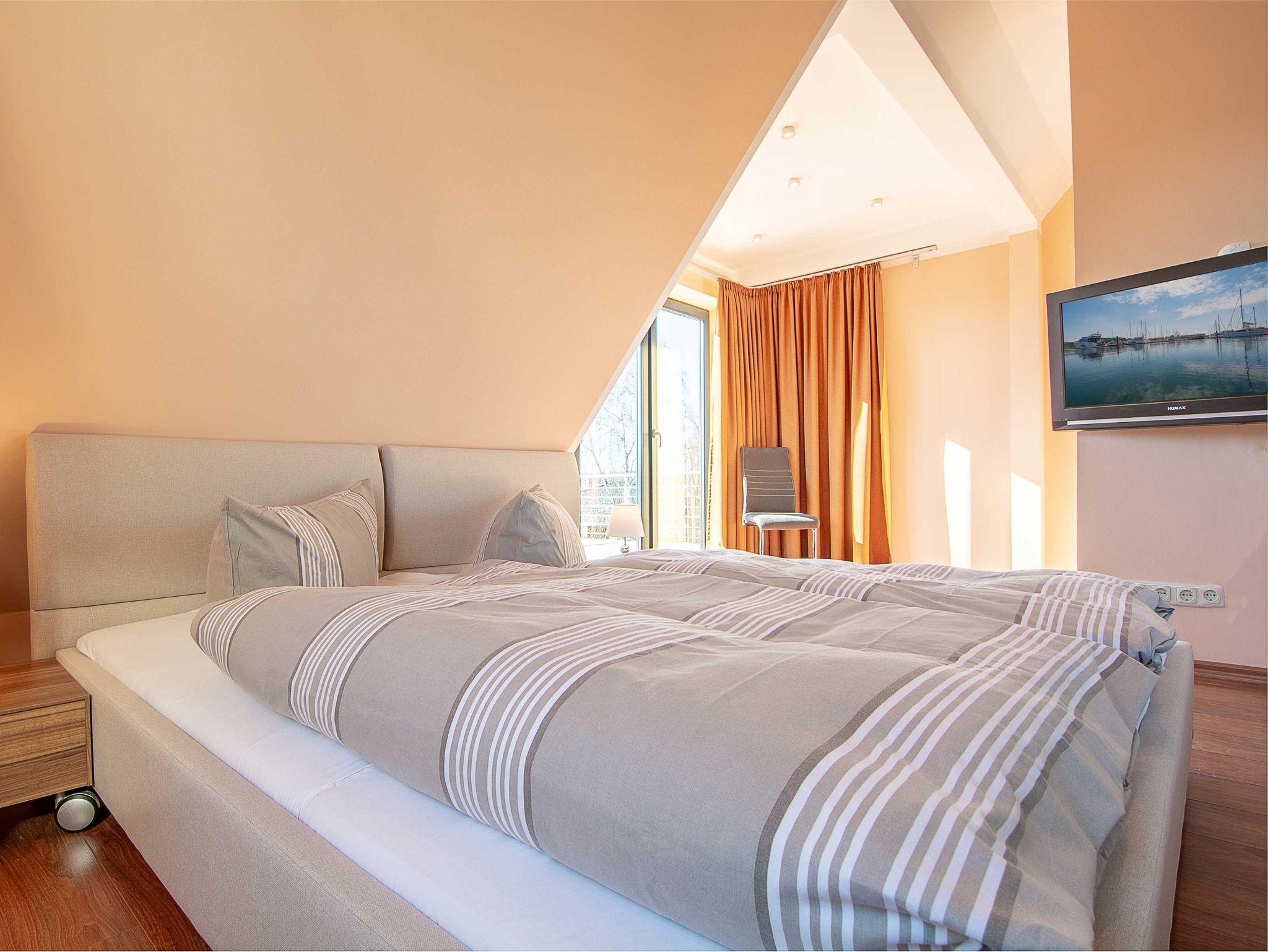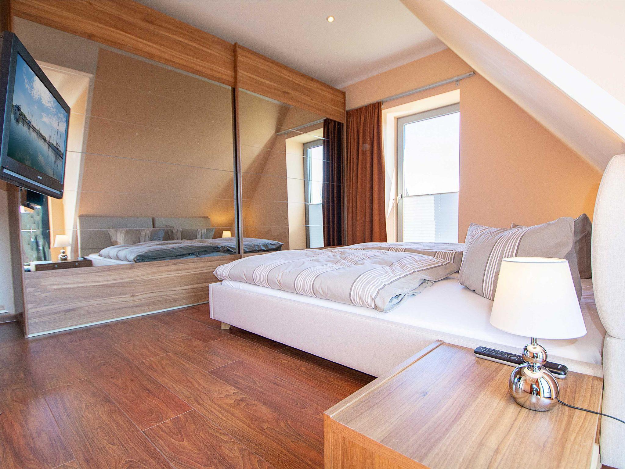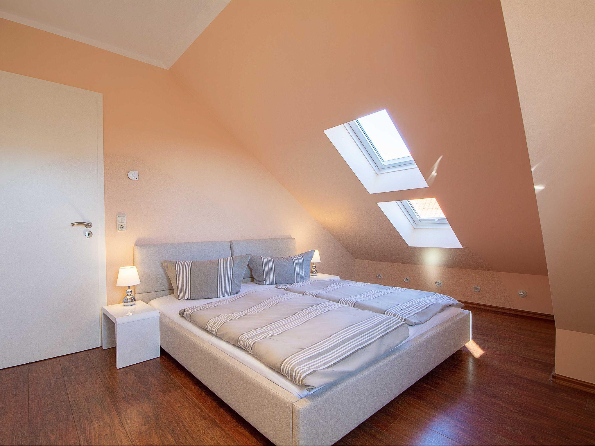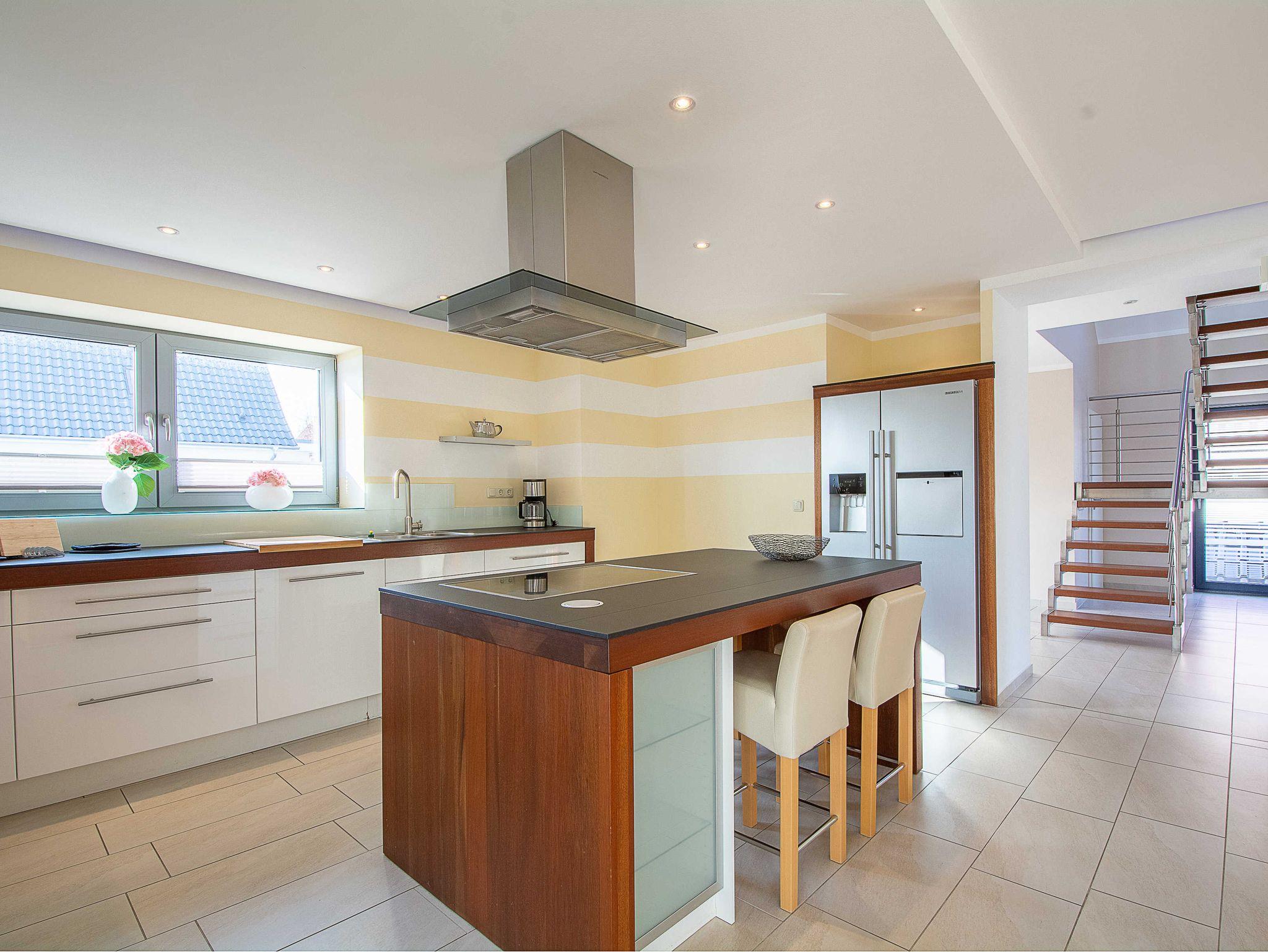 Sie wohnen in einem ca. 180 m² großen Ferienhaus, das über 2 Etagen verläuft und für bis zu 6 Personen geeignet ist. In der 1. Etage befindet sich der große Wohnraum mit voll ausgestatteter Küche (4-Platten Ceranfeld, Backofen, Mikrowelle, Geschirrspüler, Kühlschrank). Ein geräumiger Essbereich schließt sich direkt an. Von dem Essbereich aus betreten Sie den Südbalkon. Auf dieser Etage befinden sich ebenfalls ein Gäste-WC sowie der Hauswirtschaftsraum mit Waschmaschine und Trockner. In der 2. Etage befinden sich die 3 Schlafräume mit jeweils einem Doppelbett. Hier befindet sich auch die große, möblierte nach Süden ausgerichtete Dachterrasse, von der aus Sie den Blick in die Umgebung schweifen lassen können und u.a. den Leuchtturm Bastorf sehen können. Das Bad mit Badewanne, Dusche und WC vervollständigt das Gesamtbild dieses Hauses. Das Erdgeschoss dieses Ferienhauses wird privat genutzt.