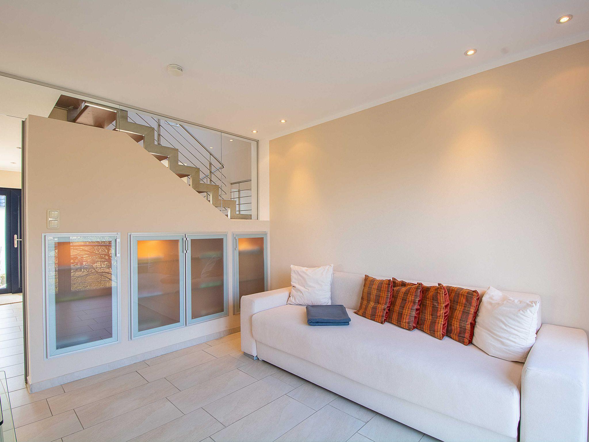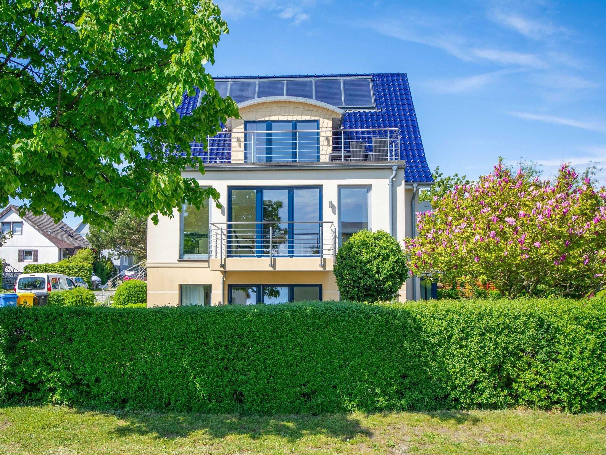 Hier fängt der Urlaub richtig an! Das exklusive Ferienhaus im Krischanweg befindet sich in einer ruhigen Eigenheimsiedlung im Ortsteil West des wunderschönen Ostseebades Kühlungsborn. Schon von außen lässt sich erahnen, was die Gäste erwartet: Das liebevoll gepflegte Grundstück, die großen Fenster, die ganz viel Licht durch den Wintergarten in die Wohnung fallen lassen, der kleine Balkon und die große Dachterrasse, die nach Süden ausgerichtet ist und auf der Sie auch an kalten windigen Tagen im Strandkorb ein wenig Schutz finden. Das Haus verfügt über zwei Pkw-Stellplätze.