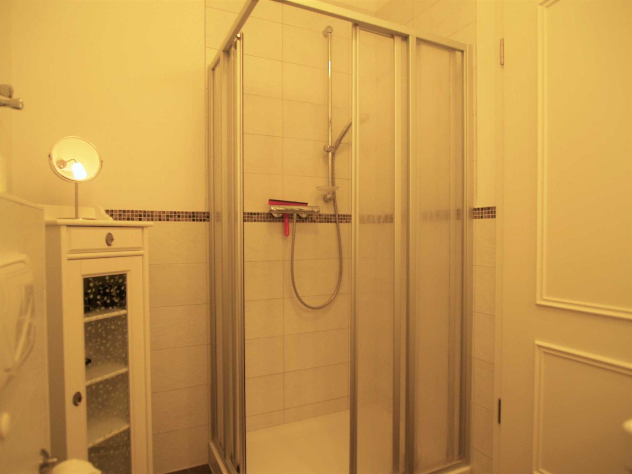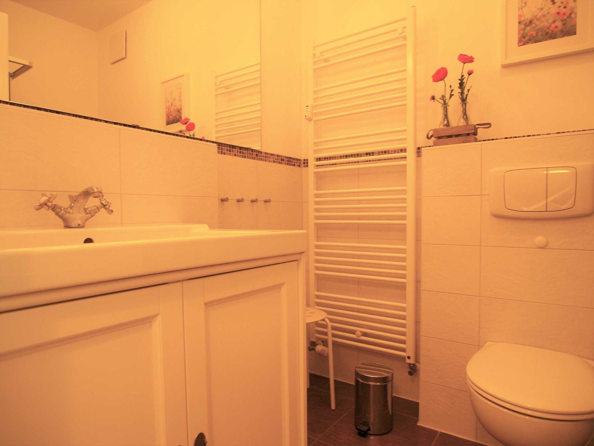 Das geflieste Bad mit Dusche und WC sowie Handtuchheizung vervollständigen das Gesamtbild dieser Wohnung.