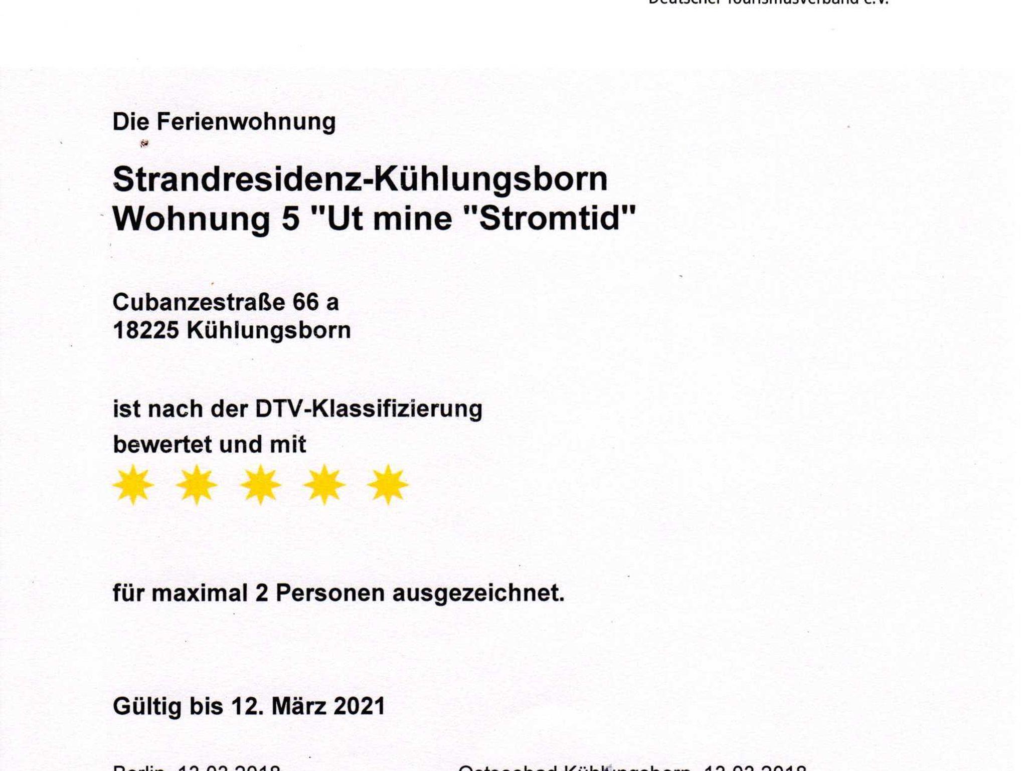 Die 7 Wohnungen gehören zu den Flaggschiffen der vom DTV zertifizierten deutschen Ferienwohnungen mit 1.216 bis zu 1.331 vergebenen Punkten. 5 Sterne gibt es ab 900 Punkte.