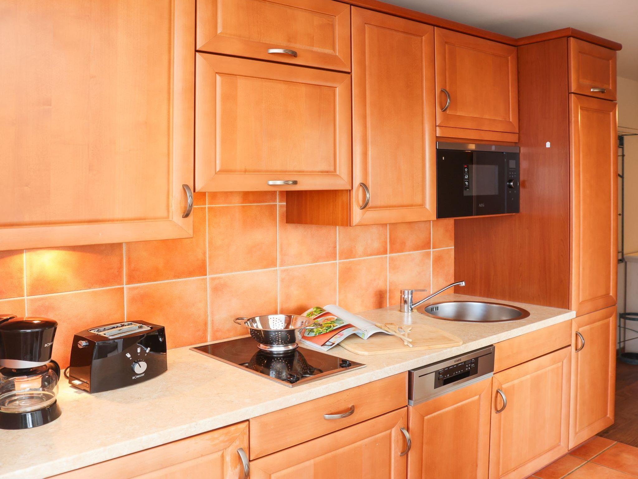 Größe ca. 60 qm - Wohnzimmer mit Schlafcouch, Esstisch, Küchenzeile, Kabel.TV, Radio und französisches Fenster mit freiem Meeresblick - Schlafzimmer mit Doppelbett und Kleiderschrank - Gästezimmer mit Ausziehbaren Bett(90x200) und Anrichte - Küchenzeile mit Mikrowelle, Zweiplattenkochherd, Geschirrspüler, Kühlschrank und Kaffeemaschine - Flur mit Garderobe - Dusche /WC