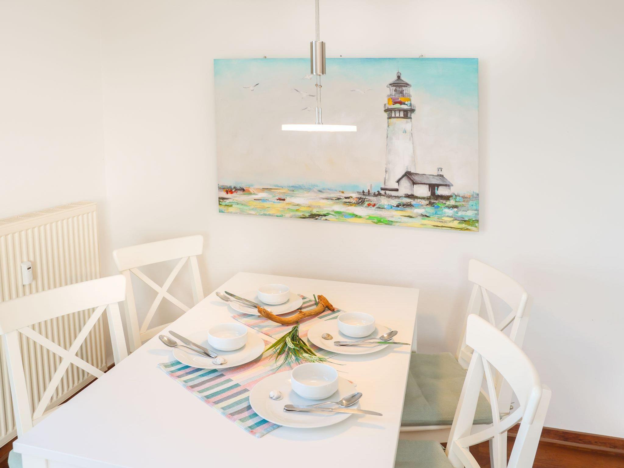 Die Wohnung WM416 ist eine komfortable Dreiraum-Wohnung mit großen französichen Fenstern zur Seeseite und ca. 60 qm groß. Sie hat keinen Balkon. Der Preis für die Ferienwohnung WM416 beinhaltet Wäsche für 2 Personen und Endreinigung. Passwortgeschütztes W-LAN und Parkplatz-Nr. 118 in der Tiefgarage (1,60 m hoch) steht kostenfrei zur Verfügung. Die zweckmäßig gestaltete Ferienwohnung in der 4. Etage hat einen offenen Wohnbereich mit Küchenzeile und Essbereich, ein Schlafzimmer mit Doppelbett, ein Gästezimmer mit Einzelbett (mit Ausziehfunktion). Die funktionale Küchenzeile ist mit 2-Platten-Ceranfeld, Kühlschrank mit Gefrierfach, Geschirrspüler, Mikrowelle, Kaffeemaschine und div. Geschirr ausgestattet. Ein Bad mit großer Dusche und flachen Einstieg, Waschtisch und WC komplettieren den sehr modernen Gesamteindruck der Wohnung.