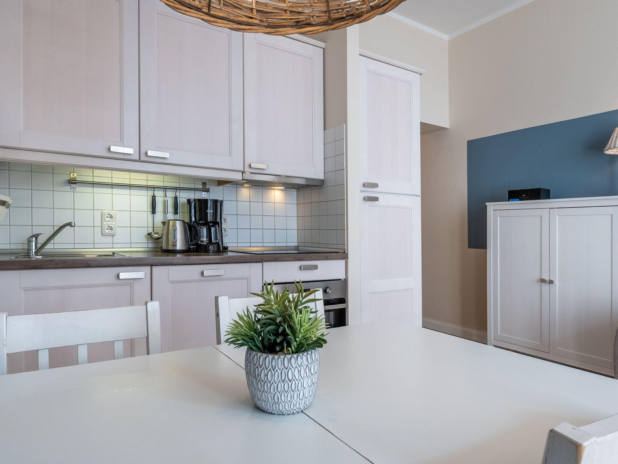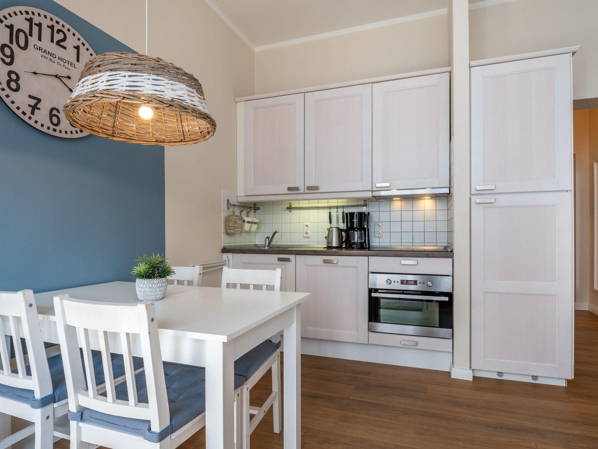Die Küchenzeile ist vollständig ausgestattet[nbsp] mit Herd mit Cerankochfeld, Mikrowelle/Backofen, Geschirrspüler, Toaster und Wasserkocher. Zudem erwarten Sie eine Kaffeemaschine für Filterkaffee und eine Senseo-Maschine für Kaffee-Pads.