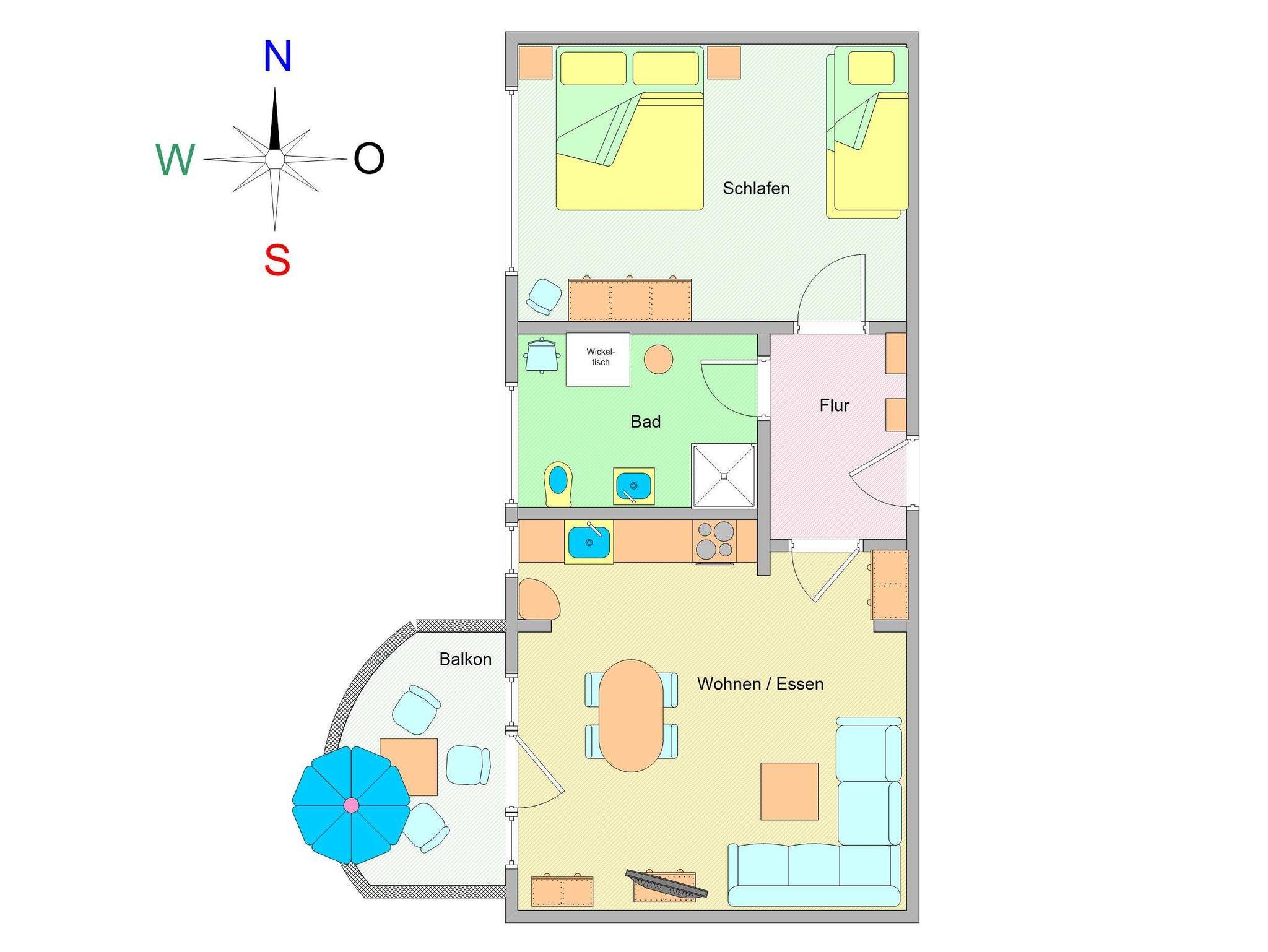 Herzlich willkommen in der Wohnung Nr. 26 in der Residenz Dünengarten. Sie wohnen in einer ca. 50m² großen 2-Raum-Ferienwohnung, die sich im 2. Obergeschoss des Hauses befindet. Es empfangen Sie ein heller offener Wohn-und Essbereich mit Küchenzeile, ein Schlafzimmer, ein Duschbad und ein Balkon.