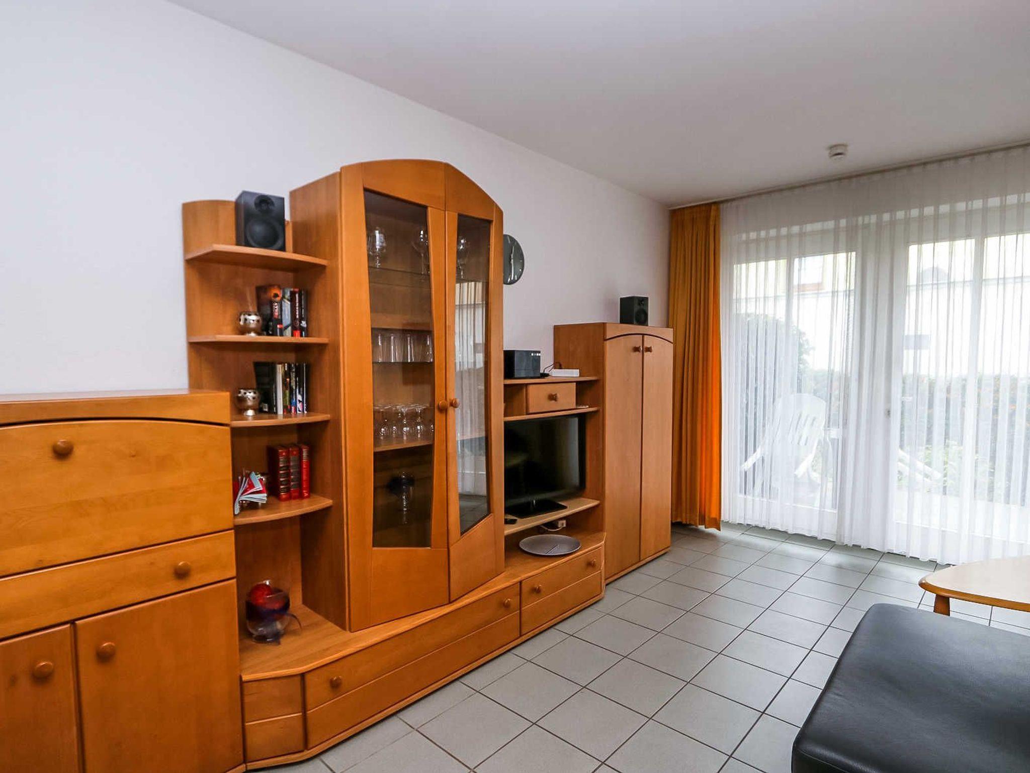 Herzlich willkommen in der Wohnung 7 in der Appartementanlage „Am Stadtwald“! Sie bewohnen eine komfortable 2-Raum-Ferienwohnung, die sich im Erdgeschoss befindet. Über eine Terrasse (Richtung Süden) betreten Sie das Wohnzimmer. Die zweite Terrasse in Richtung Norden erreichen Sie über das Schlafzimmer. Die hell und freundlich eingerichtete Wohnung bietet auf 48qm Platz für 2 bis 4 Personen.