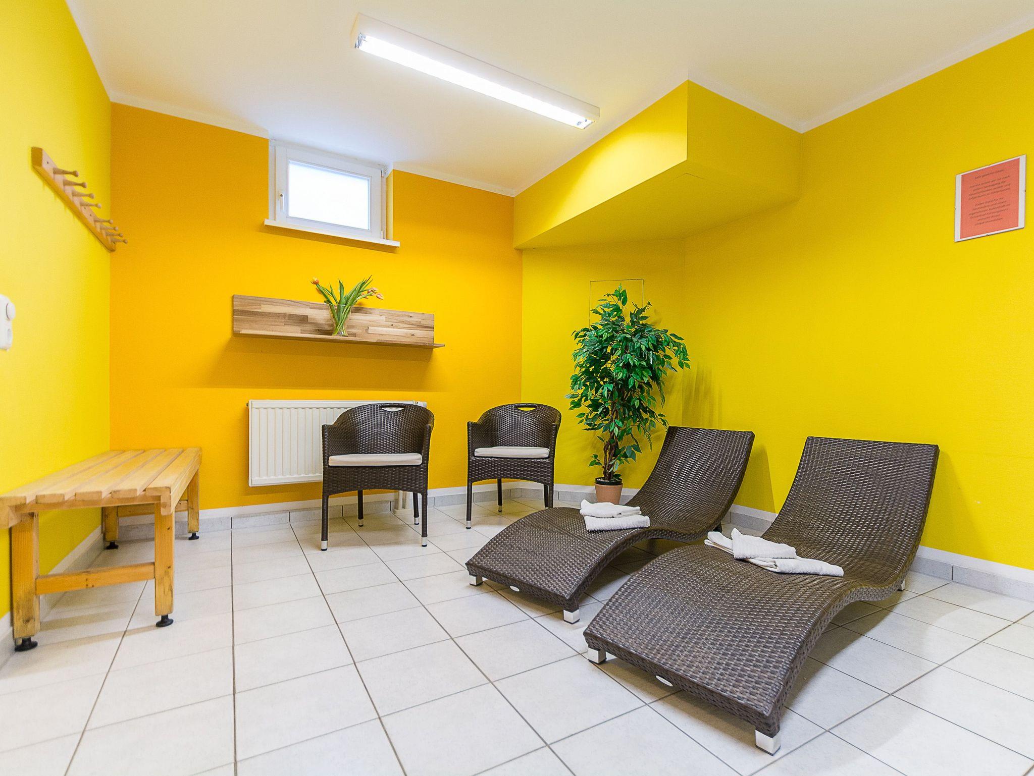 Das Urlaubsdomizil Am Stadtwald wurde im alten Bäderstil der Jahrhundertwende gebaut. Der gepflegte grüne Innenhof und der kleine Gartenteich mit seinem beruhigenden Geplätscher laden zum Entspannen ein. Zugeschnitten auf Ihre Urlaubswünsche bietet die Appartementanlage kleine 2-Raum-Wohnungen und 3-Raum-Appartements für 2-4 Personen. Zu jeder Wohnung gehört ein Balkon oder eine Terrasse. An kalten Tagen können Sie sich in der hauseigenen Sauna (gegen Gebühr/Münzeinwurf) wärmen. Haben Sie Ihr Lieblingskleidungsstück bekleckert oder vielleicht doch nicht genügend Wechselkleidung mit? Kein Problem: In einem separaten Waschraum stehen Ihnen Waschmaschine und Trockner gegen Münzeinwurf zur Verfügung. Zu jeder Wohnung gehört ein Pkw-Stellplatz am Haus bzw. ein Tiefgaragenstellplatz.