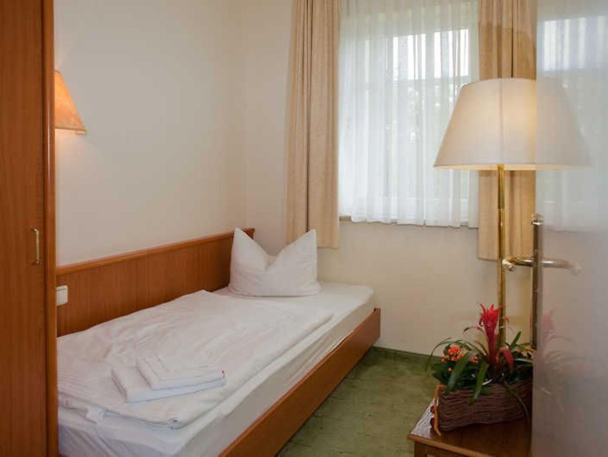 Nur 150 m vom Strand wohnen Sie in einer 3-Raum-Ferienwohnung. Die 34 qm große Wohnung liegt in der ersten Etage. Das Wohnzimmer ist mit einer Couch, Couchtisch, Anrichte, mit Kabel-TV (Flachbildschirm), Radio, Essbereich (Tisch und Stühle) und Küchenzeile ausgestattet. Der Balkon mit Tisch und Stühle geht zur Südseite. Im Schlafzimmer stehen ein Doppelbett und eine kleine Anrichte. Im Gästezimmer stehen ein Bett, Nachtschrank und ein kleiner Kleiderschrank. Im Flur ist eine Garderobe mit Spiegel. Die Küchenzeile wurde ausgestattet mit Mikrowelle, Kühlschrank, Kaffeemaschine, Zwei-Platten-Kochfeld, Toaster und Wasserkocher. Das Bad mit Dusche und WC komplettiert die Wohnung.
