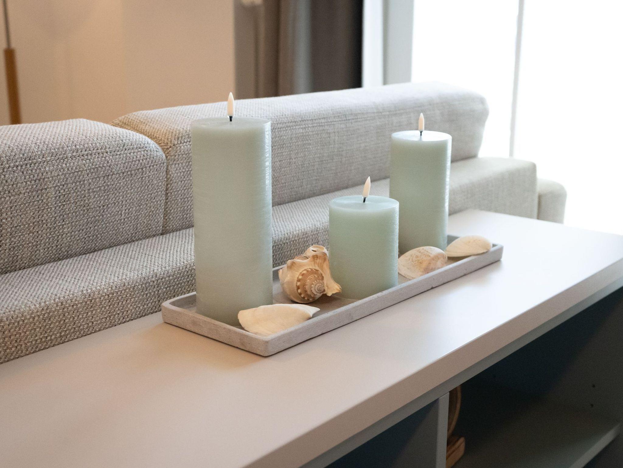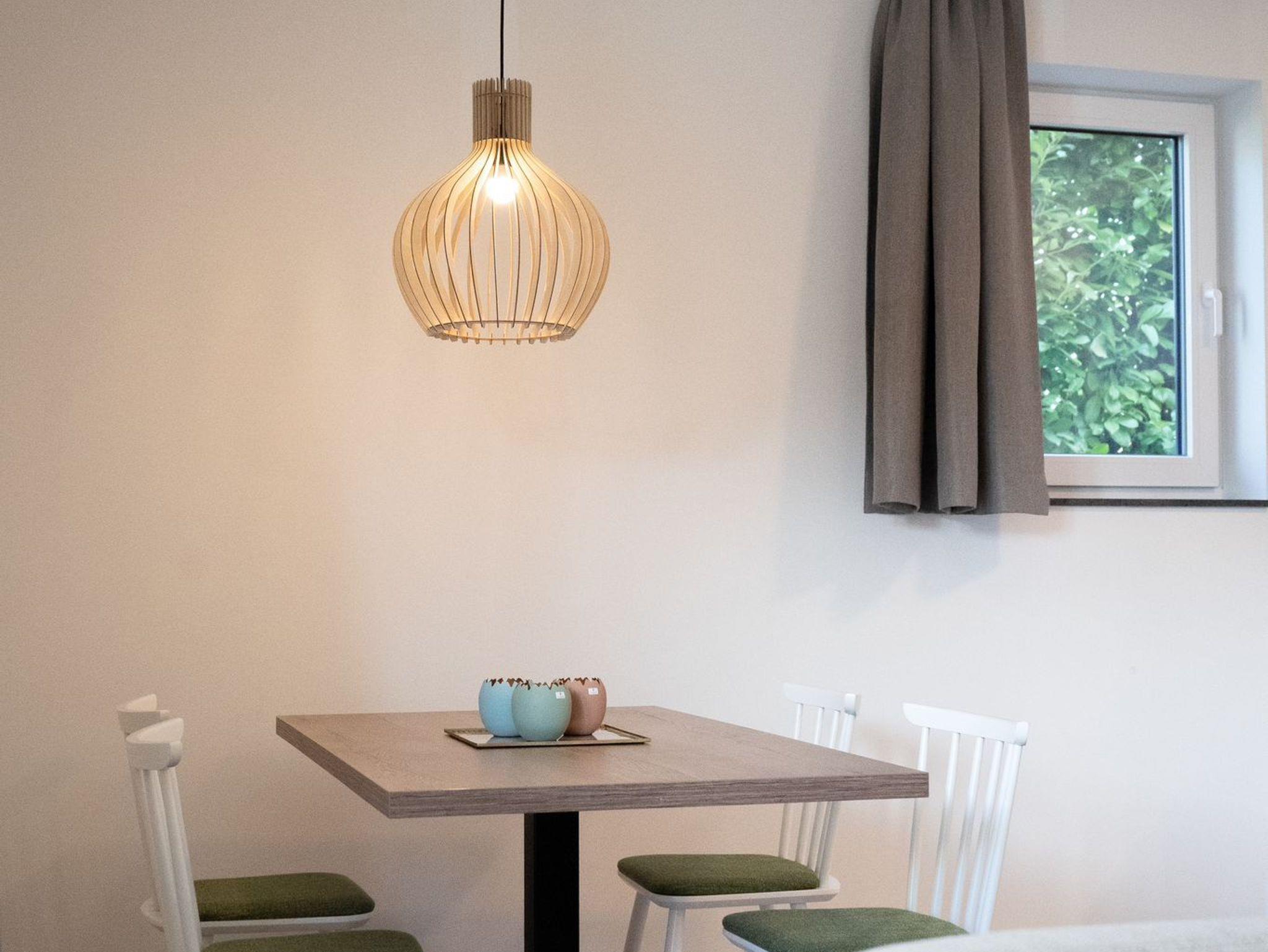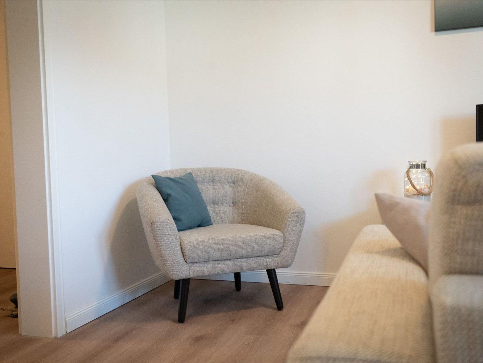 Zu Ihrem Apartment gehört ein großer und lichtdurchfluteter Wohn- und Essbereich mit offener Küche. Im Wohnraum befindet sich ein Sofa, welches mit einer Schlaffunktion ausgerüstet ist.