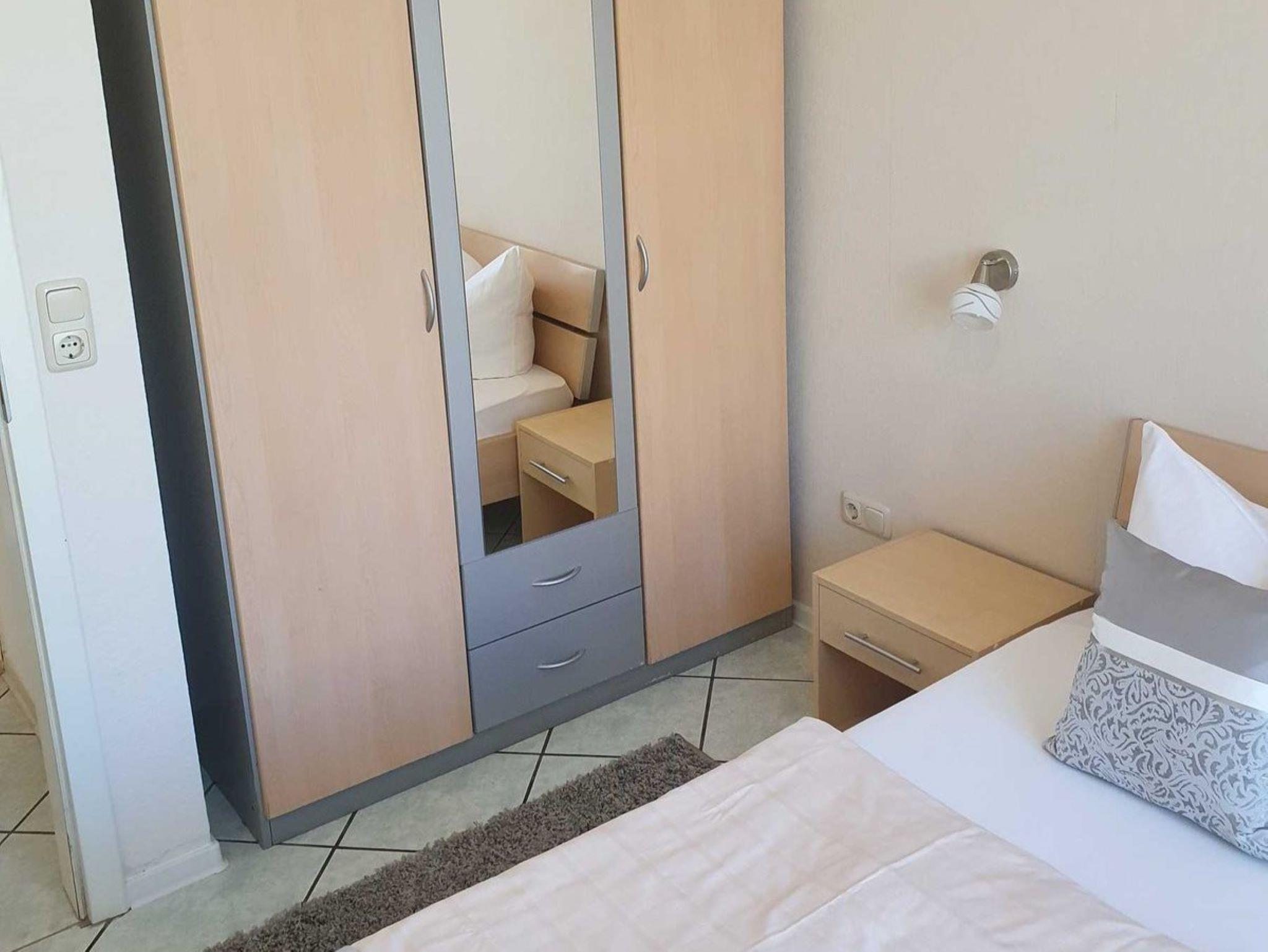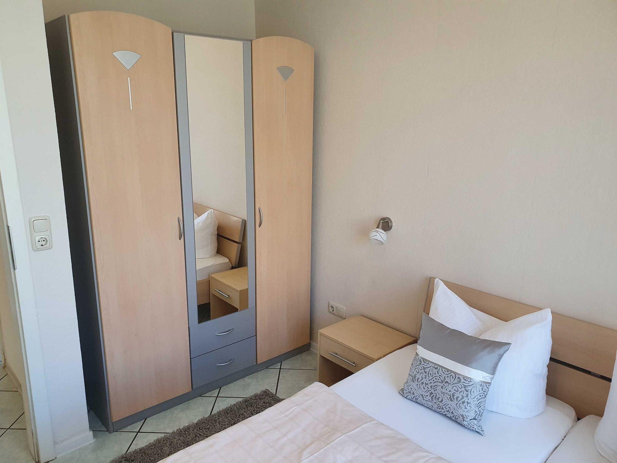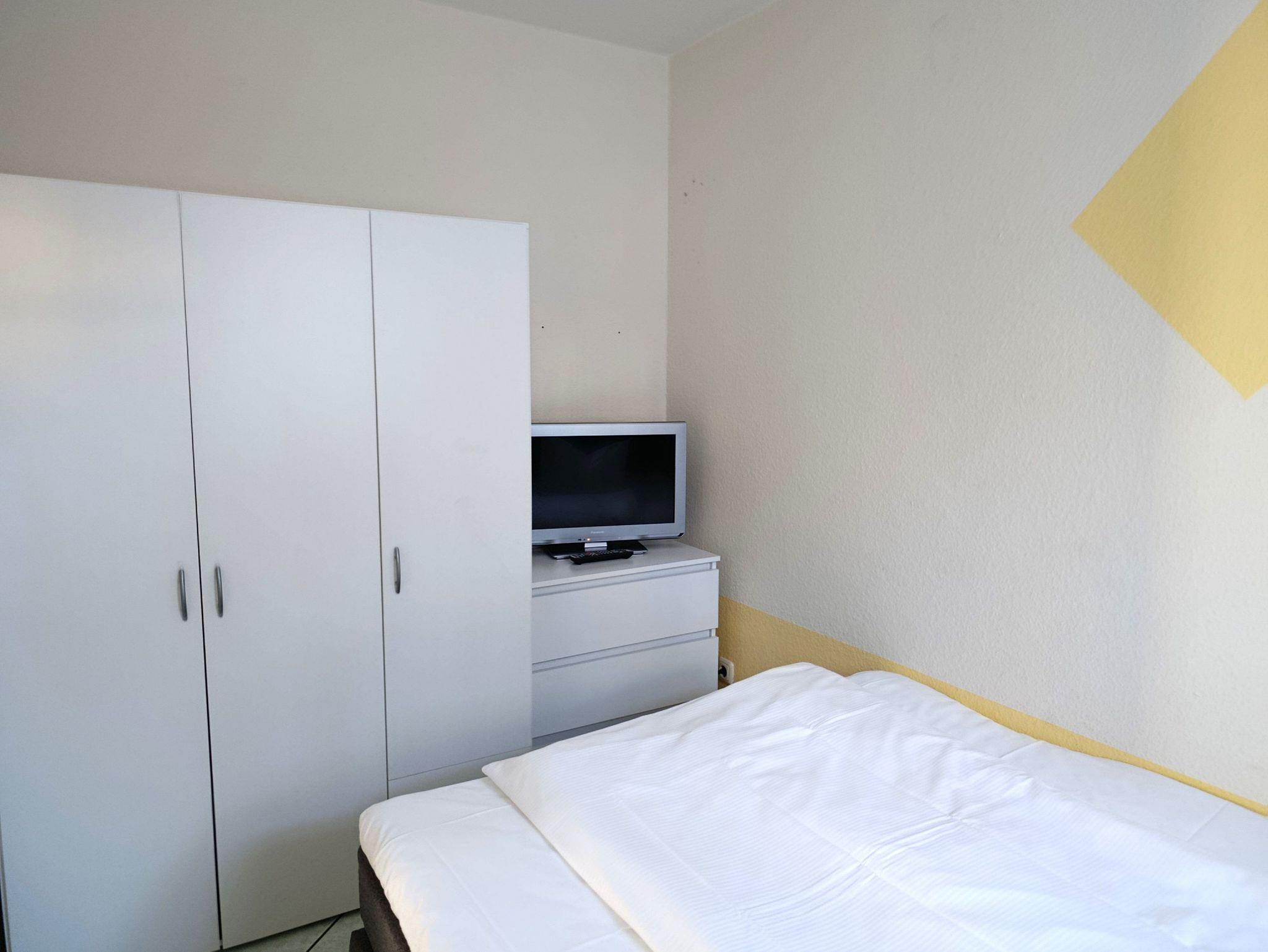 Gästezimmer mit Bett ( 1,40 x 2,00 m) und kleinem Kleiderschrank, Kabel -TV