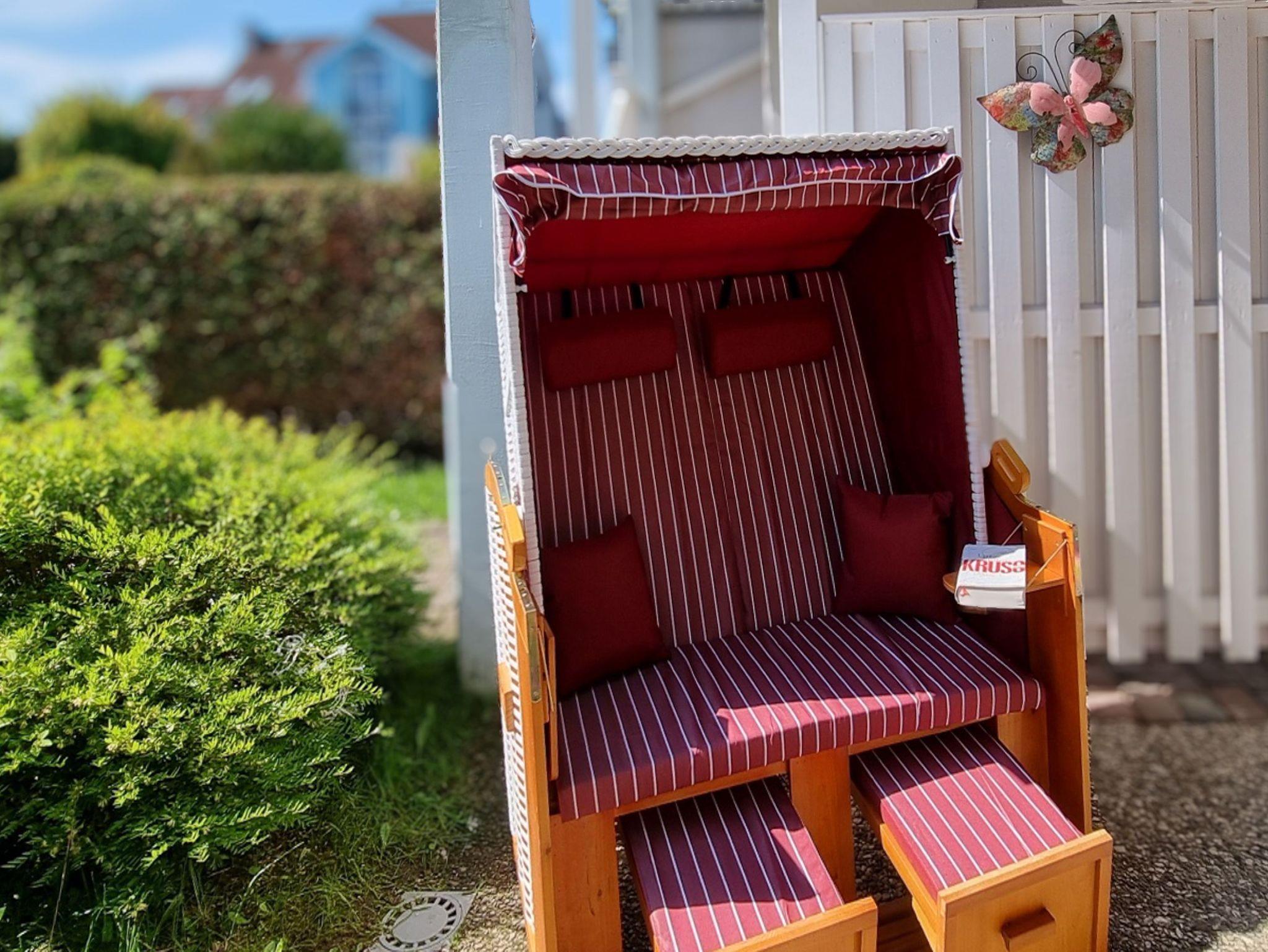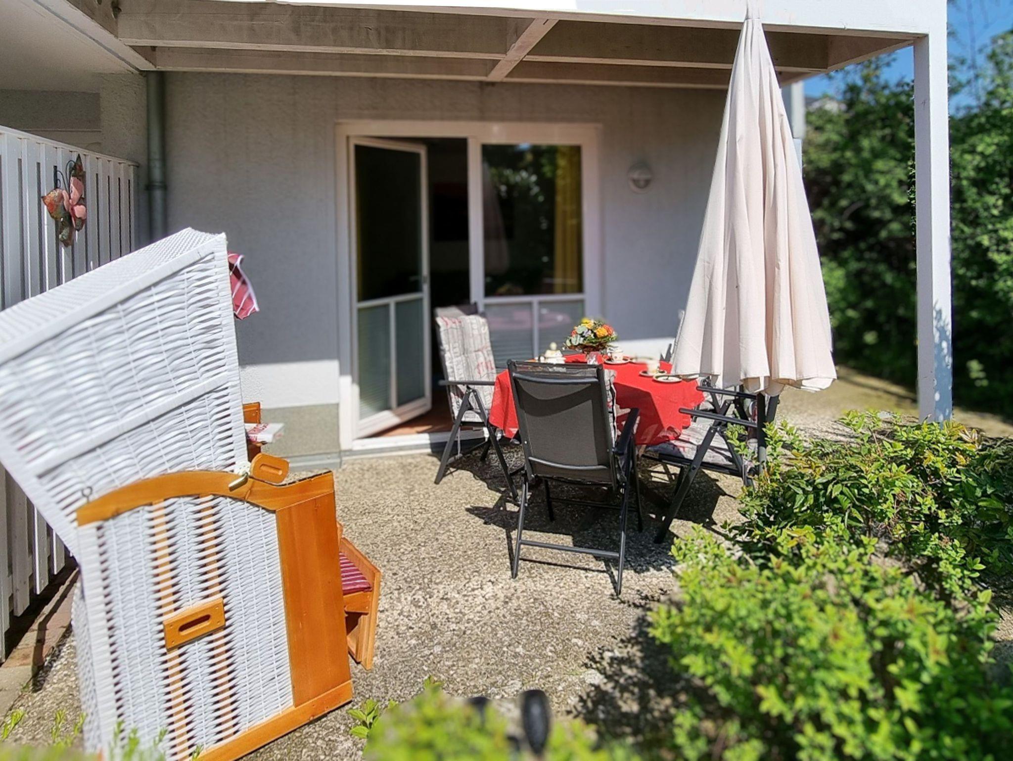 Vom Wohnbereich können Sie die möblierte Süd-Terrasse betreten. Hier können Sie Sonne tanken, relaxen und den Abend nach einem schönen Tag am Meer ausklingen lassen. Ebenso befindet sich auf der Terrasse zusätzlich zu den Gartenmöbeln ein Strandkorb. Die Terrasse kann bei Bedarf durch einen transportablem Hundezaun (ohne Gewähr) abgesperrt werden. Dieser befindet sich im gekennzeichneten Schuppen am Parkplatz.
