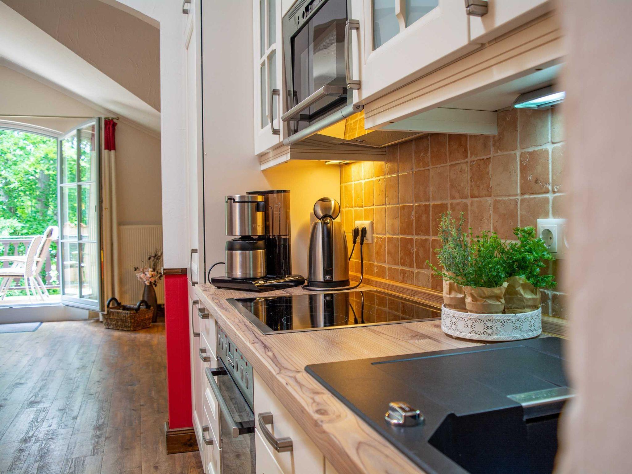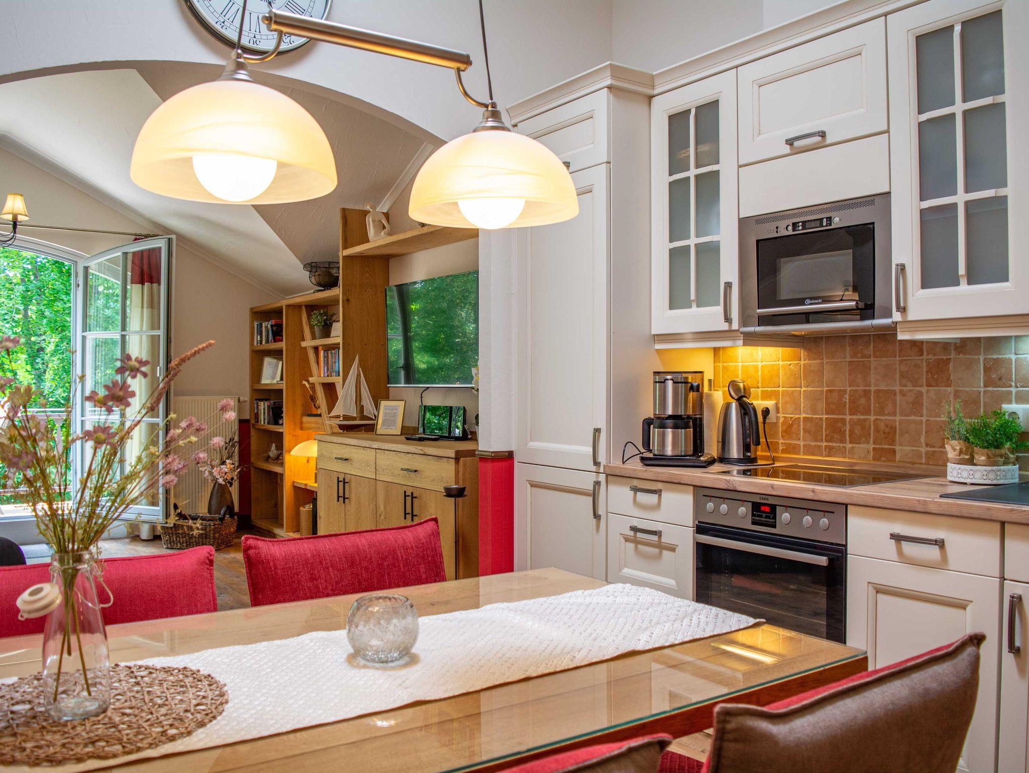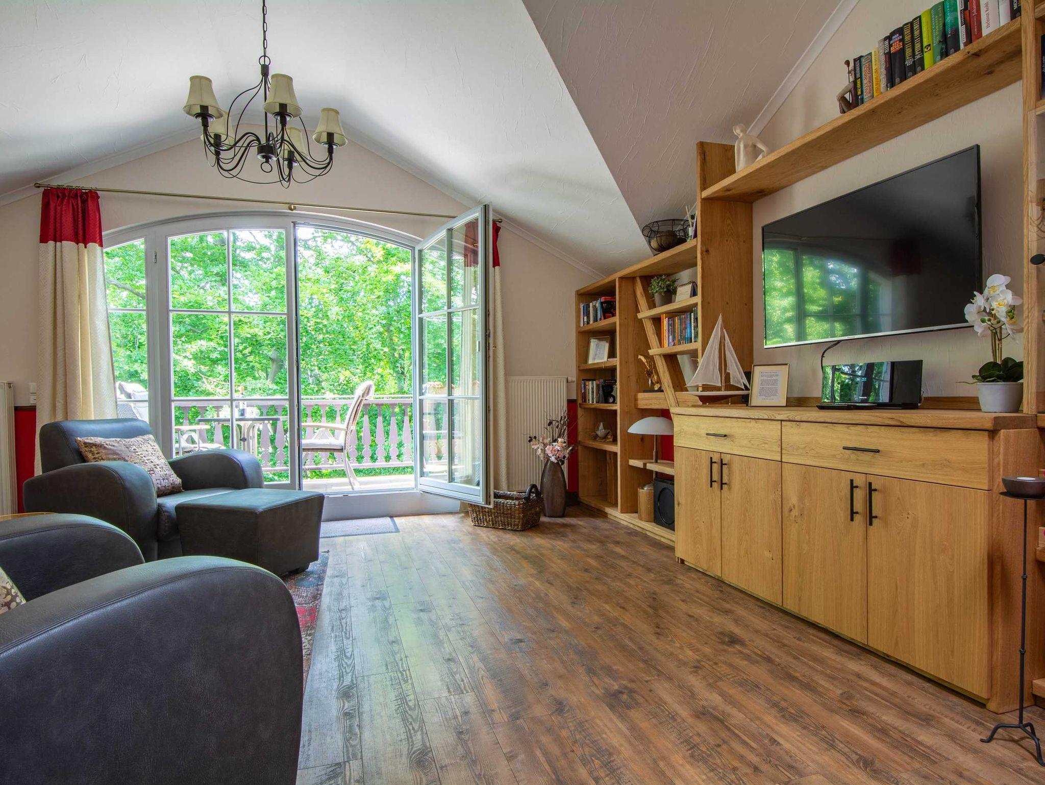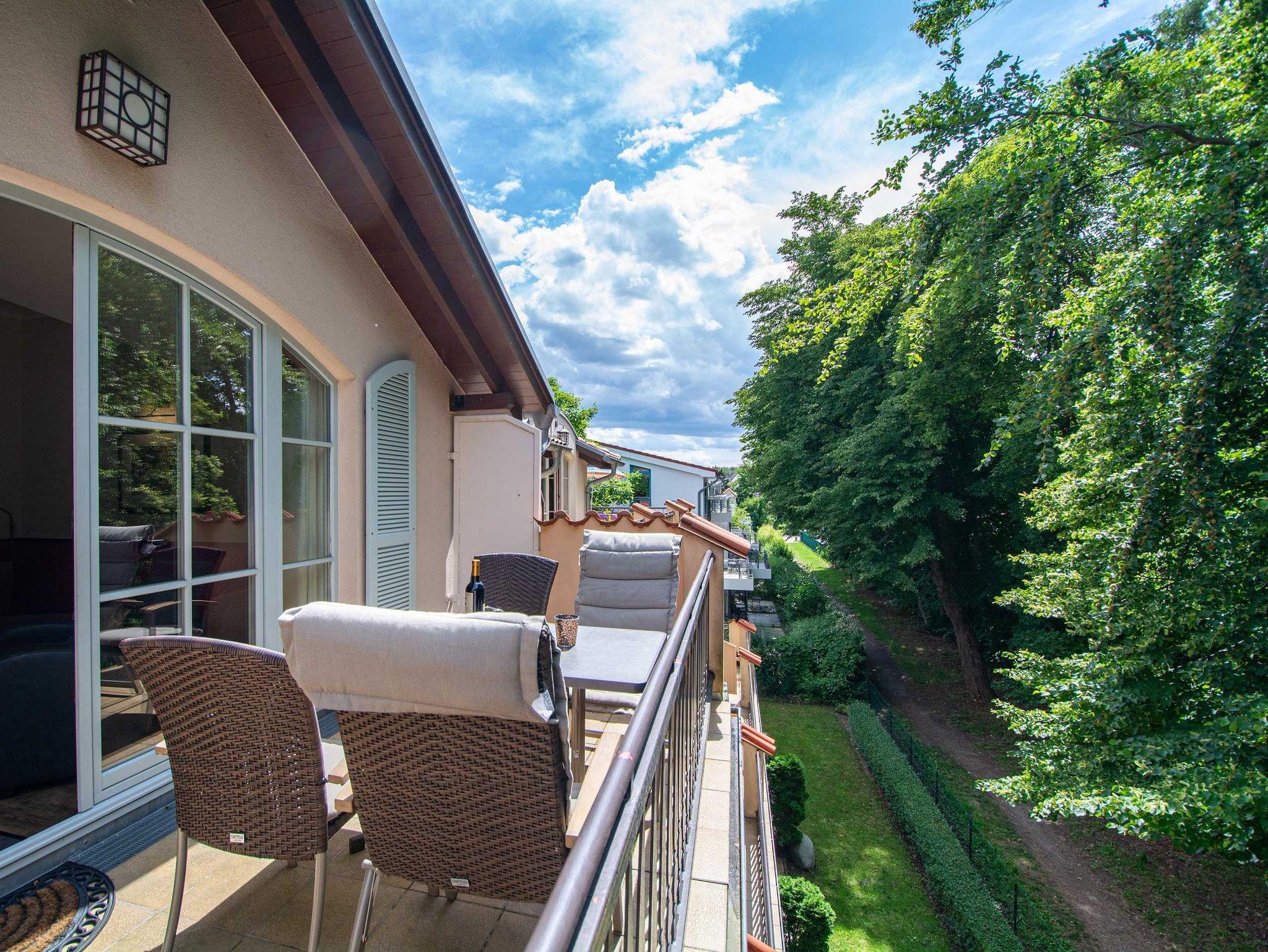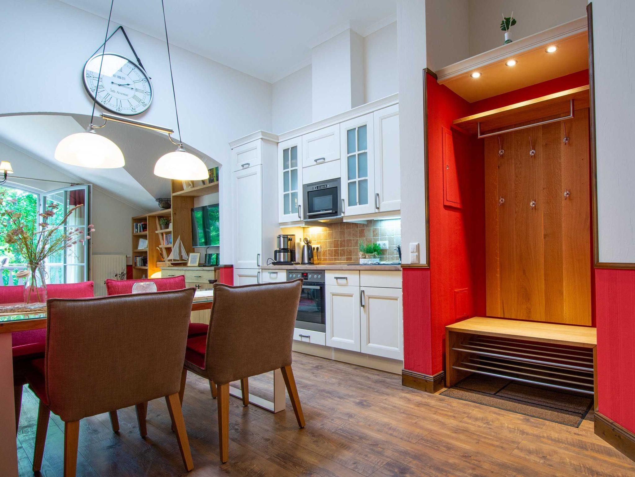 Diese mit sehr viel Liebe zum Detail eingerichtete 3-Raum-Ferienwohnung lässt keine Wünsche offen. Bereits beim Betreten der 72qm großen Wohnung, die sich im 2. Obergeschoss befindet, stellt sich der Urlaubsmodus ein: Das stimmige Farb- und Beleuchtungskonzept im mediterranen modernen Stil beginnt bereits an der Garderobe und zieht sich durch alle Räume. Ein große kuschelige Couch im Wohnzimmer, zahlreiche Bücher zum Stöbern in den handgefertigten rustikalen Regalen, ein gefülltes Weinregal, moderne Weingläser in der Vitrine ... einfach nur Ankommen und Wohlfühlen! Vom Wohnraum betreten Sie den möblierten Balkon, der nach Westen ausgerichtet ist und einen Blick auf den Kühlungsborner Stadtwald freigibt. Obwohl sich das Ensemble in Top zentraler Lage befindet, können Sie hier Ihre Ruhe genießen weitab vom Trubel der Stadt.