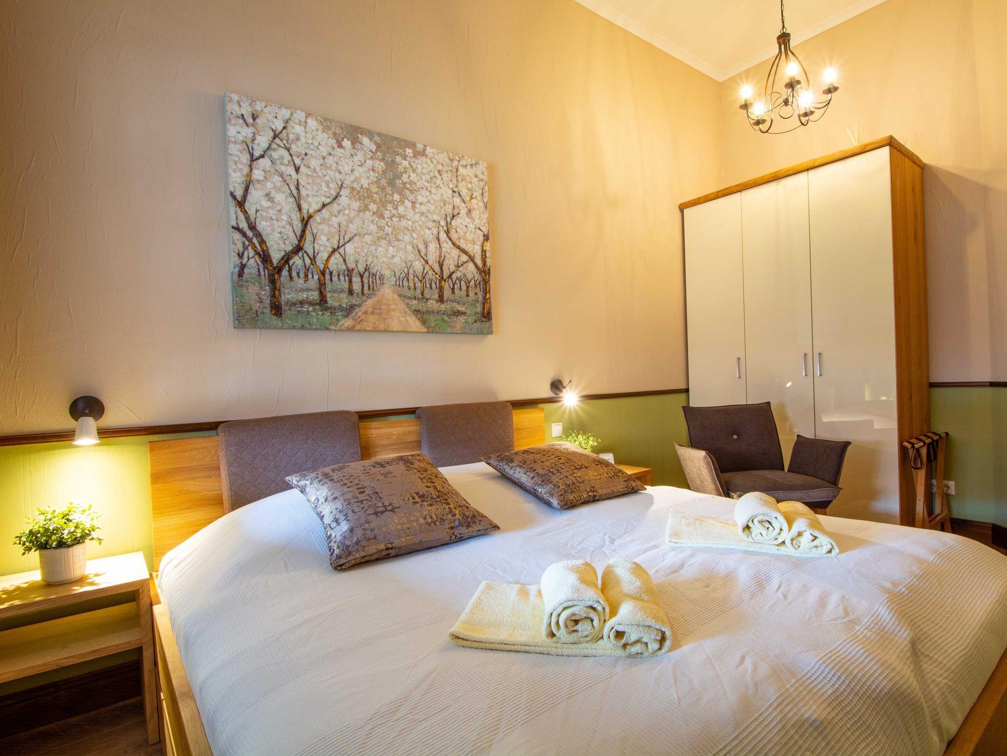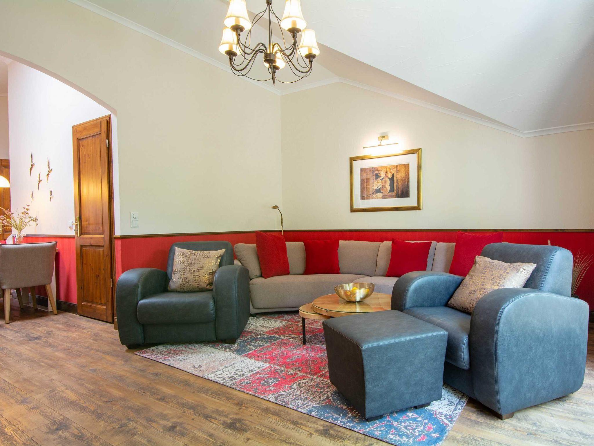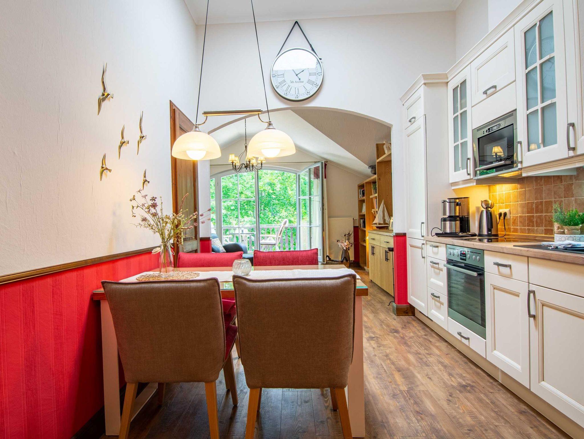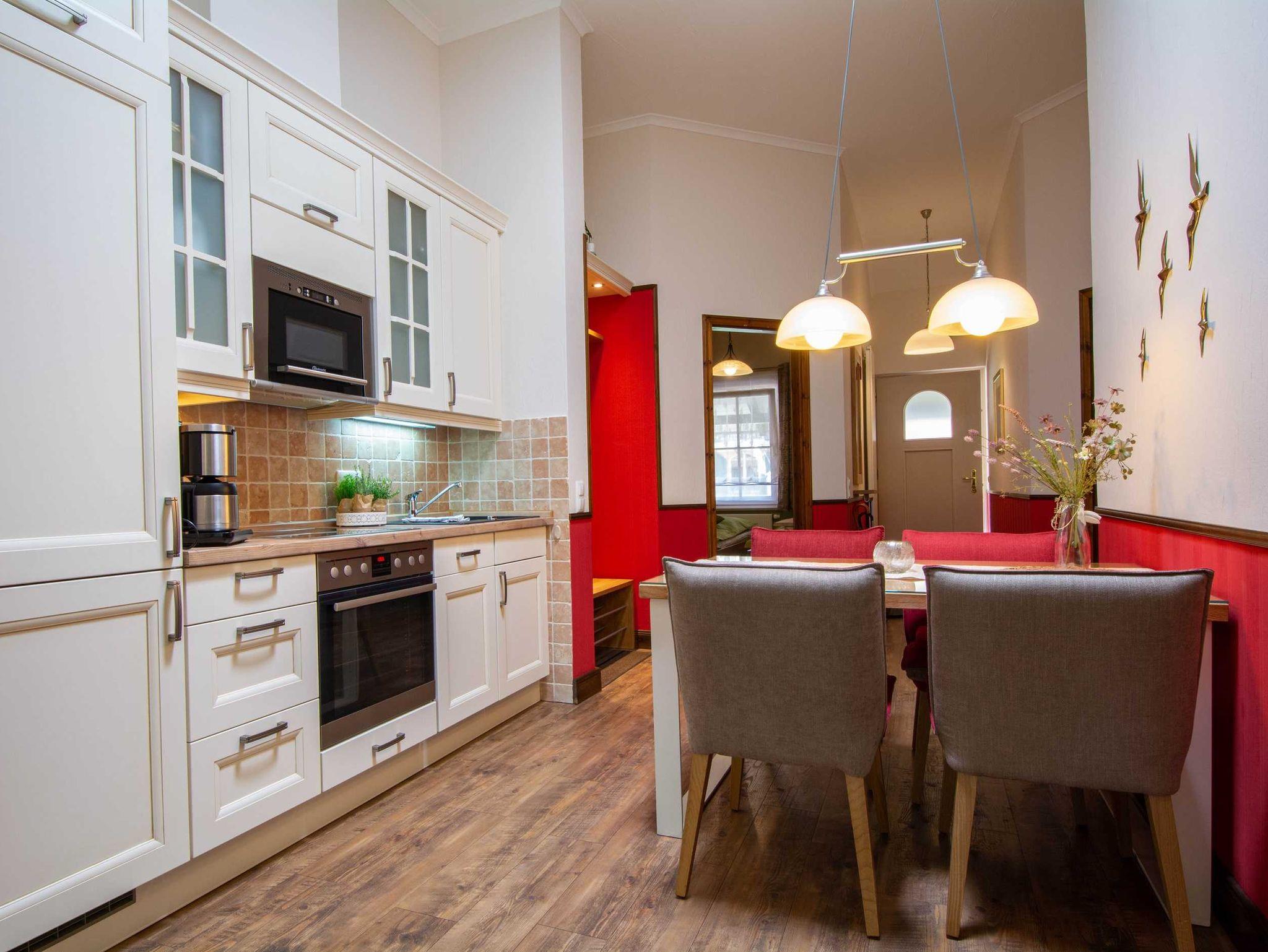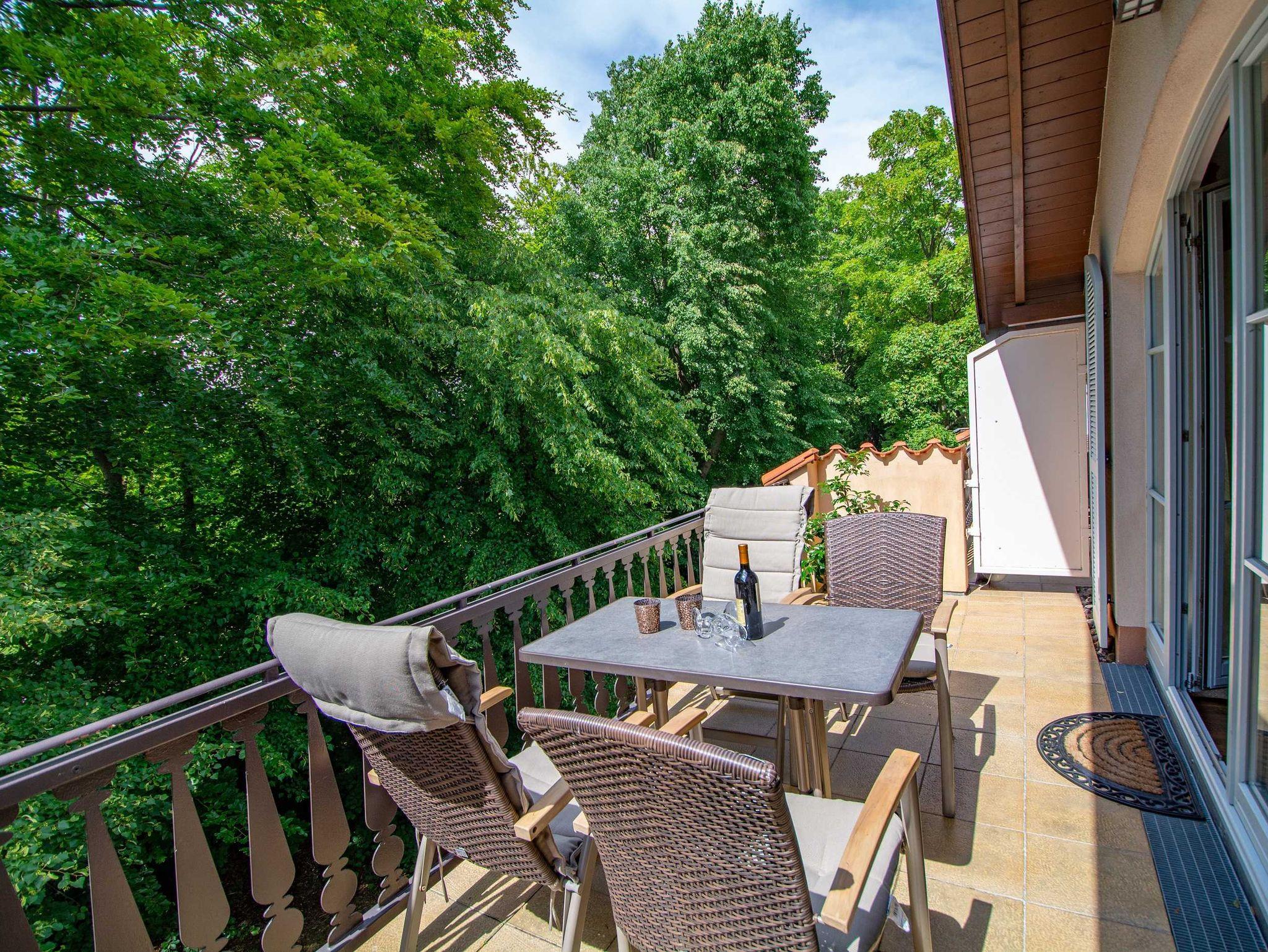 Diese mit sehr viel Liebe zum Detail eingerichtete 3-Raum-Ferienwohnung lässt keine Wünsche offen. Bereits beim Betreten der 72qm großen Wohnung, die sich im 2. Obergeschoss befindet, stellt sich der Urlaubsmodus ein: Das stimmige Farb- und Beleuchtungskonzept im mediterranen modernen Stil beginnt bereits an der Garderobe und zieht sich durch alle Räume. Ein große kuschelige Couch im Wohnzimmer, zahlreiche Bücher zum Stöbern in den handgefertigten rustikalen Regalen, ein gefülltes Weinregal, moderne Weingläser in der Vitrine ... einfach nur Ankommen und Wohlfühlen! Vom Wohnraum betreten Sie den möblierten Balkon, der nach Westen ausgerichtet ist und einen Blick auf den Kühlungsborner Stadtwald freigibt. Obwohl sich das Ensemble in Top zentraler Lage befindet, können Sie hier Ihre Ruhe genießen weitab vom Trubel der Stadt.