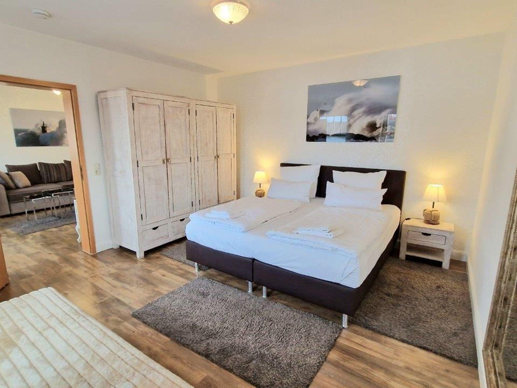 Das separate Schlafzimmer verfügt über ein Doppelbett, mindestens 1,80 Meter breit, und einen geräumigen Kleiderschrank.