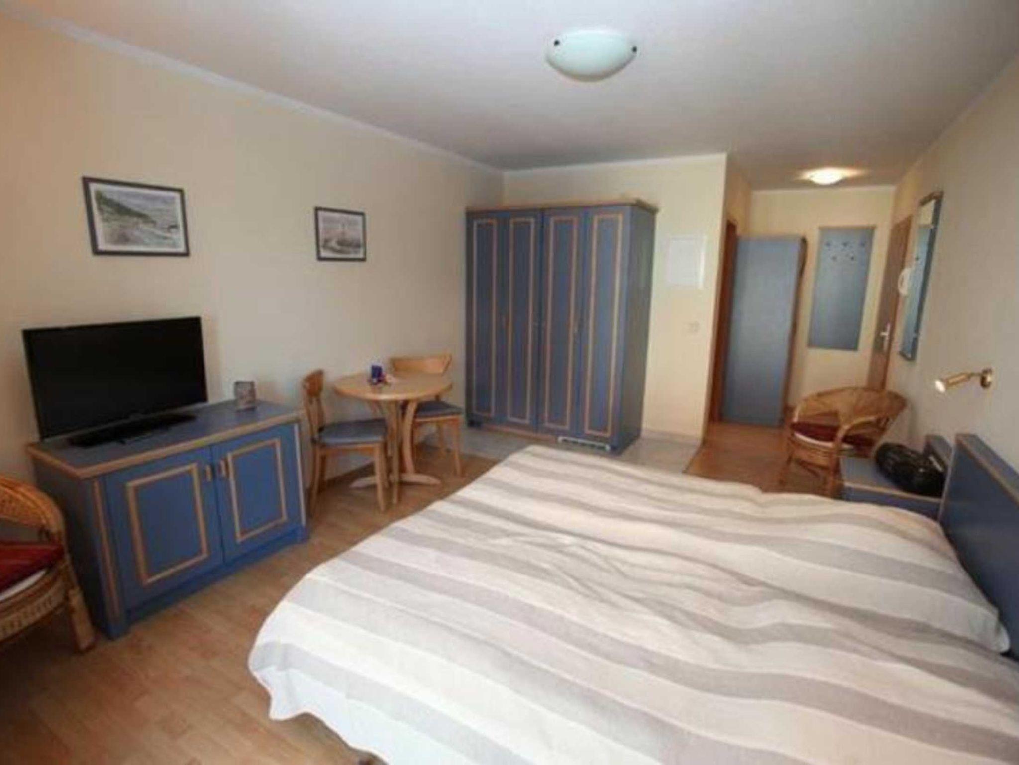 Einrichtung entspricht nicht mehr dem heute üblichen Standard. Schrank, Nachttische, Stühle, Tisch und Beleuchtung gehören auf den Sperrmüll, WLAN und Spülmaschine fehlen!