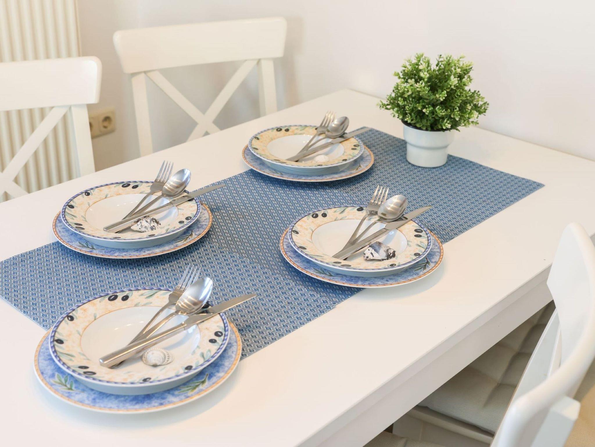 Größe ca. 60 qm - Wohnzimmer mit Schlafcouch, Esstisch, Küchenzeile, Kabel.TV, Radio und französisches Fenster mit freiem Meeresblick - Schlafzimmer mit Doppelbett und Kleiderschrank - Gästezimmer mit Ausziehbarem Bett(90x200) und Anrichte - Küchenzeile mit Mikrowelle, Zweiplattenkochherd, Geschirrspüler, Kühlschrank und Kaffeemaschine - Flur mit Garderobe - Dusche /WC