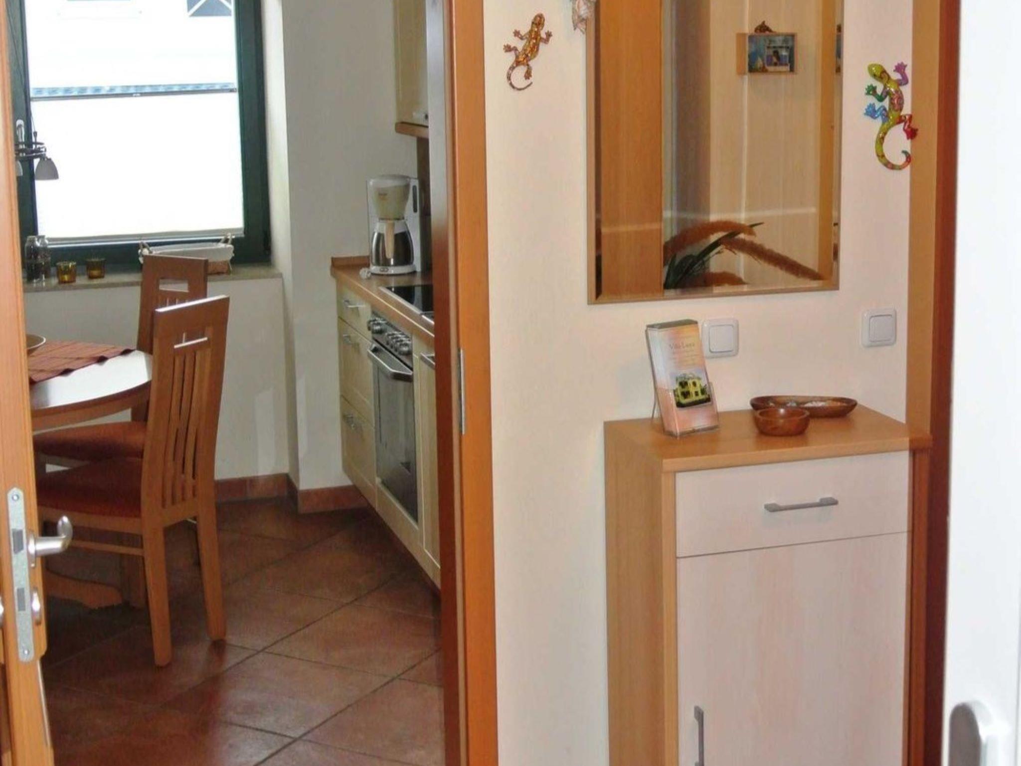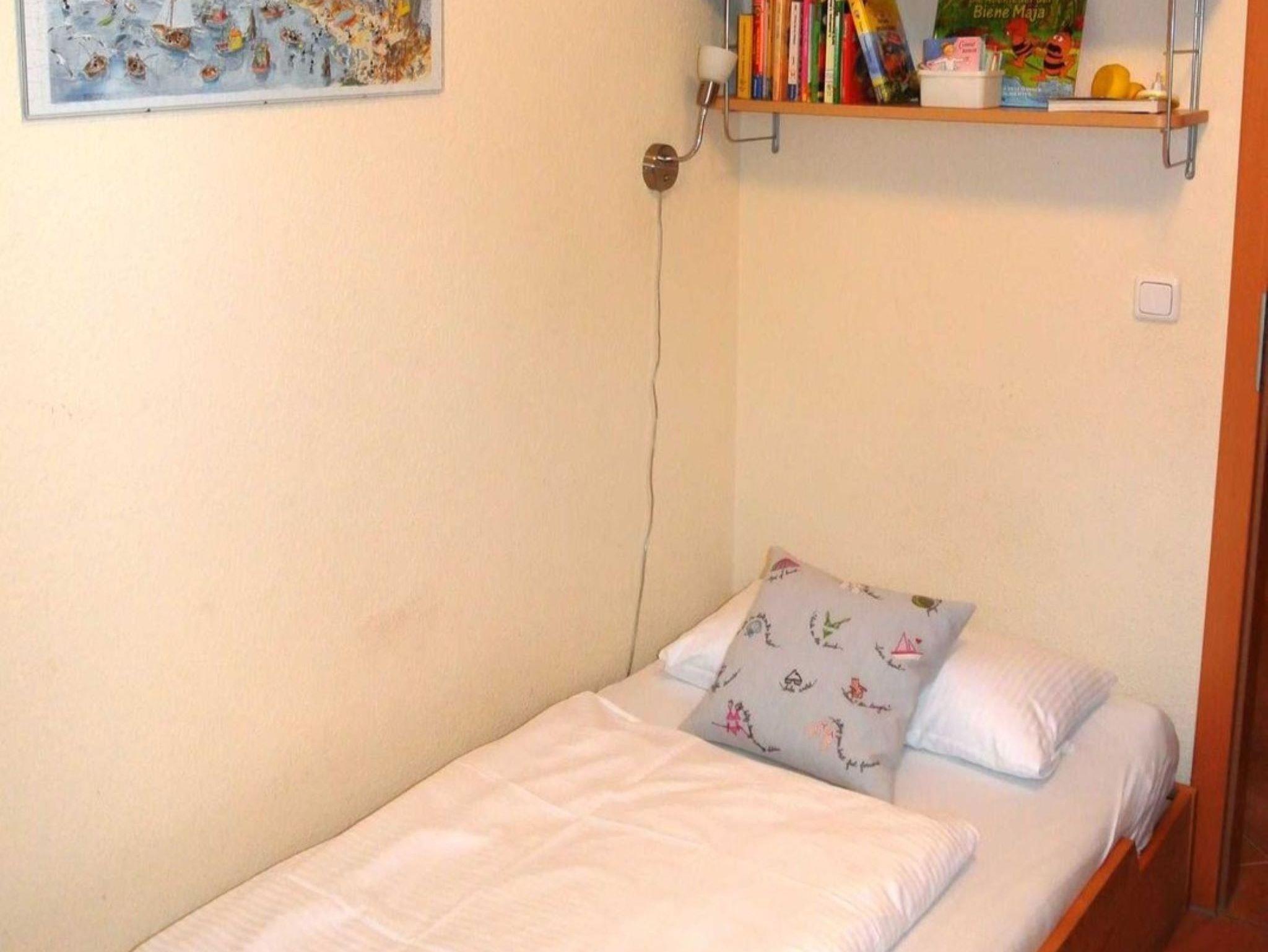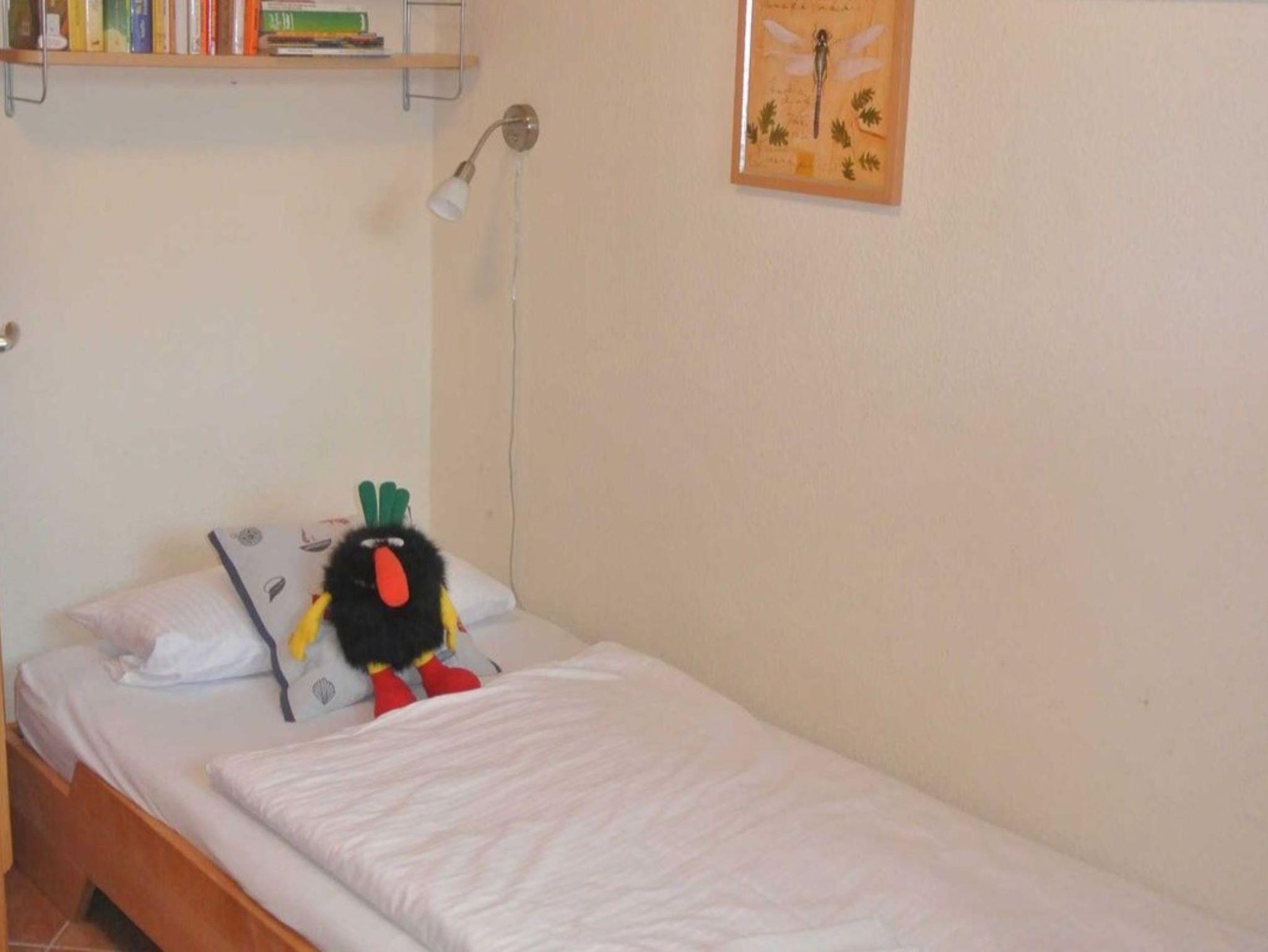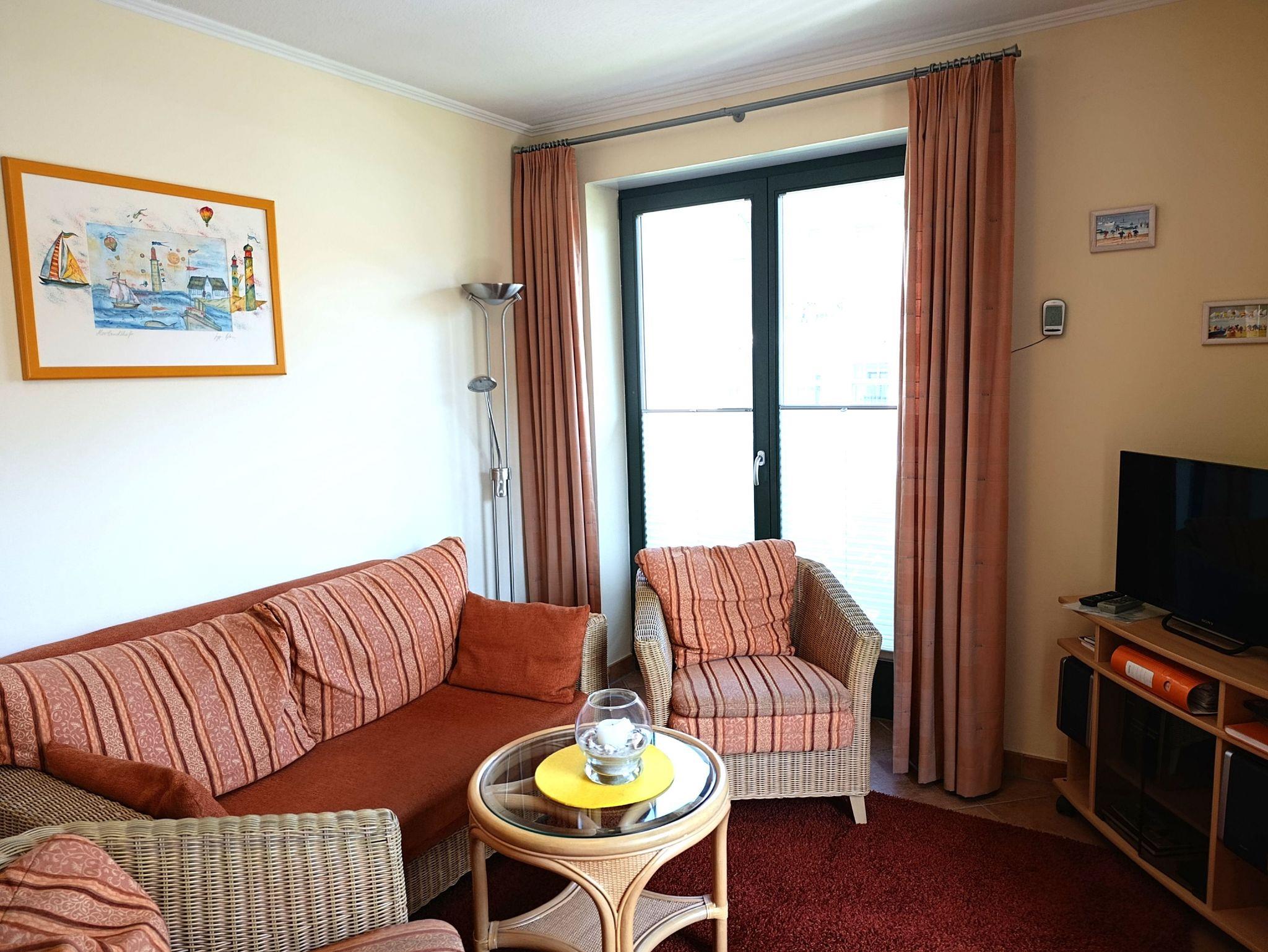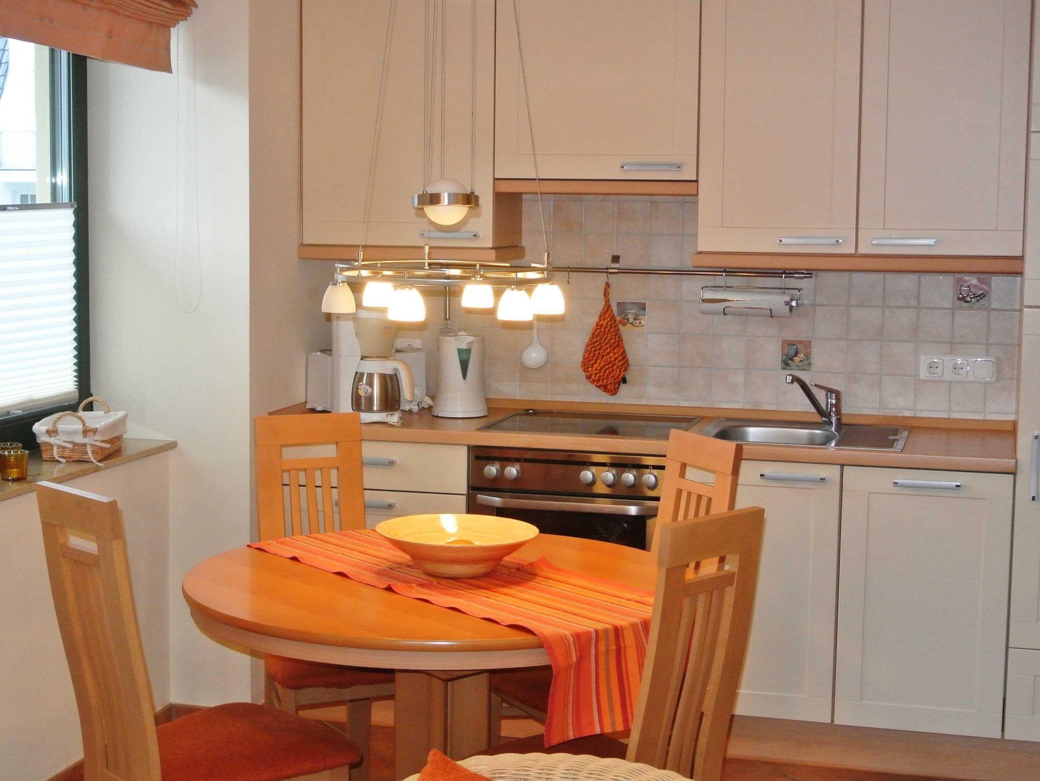 Die Nichtraucher-Wohnung Nr. 12 (2. OG) hat ca. 52 qm und bietet Platz für bis zu 4 Personen. Sie hat zwei Balkone zur Ost- und Südseite. Auf beiden Balkonen stehen Balkonmöbeln. In der vollausgestatteten Küchenzeile finden Sie Geschirrspüler, Mikrowelle, Backofen mit 4-Platten-Ceranfeld, Kaffeemaschine, Wasserkocher, Kühlschrank und reichlich Geschirr. Das Wohnzimmer hat ein Sofa, Kabel-TV, DVD-HiFi-Player/Anlage und ein Sideboard mit Spielen und Büchern. Ein Tisch mit 4 Stühlen lädt zum gemütlichen Essen oder Kartenspielen ein. Das Schlafzimmer ist mit einem Doppelbett, Nachtkonsolen und Kleiderschrank ausgestattet und im Gästezimmer stehen zwei Betten, eine Kommode und ein weiterer Fernseher. Die Fenster sind bequem mit Rollos zu verdunkeln. Das Duschbad mit WC hat einen großen beleuchteten Spiegelschrank und ein Handtuchheizkörper.
