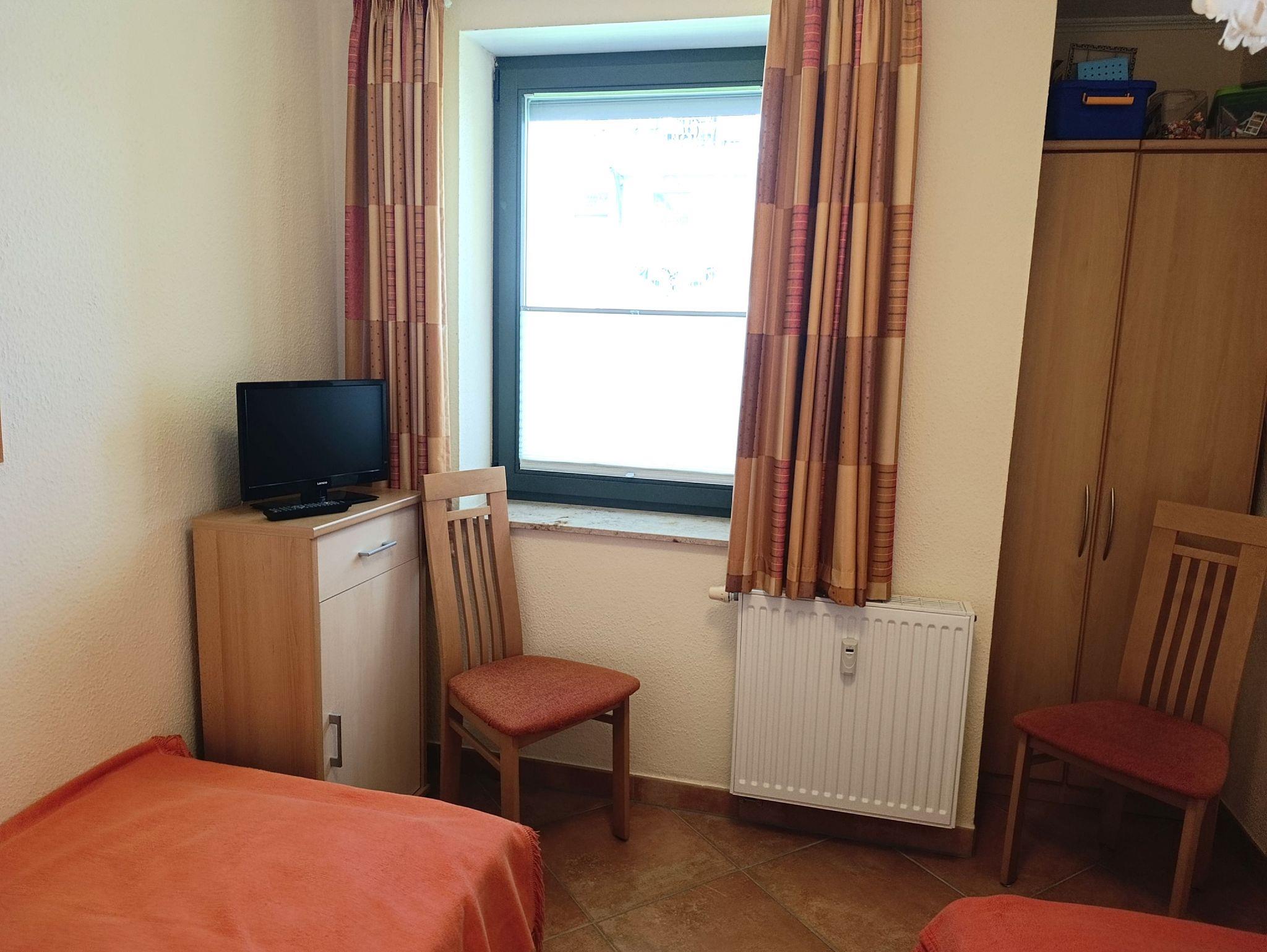 Gästezimmer mit 2 Einzelbetten (90x200 cm), Kleiderschrank und kleines Sidebord mit Kabel-TV