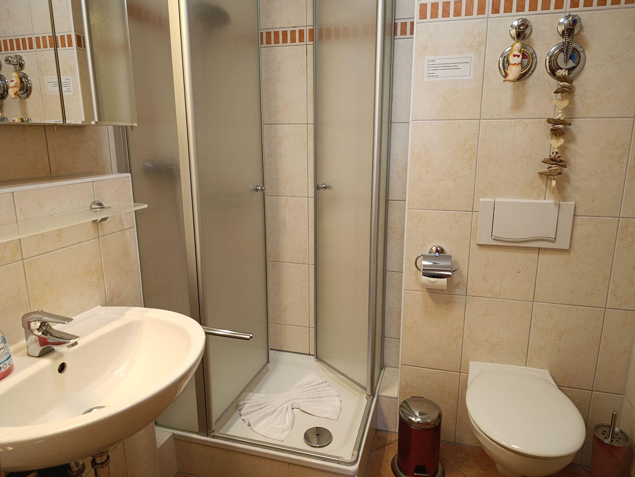 Dusche/WC und Diele mit Garderobe, Kommode mit Spiegel