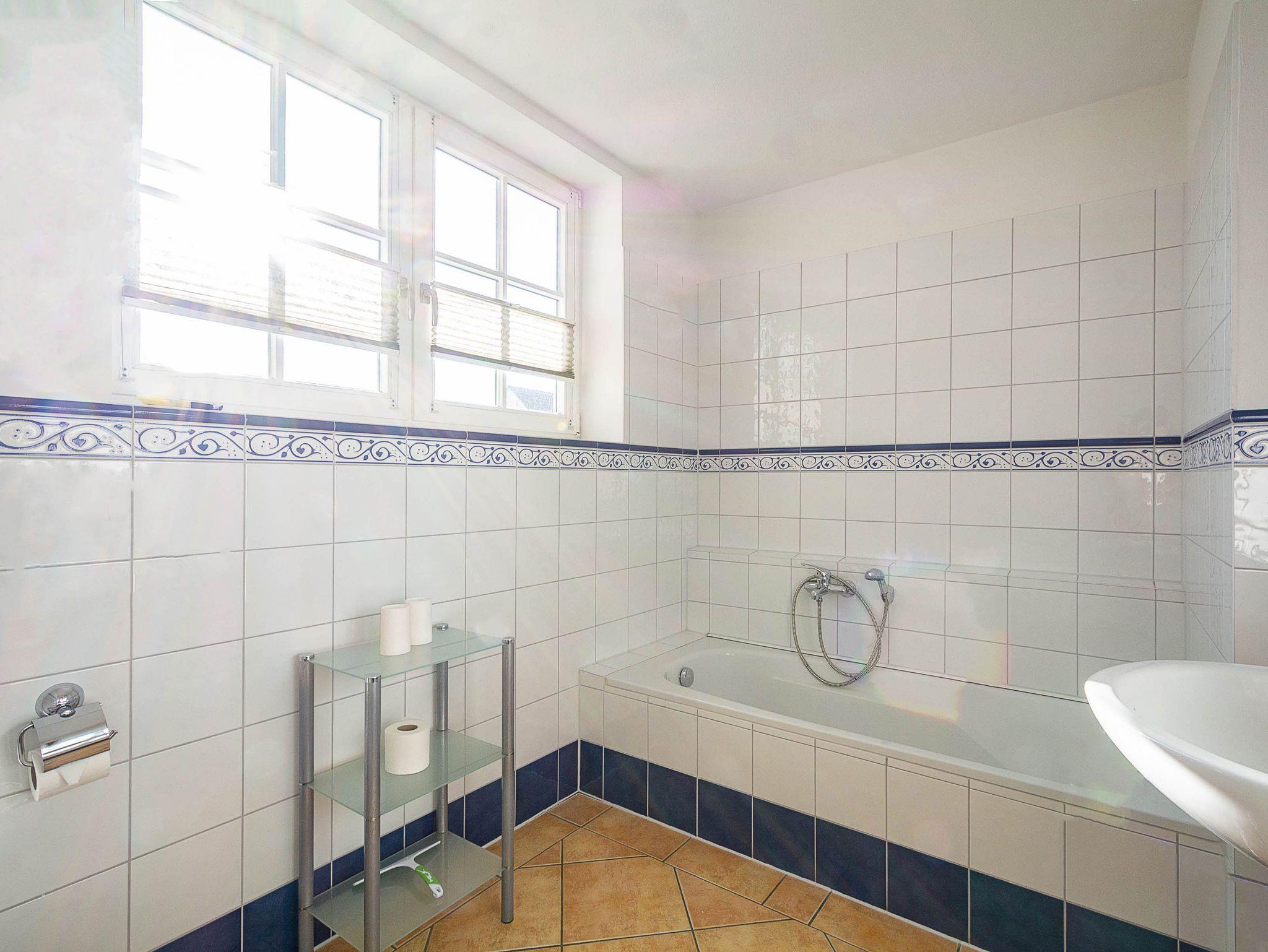 Abgerundet wird das Angebot der Ferienwohnung durch zwei geflieste Badezimmer. Das helle Tageslichtbad ist mit einer Badewanne, WC und einem Fenster ausgestattet, das für eine angenehme Belüftung sorgt. Das zweite Badezimmer verfügt über eine Dusche, WC und einen praktischen Handtuchheizkörper, der für zusätzlichen Komfort sorgt.
