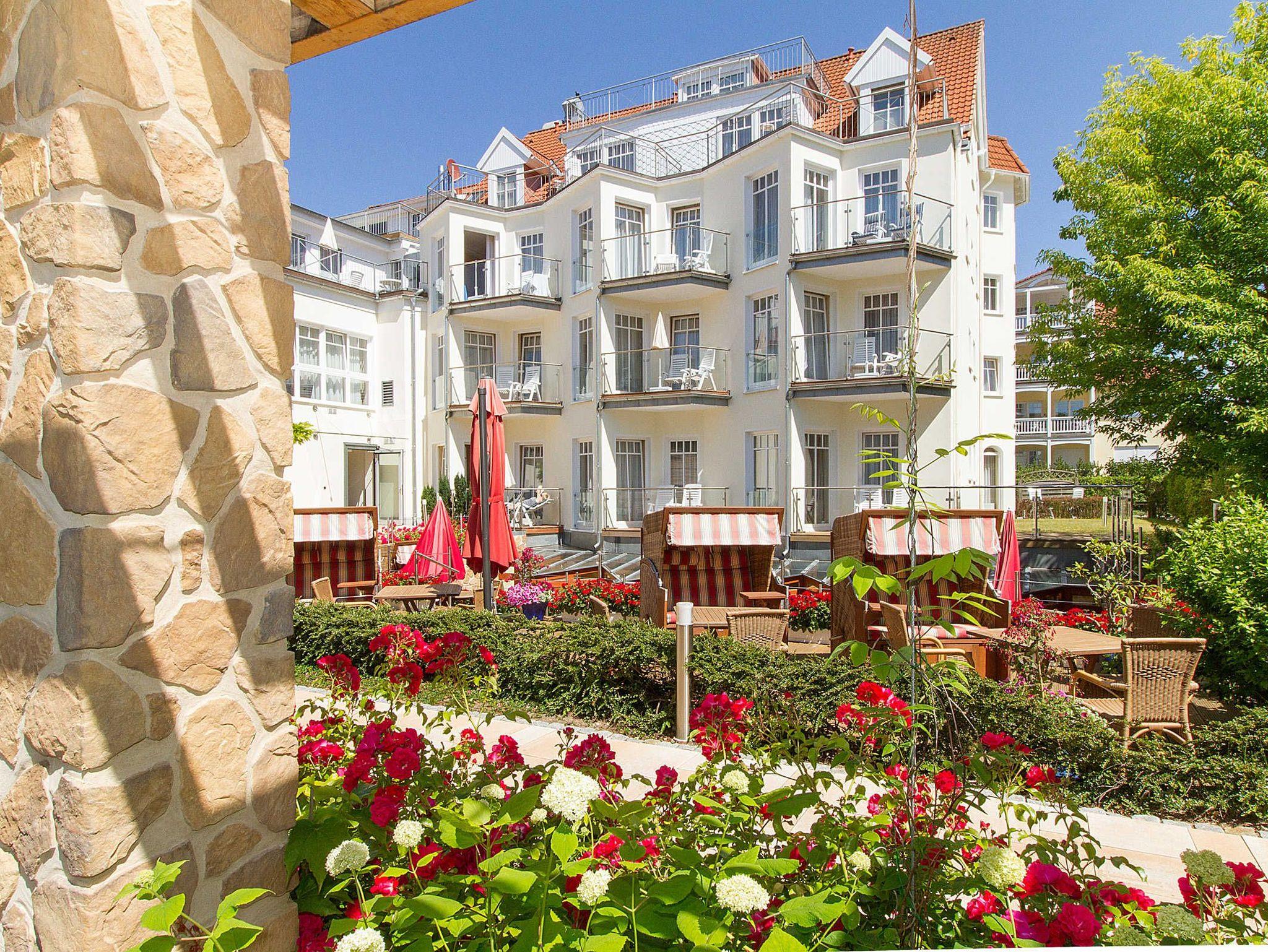 Zum Strand sind es nur ca. 50 Meter, der Stadtwald liegt hinter den Häusern und zur Seebrücke etwa 500 Meter. Das à la carte Restaurant verfügt über eine große Außenterrasse, auf der Sie auch im Sommer Frühstücken können.