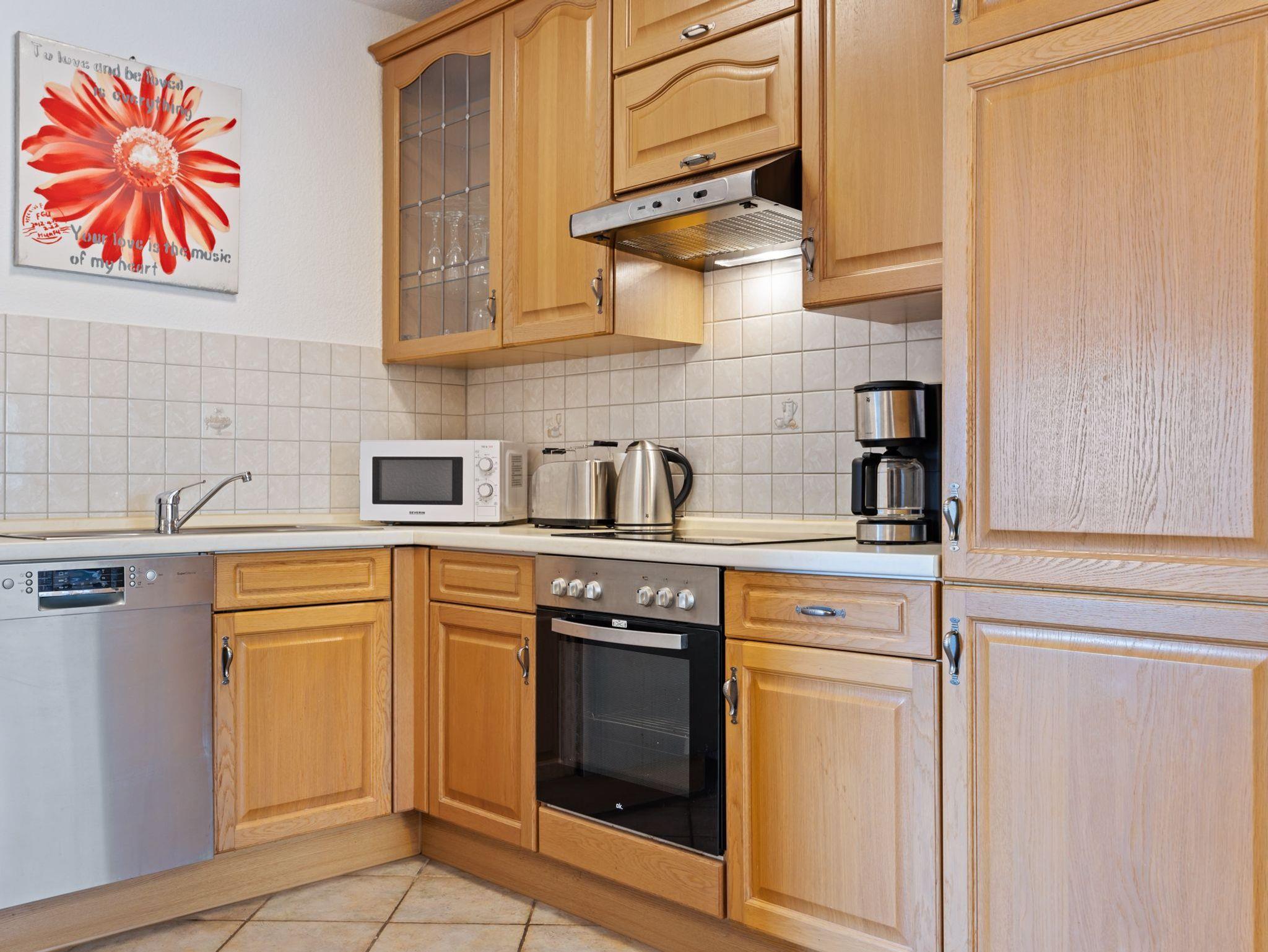Die Ferienwohnung Nr. 2 befindet sich im Obergeschoss und verfügt über einen Wohn- Essbereich mit gemütlicher Sofaecke, Esstisch und offener Küche. Die Küche ist umfangreich ausgestattet mit Herd und Backofen, Geschirrspüler, Filter- Kaffemaschine sowie Dolce Gusto Capmaschine, Wasserkocher, Toaster, Kühlschrank mit Gefrierfach. Schlafzimmer mit Doppelbett (1,80m*2m) und Kleiderschrank. Schlafzimmer mit Einzelbett (0,90m*2m) Bad mit Dusche und WC. Die Ferienwohnung befindet sich im OG und ist daher nur über eine Treppe im Haus erreichbar.