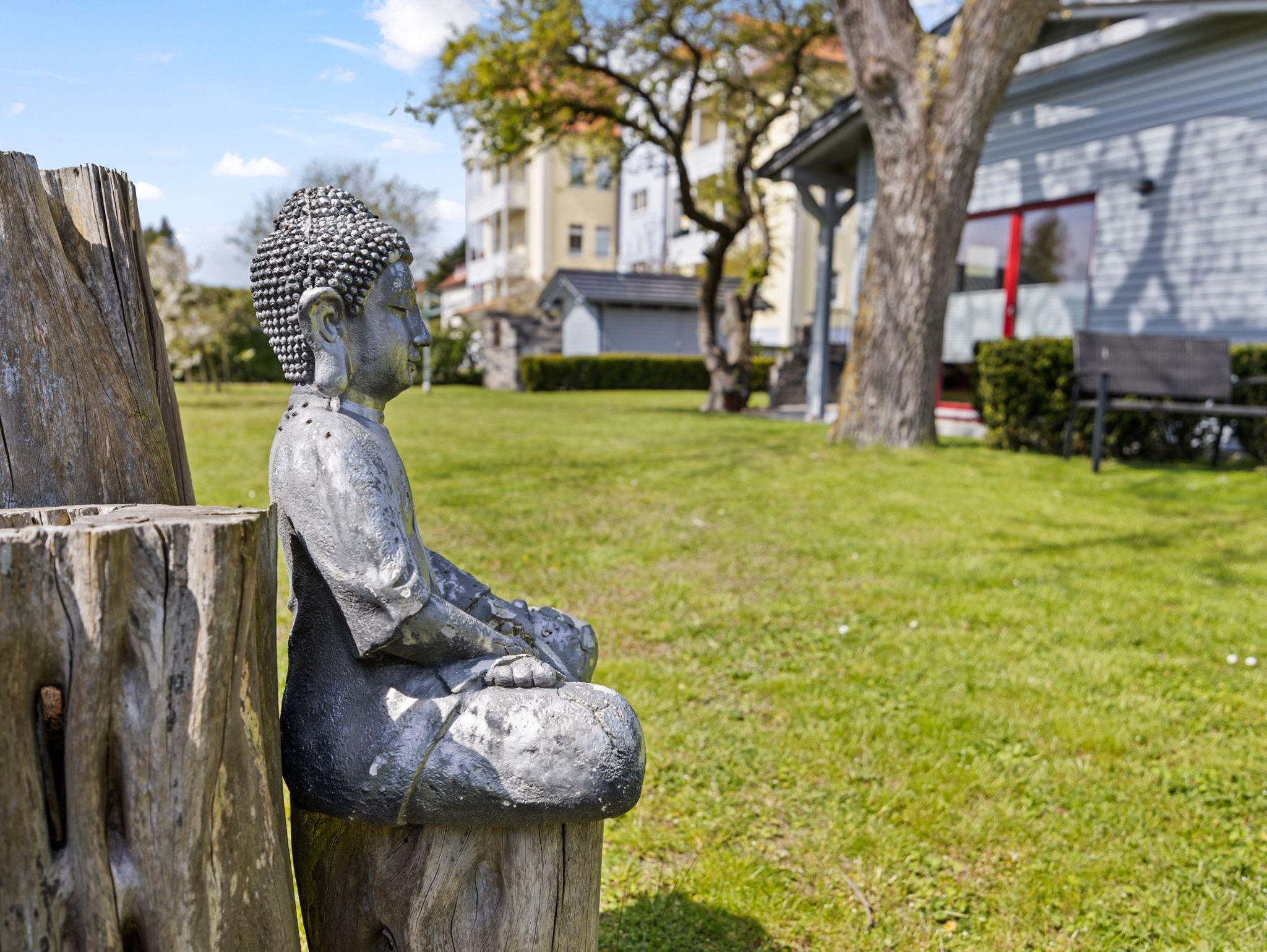 Am Haus und im Garten: 1 PKW Stellplatz je Ferienwohnung. Sitzecke mit Strandkorb auf der Terrasse und Sitzecken im Garten, die von allen Gästen gebutzt werden können. Es steht ein gemeinschaftlicher Gasgrill für Grillabende zur Verfügung.
