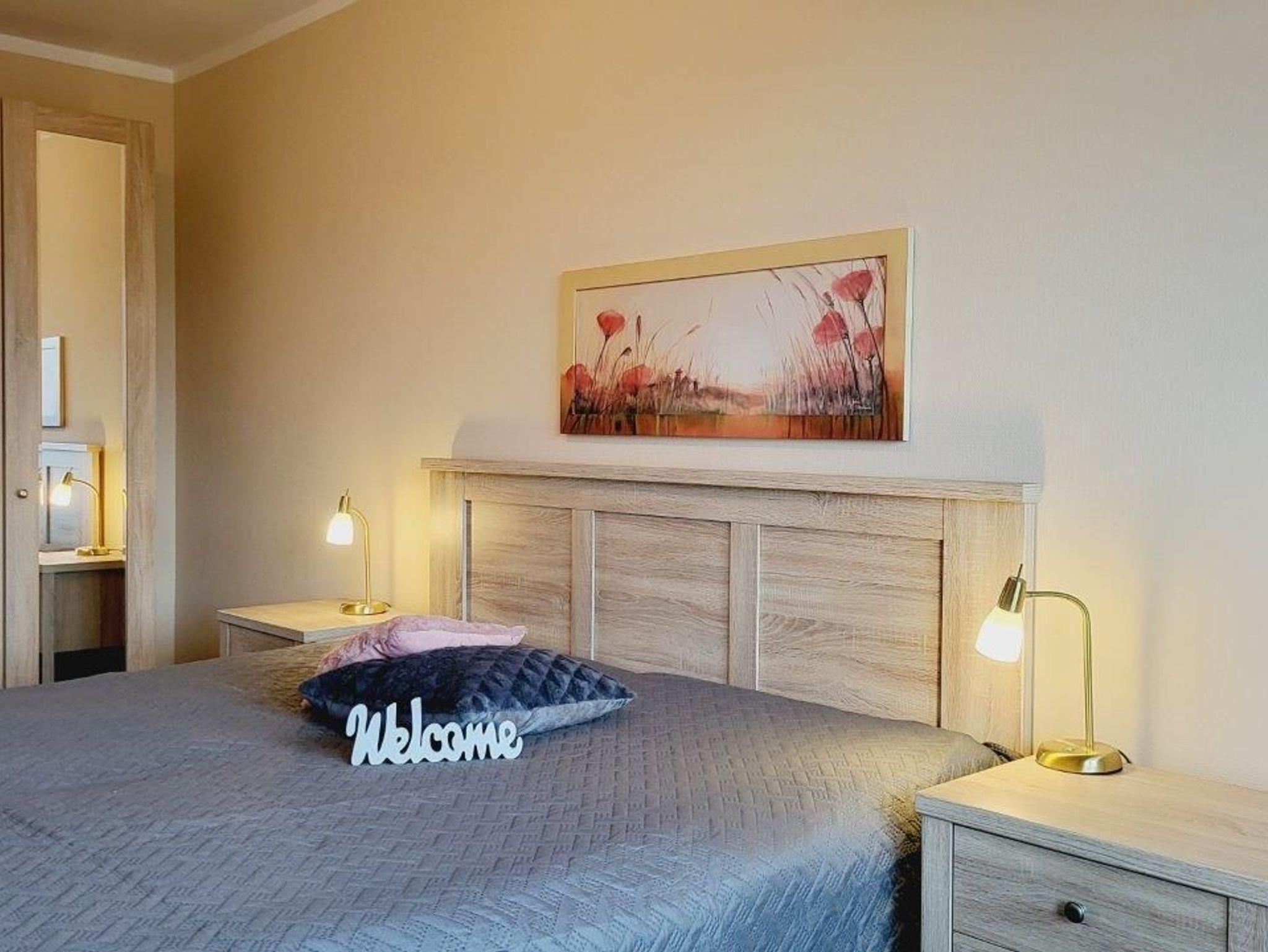 - 1. Schlafzimmer mit Doppelbett, Kleiderschrank und TV