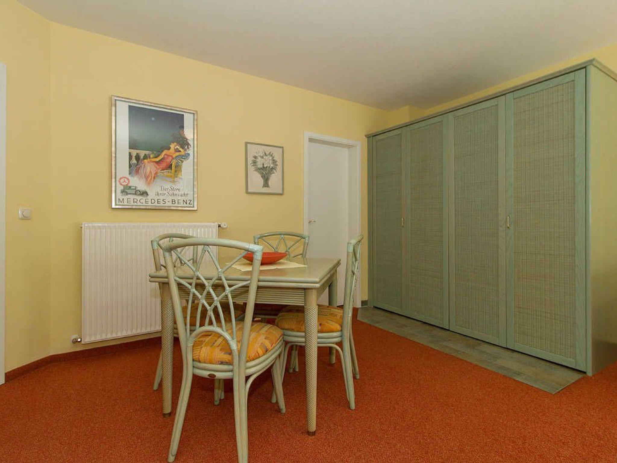 Die Wohnung ist im 1. Obergeschoss gelegen und hat zwei Balkone zur West- und Südseite. Die Wohnungsgröße beträgt ca. 66 qm und teilt sich in Wohnzimmer, angrenzende Küche, Schlafzimmer, 2 kl. Kinderzimmer, Badezimmer mit Wanne und Flur. Im Wohnzimmer befindet sich ein Esstisch mit 4 Stühlen. Küche ist mit Kühlschrank, 2 Kochfelder, Mikrowelle mit Backofen, Tresor, HD-Sat TV und Telefon.