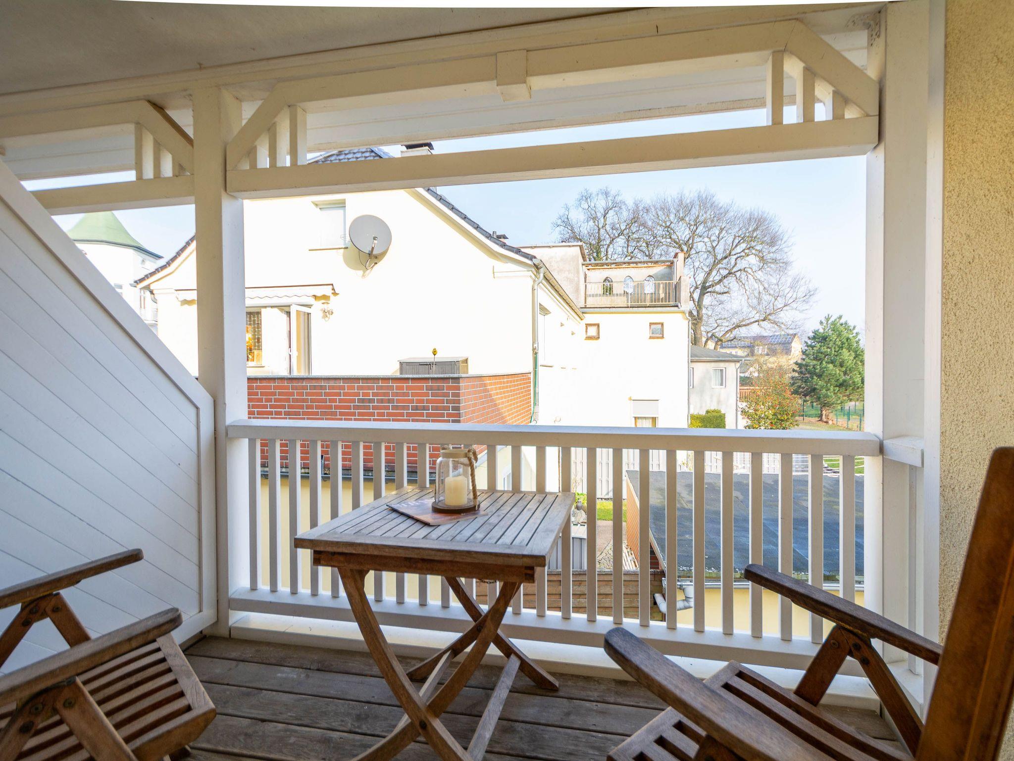 Vom Wohnbereich betreten Sie die möblierte Loggia, die nach Nord-Osten ausgerichtet ist. Hier können Sie Ihr Frühstück in der Morgensonne genießen und den Abend nach einem schönen Tag am Meer ausklingen lassen.