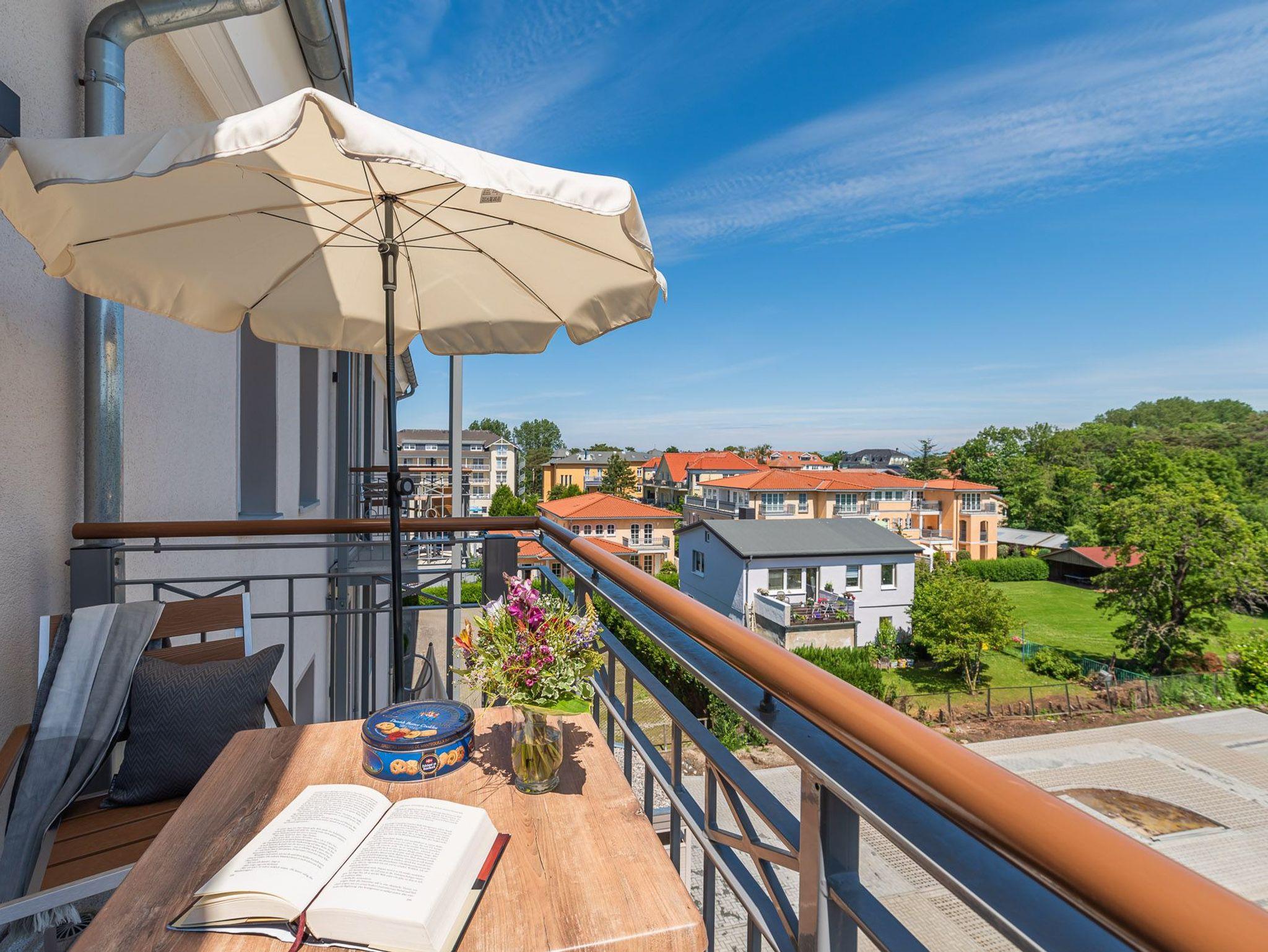 Das Apartment bietet mit seinen zwei Zimmern genügend Platz für 4 Personen. Außerdem verfügt es neben seiner Wohnfläche von ca. 39 qm auch über einen Balkon. Dieser ist mit Balkonmöbeln und einem Sonnenschirm ausgestattet.
