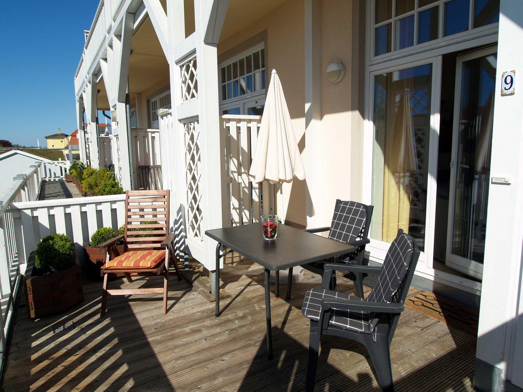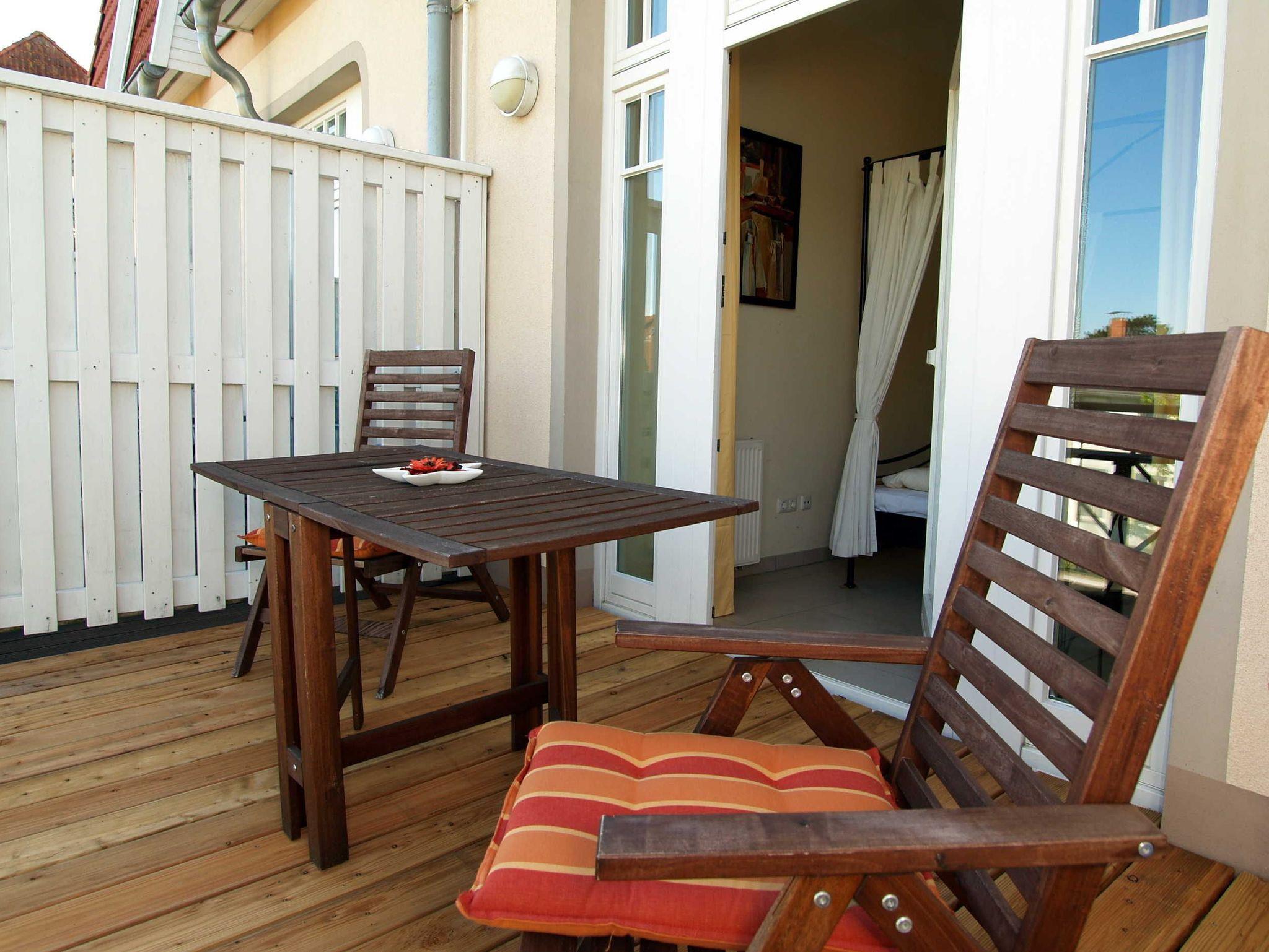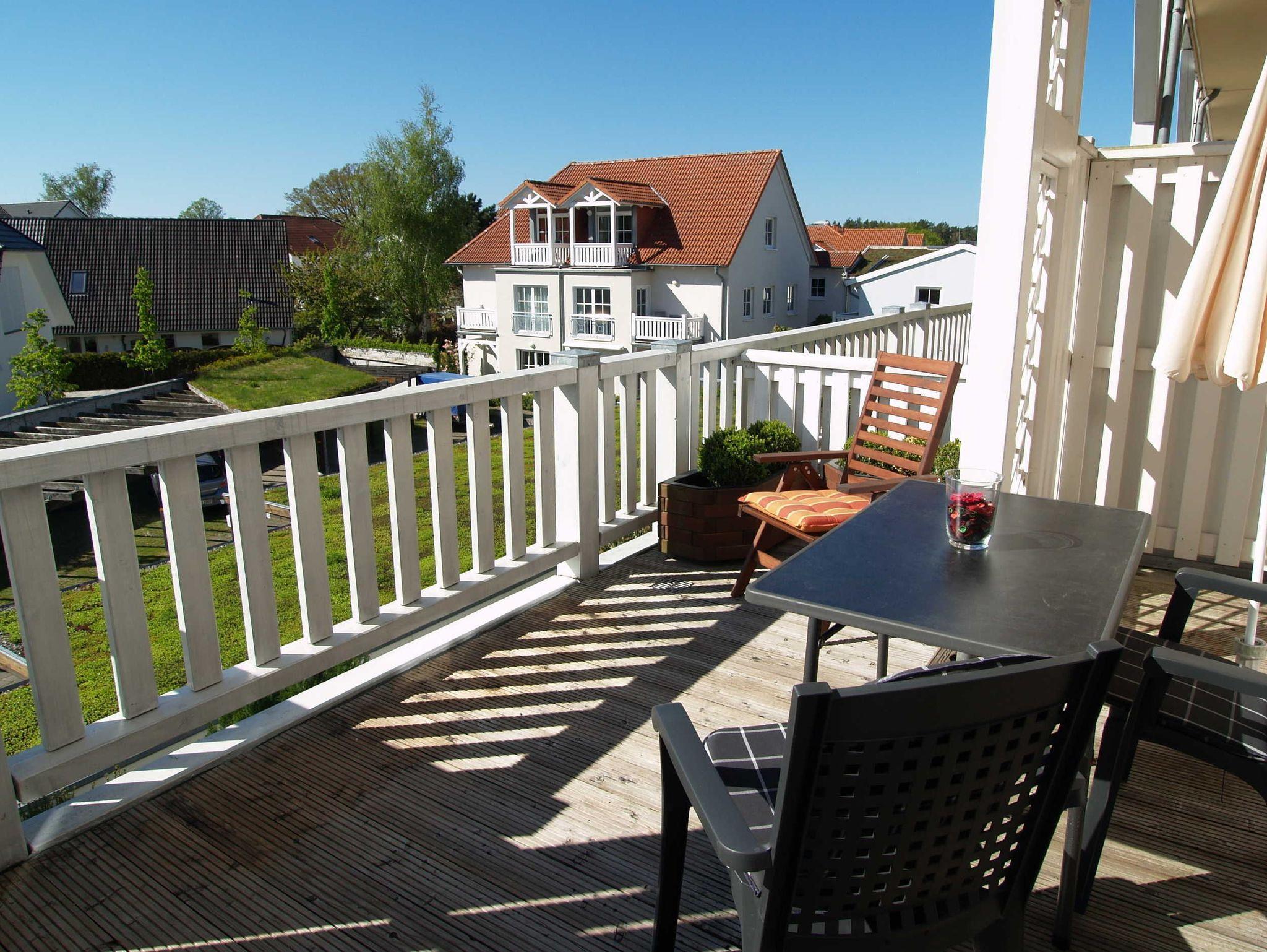 Die großzügige Balkonterrasse auf der Westseite, die Sie über den Wohnraum erreichen, lädt zu entspannten Abenden nach einem erlebnisreichen Tag an der Ostsee ein.