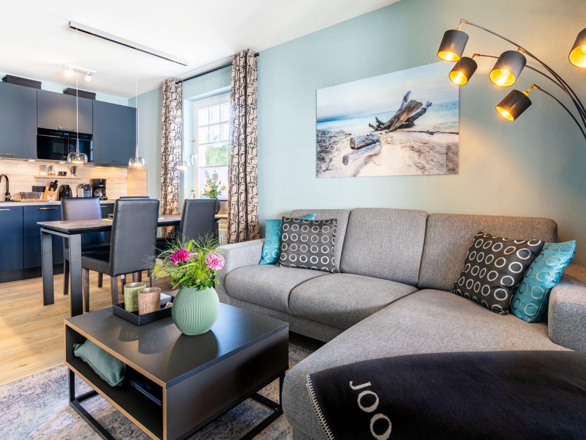 Besondere Highlights sind die Ambilight Funktionen der beiden Flachbildschirme als auch das große Boxspringbett von Ruf im separaten Schlafzimmer. Auf dem geschützten und möblierten Balkon lassen Sie den Abend ausklingen und genießen bei einem Glas Wein die unmittelbare Nähe zur Ostsee.