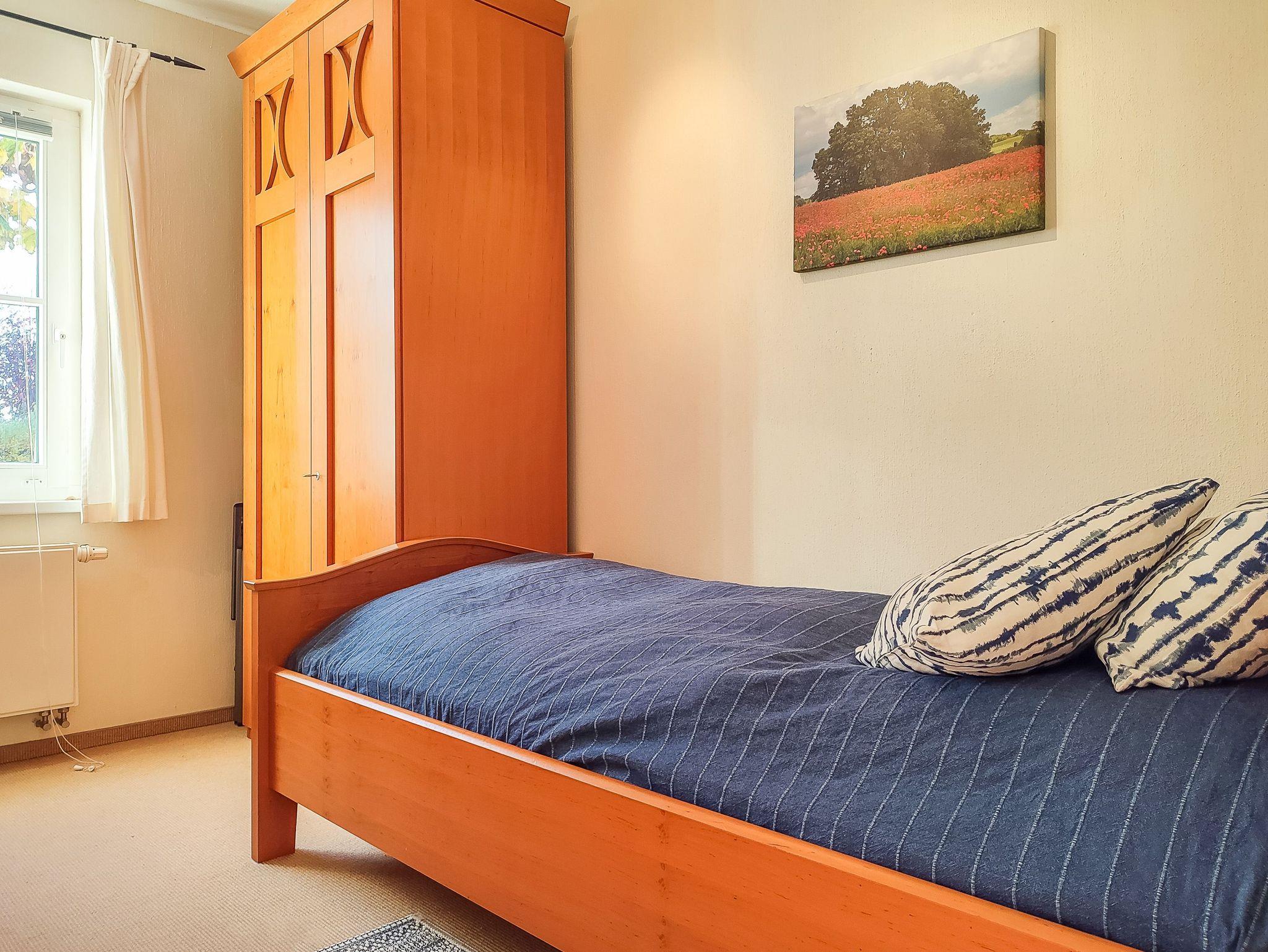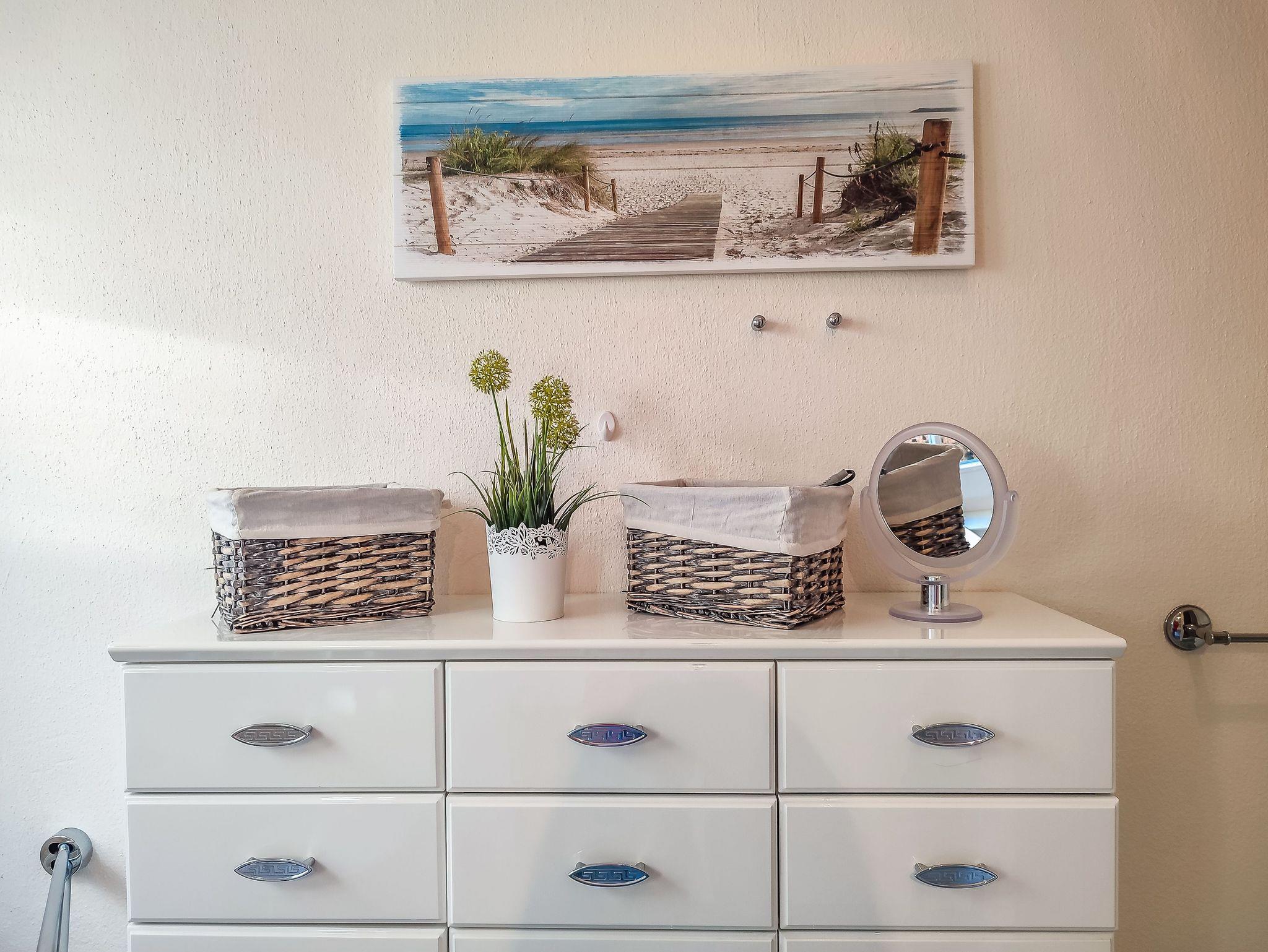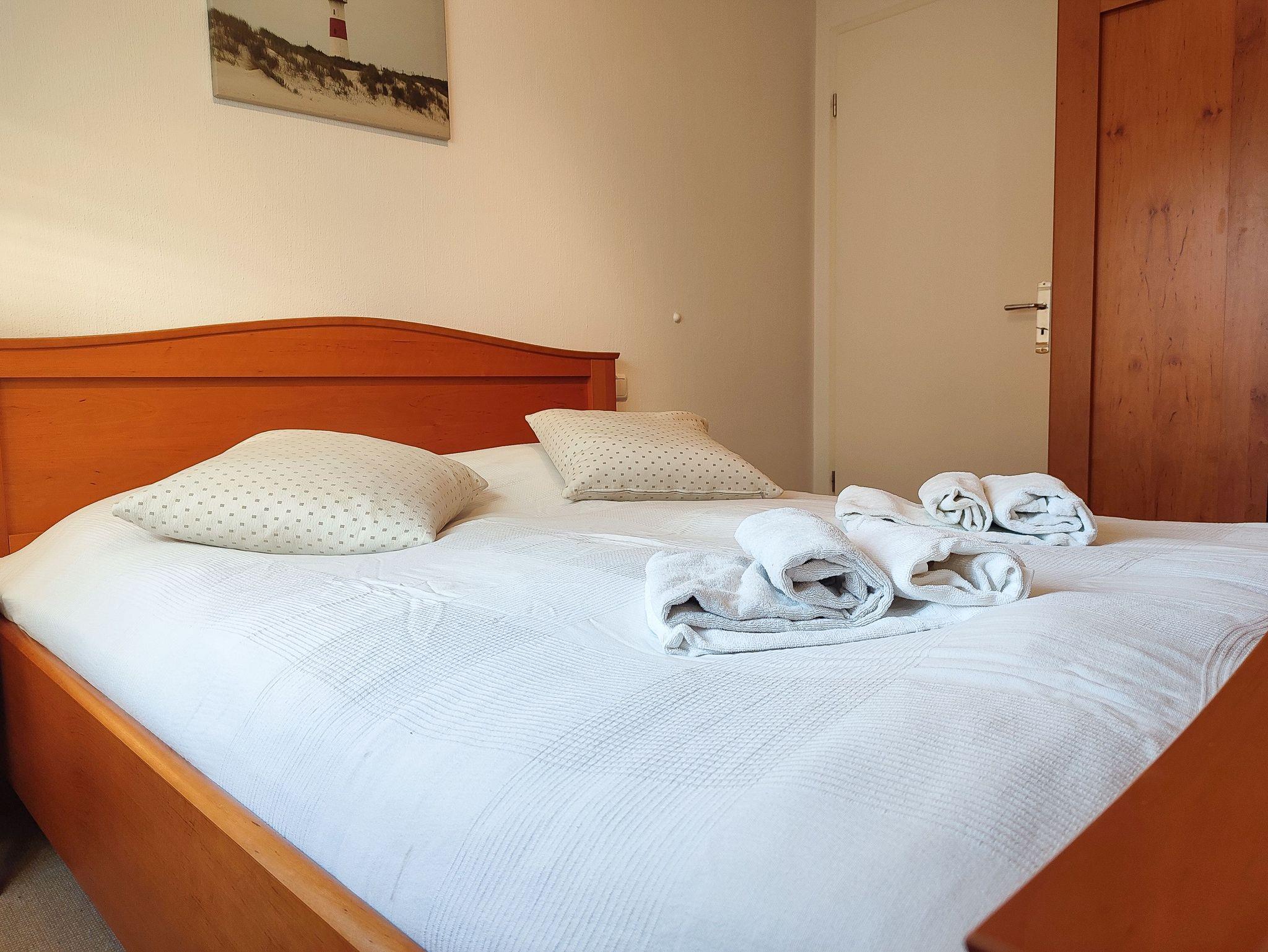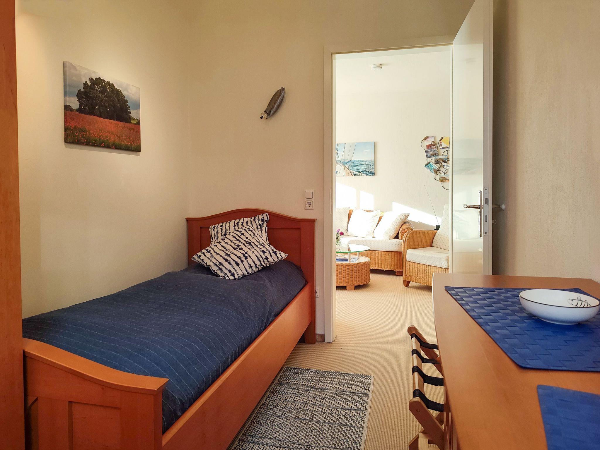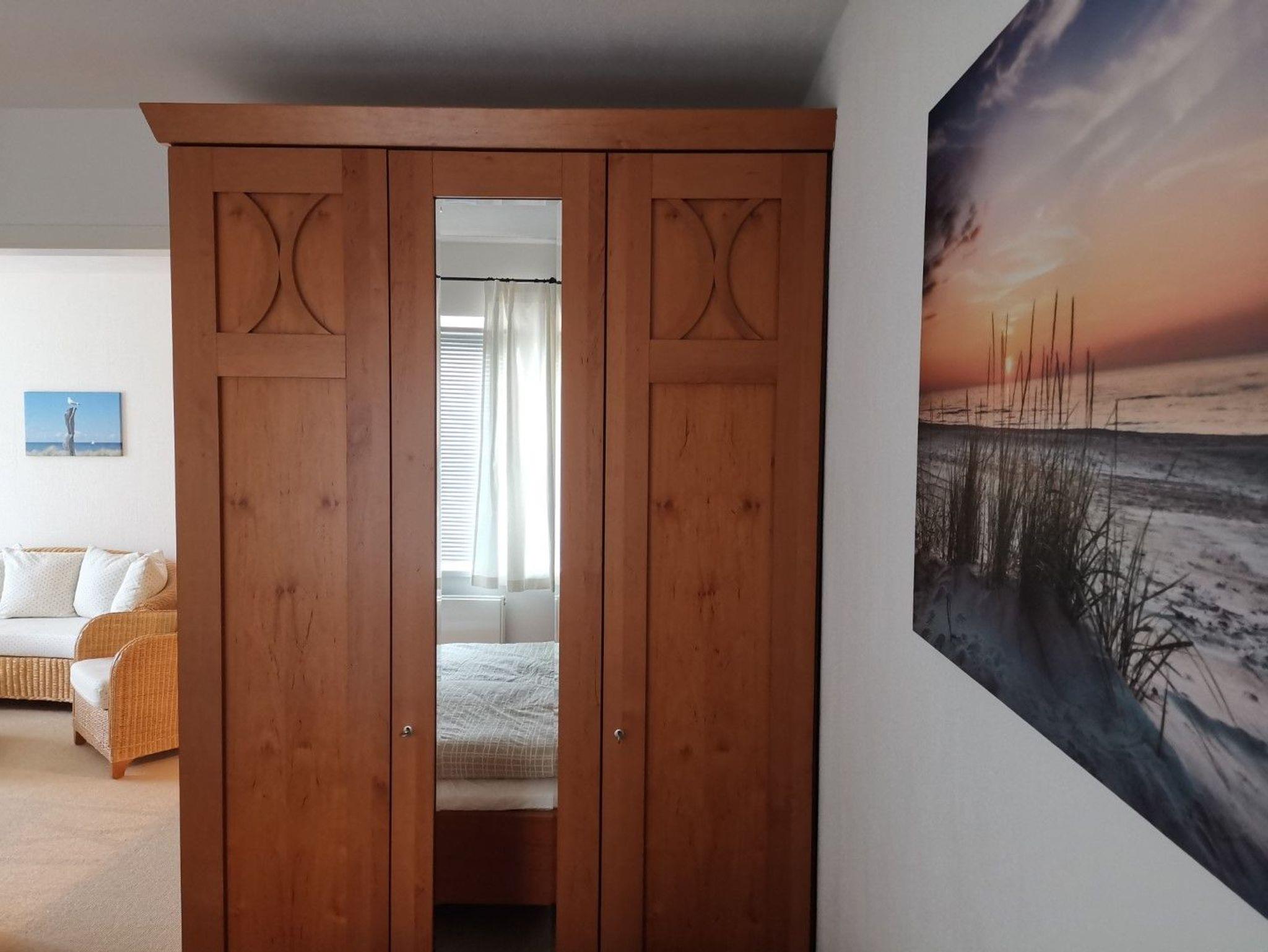 Die wohnung verfügt über 2 Schlafzimmer. Im ersten Schlafzimmer lädt Sie ein komfortables Doppelbett (2 x 80 x 200 cm) zur Nachtruhe ein. Der großzügige Kleiderschrank mit Ganzkörperspiegel bietet genügend Platz für Ihre Urlaubsgarderobe. Ein weiteres kleineres Schlafzimmer ist ausgestattet mit einem Einzelbett (90 cm x 200 cm), einem Kleiderschrank, einer Kommode und einem Spiegel sowie einer Kofferablage. Als Sichtschutz bzw. zum Verdunkeln sind in den Schlafzimmern Rollos und Vorhänge an den Fenstern angebracht.