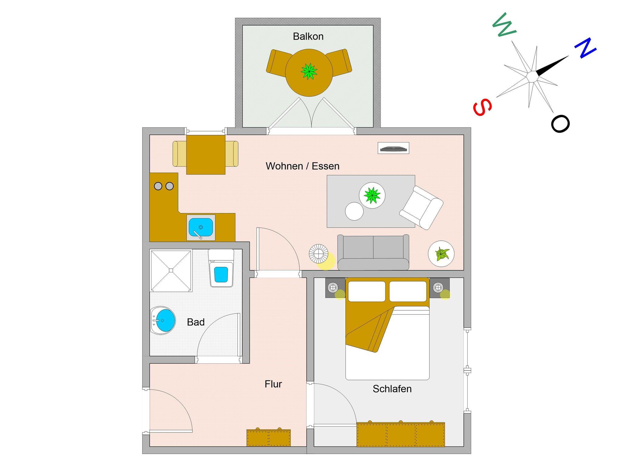 HELLE FREUNDLICHE 2-RAUM-FEWO IN STRANDNÄHE MIT BALKON