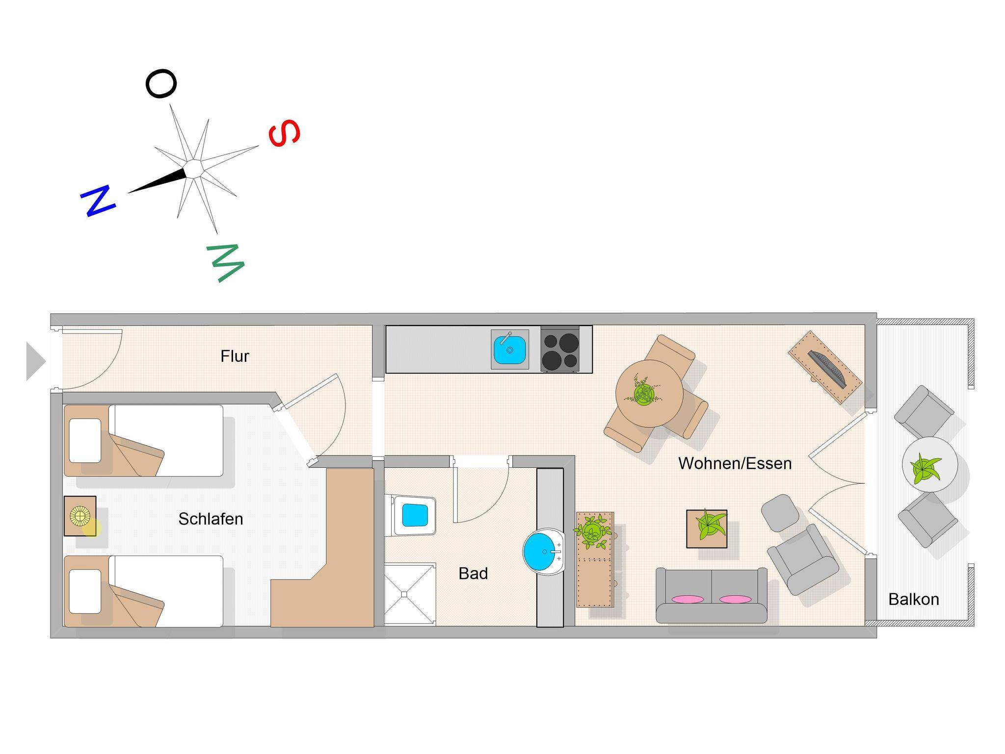 2-RAUM-APPARTEMENT FÜR 2 PERSONEN MIT SÜDBALKON IN TOP-LAGE