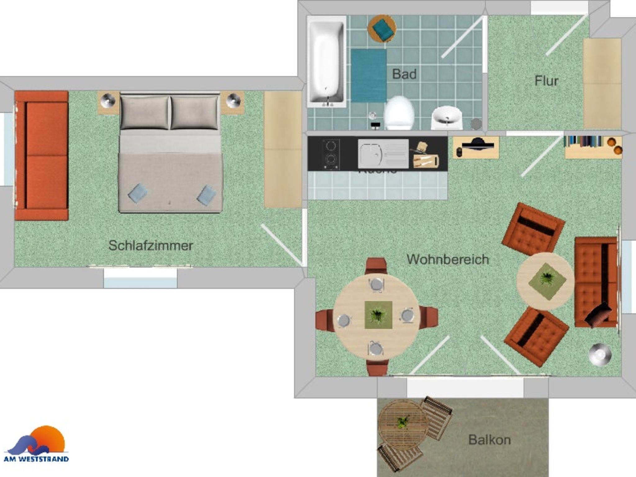 Am Weststrand Apartmenthaus Waldeck, 2-Zimmer-Apartment - B31