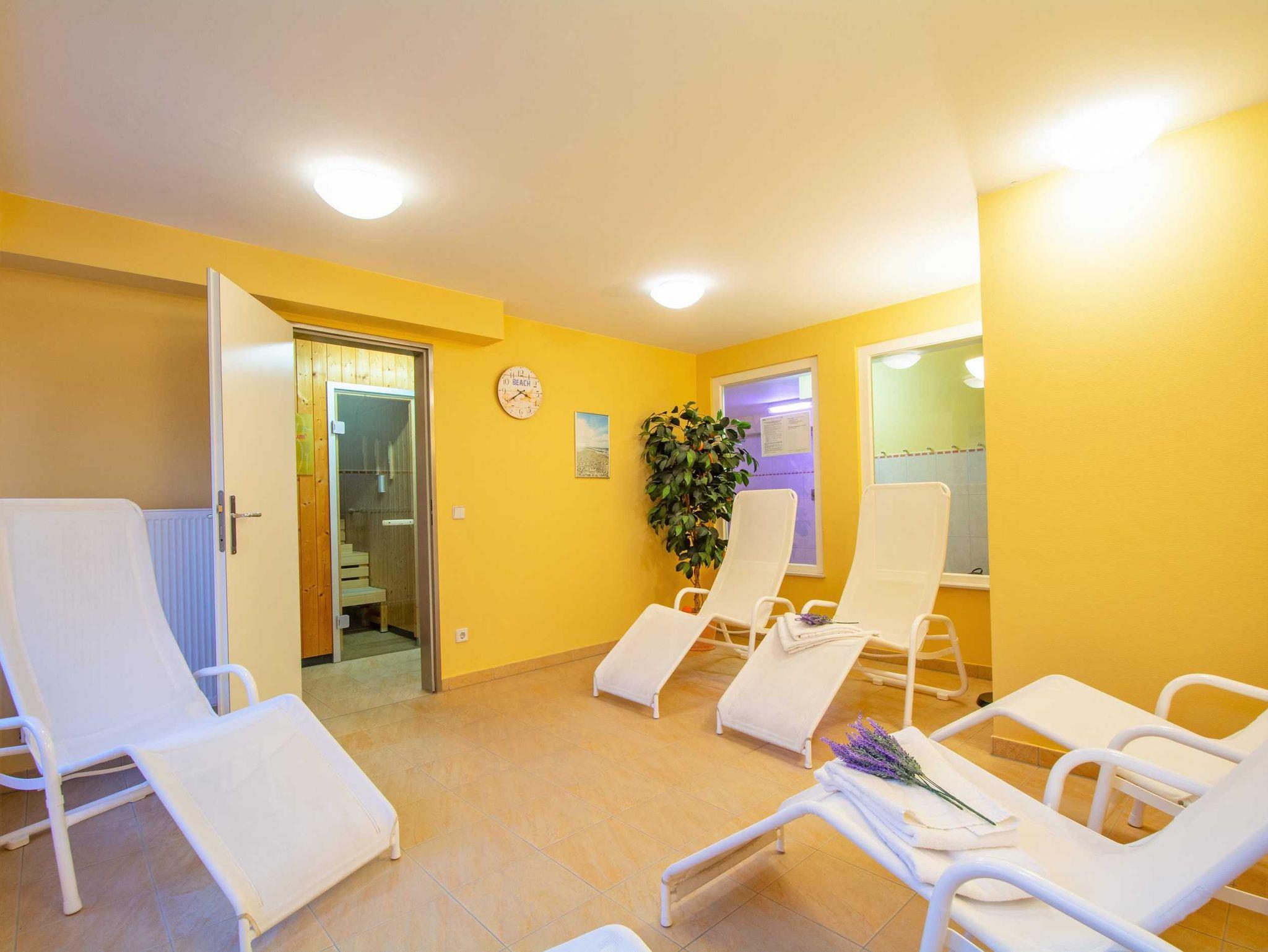 Aber auch an kalten Tagen ist die Wohnanlage ein Top-Urlaubsziel: Unseren Gästen steht kostenlos eine Sauna zur Verfügung. Weiterhin gibt es einen Aufzug und einen Fahrradabstellraum im Haus. Waschmaschine und Wäschetrockner können gegen Gebühr benutzt werden.
