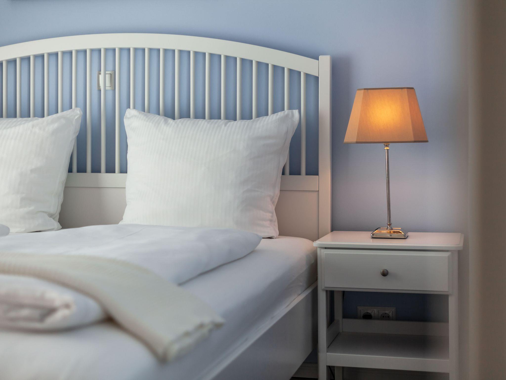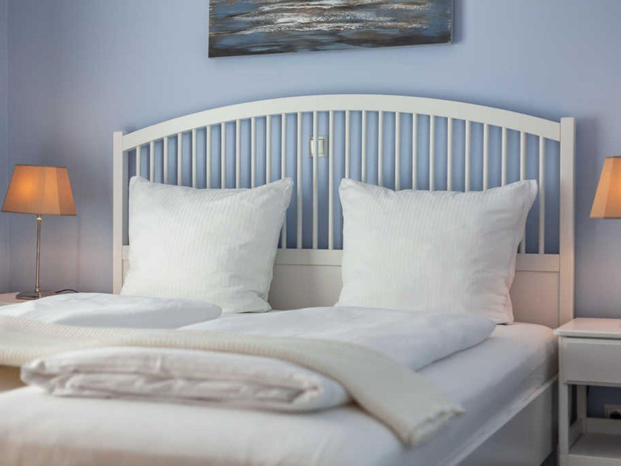 Nur 150 m vom Strand wohnen Sie in einer 2-Raum-Ferienwohnung. Die 50 qm große Wohnung liegt in der 1. Etage. Das Wohnzimmer ist mit einer Couch, Couchtisch, Sessel, Anrichte, mit Kabel-TV, Radio, Essbereich (Tisch und Stühle) und Küchenzeile ausgestattet. Der Balkon mit Tisch und Stühle geht zur Südseite. Im Schlafzimmer stehen ein Doppelbett und ein Kleiderschrank. Die Küchenzeile wurde ausgestattet mit Mikrowelle, Kühlschrank, Kaffeemaschine, Ceran-Kochfeld, Toaster und Wasserkocher. Das Bad mit Wanne und WC komplettiert die Wohnung.