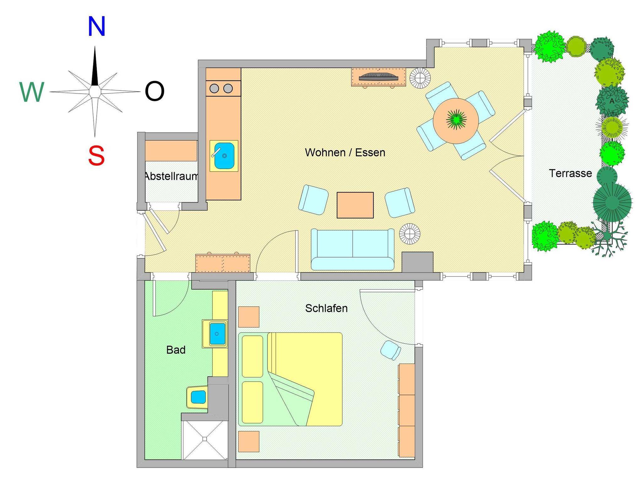 KOMFORTABLE 2-RAUM-FERIENWOHNUNG MIT OST-TERRASSE