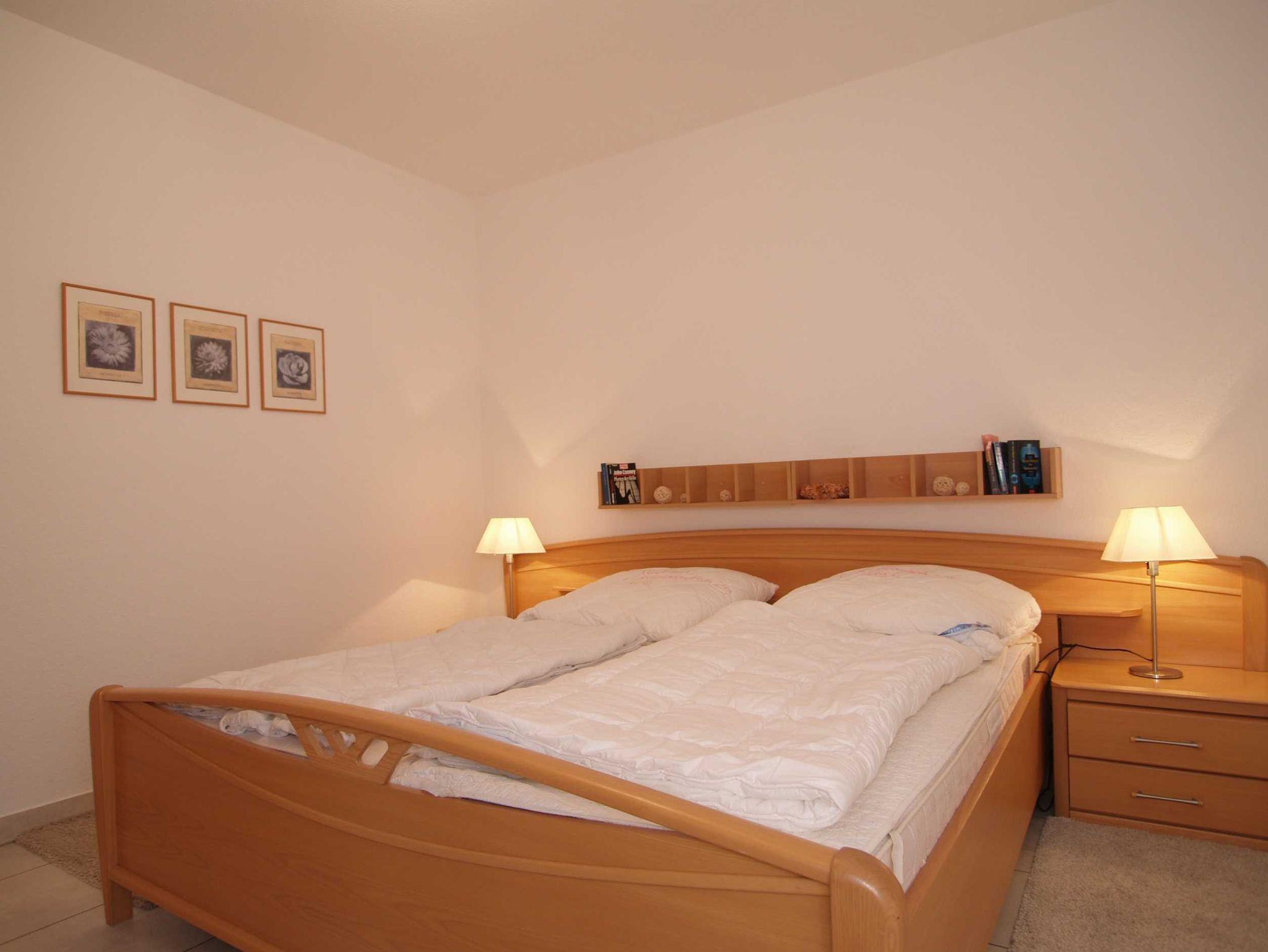 Im Schlafzimmer erwartet Sie ein gemütliches Doppelbett, das für erholsame Nächte sorgt. Der große Kleiderschrank bietet ausreichend Stauraum für Ihre Urlaubsgarderobe. Zusätzlich gibt es einen kleinen Abstellraum, der für noch mehr Stauraum sorgt.