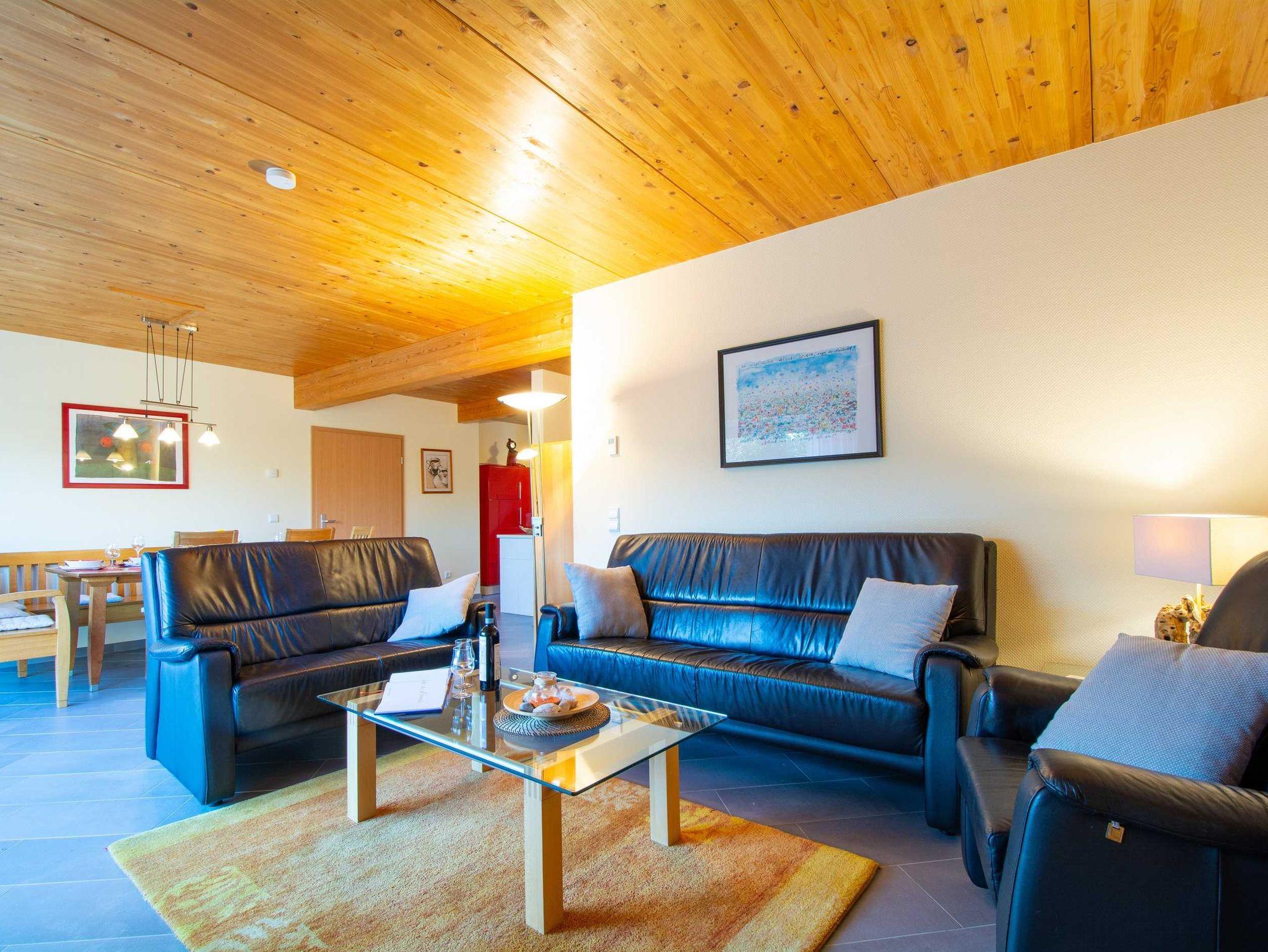 Das liebevoll und modern eingerichtete 4-Raum-Appartement mit einer Gesamtfläche von 145 qm erstreckt sich über 2 Etagen und bietet Platz für 2 bis 6 Personen. Es empfangen Sie ein heller offener Wohn-und Essbereich mit einer Küchenzeile, drei Schlafzimmer, zwei Bäder, eine Sauna sowie eine Terrasse mit Gartenanteil.