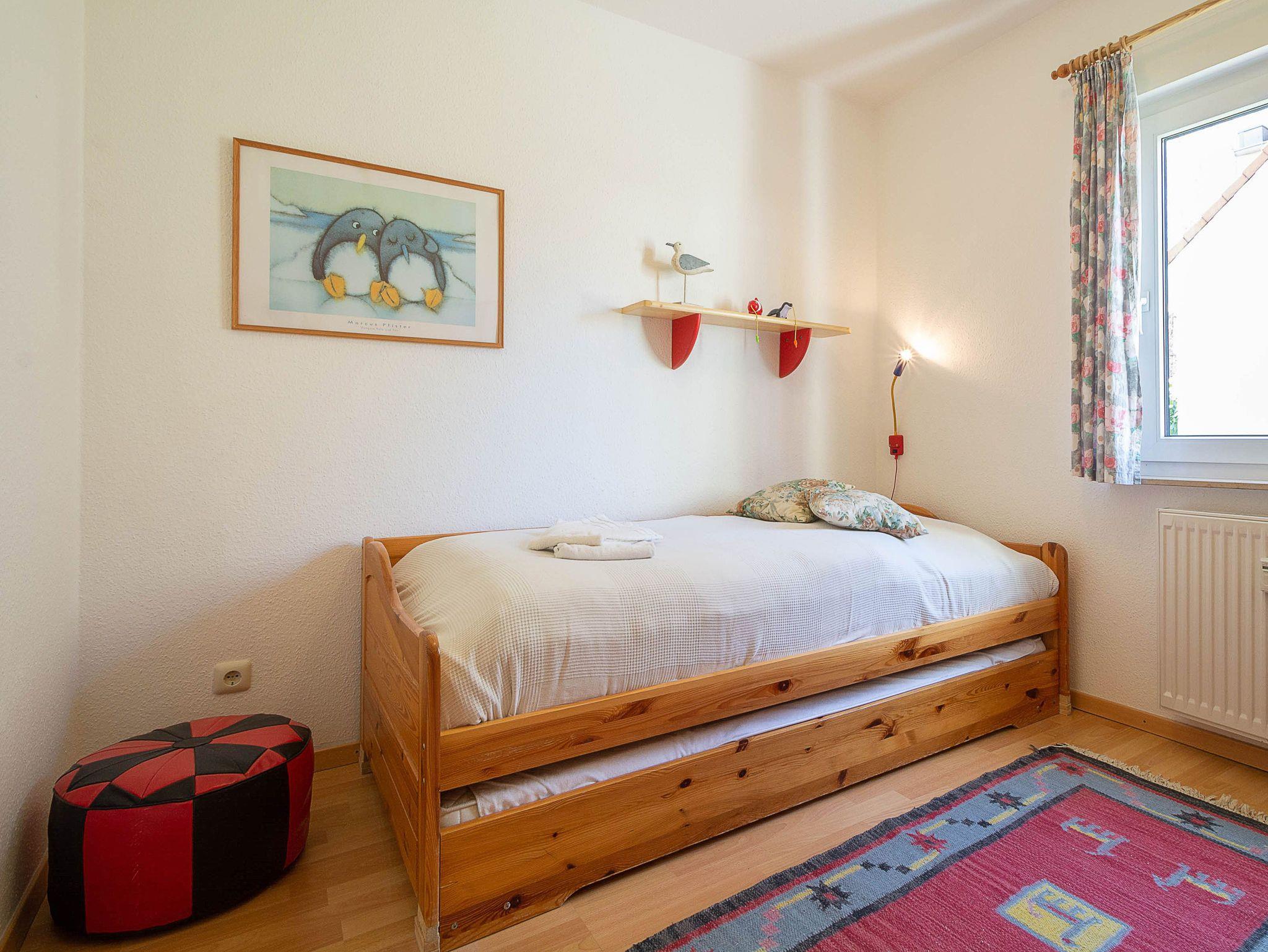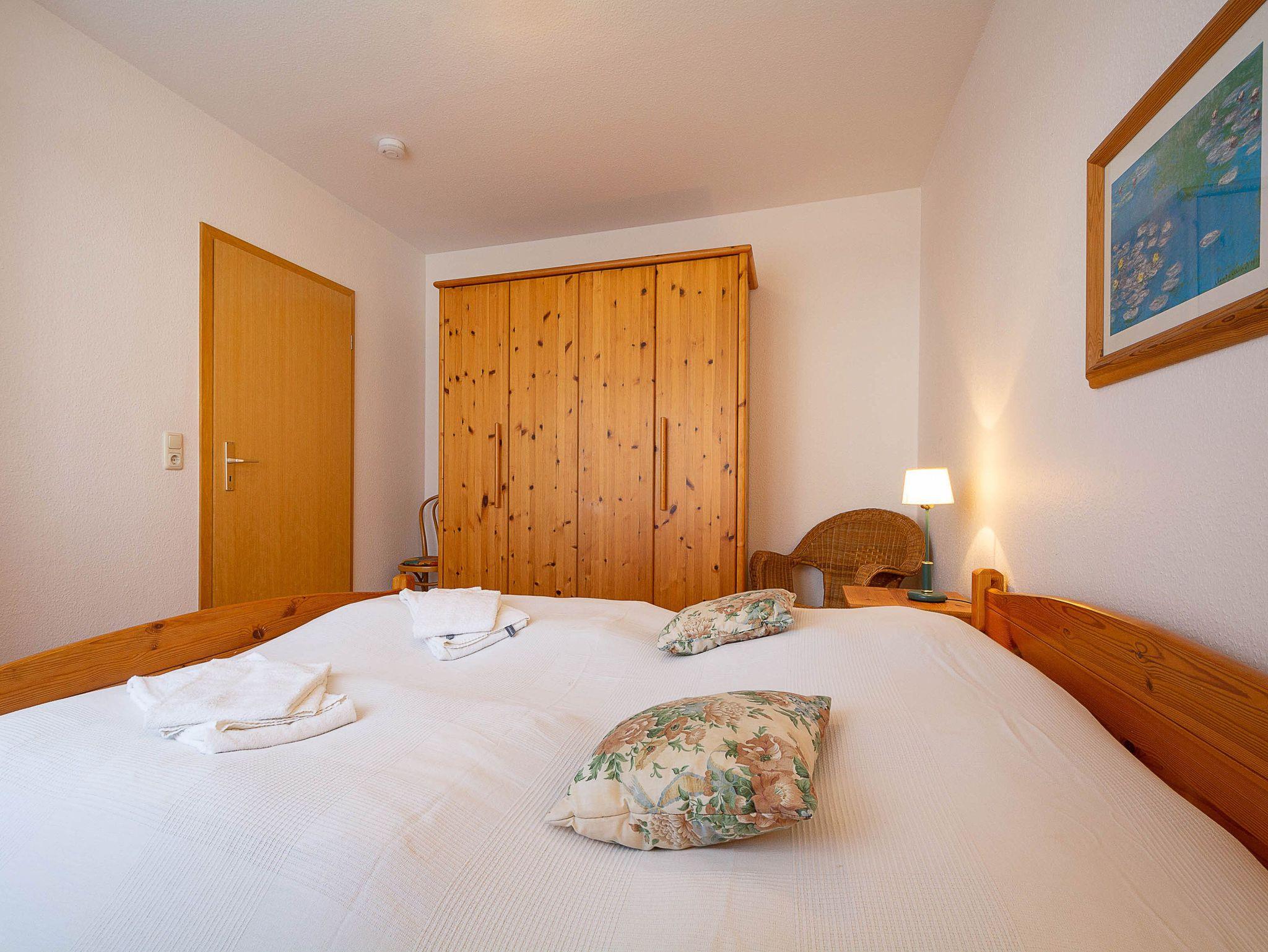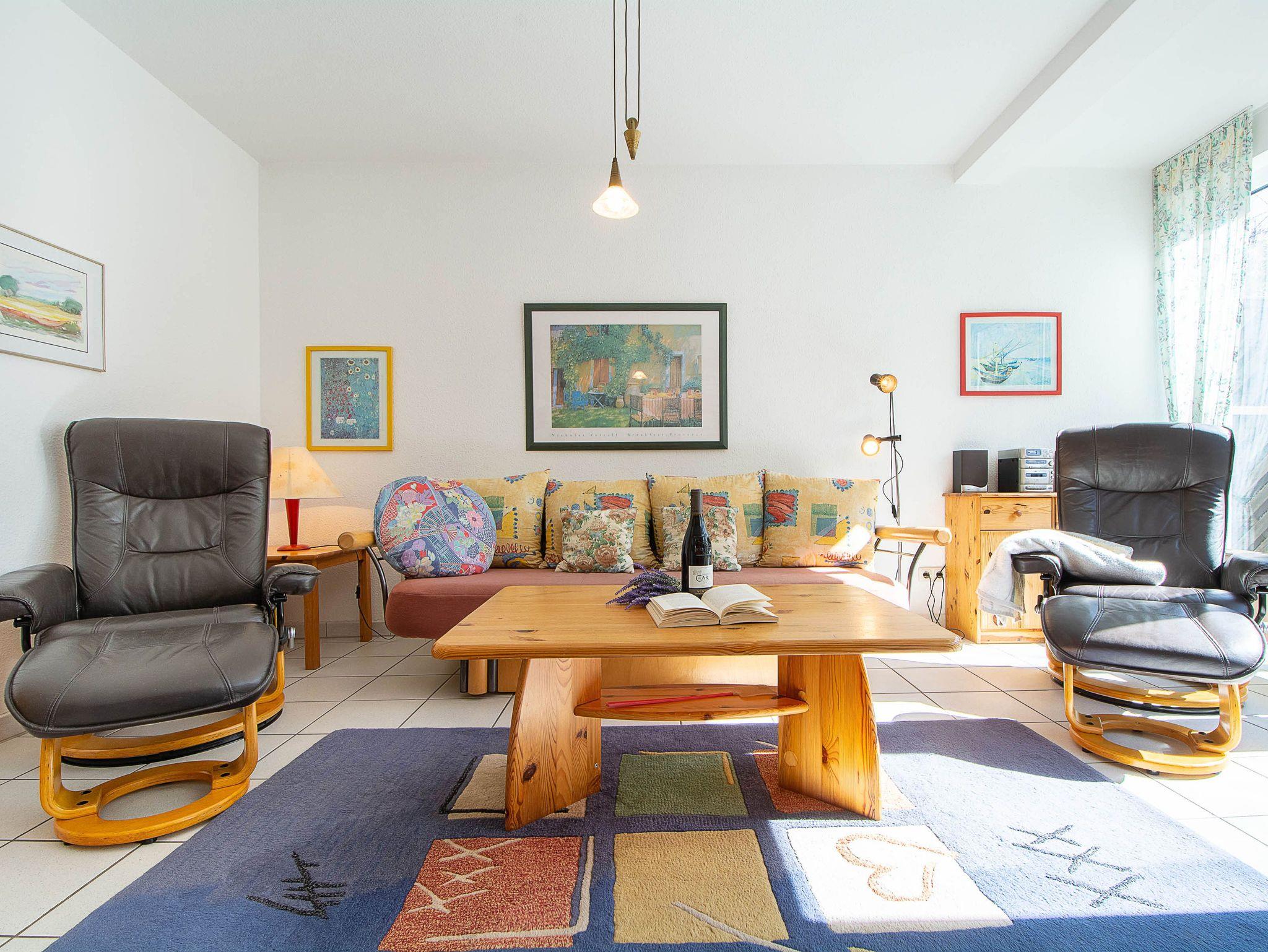 Sie wohnen in einer komfortablen 3-Raum-Ferienwohnung von ca. 65 qm Größe, die sich im Erdgeschoss eines Mehrfamilienhauses befindet. Das helle freundliche Wohnzimmer ist ausgestattet mit einer Sitzgruppe mit Schlafcouch (ausziehbar 150cm Breite), Radio und 43-Zoll-Flachbild-TV sowie einem Esstisch und einer offenen Küchenzeile. Die Küche ist ausgestattet mit allen wichtigen Küchengeräten und -utensilien, die Sie für Ihr „perfektes Dinner“ benötigen: Herd mit Backofen und Dunstabzug, Geschirrspüler, Kühlschrank mit Gefrierfach, Mikrowelle, Wasserkocher, Kaffeemaschine und Toaster sowie ausreichend Kochutensilien, Geschirr und Besteck sind vorhanden. Vom Wohnraum aus betreten Sie die Terrasse, die in Richtung Süden ausgerichtet ist. Hier können nach einem erlebnisreichen Tag am Strand Ihren Abend zu einem Gläschen Wein ausklingen lassen. Ein Schlafzimmer mit Doppelbett (180cm x 200cm) und ein Schlafzimmer mit Einzel- und Rollbett (jeweils 90cm x 200cm) sowie das Bad mit Dusche und WC vervollständigen das Gesamtbild dieser Wohnung.