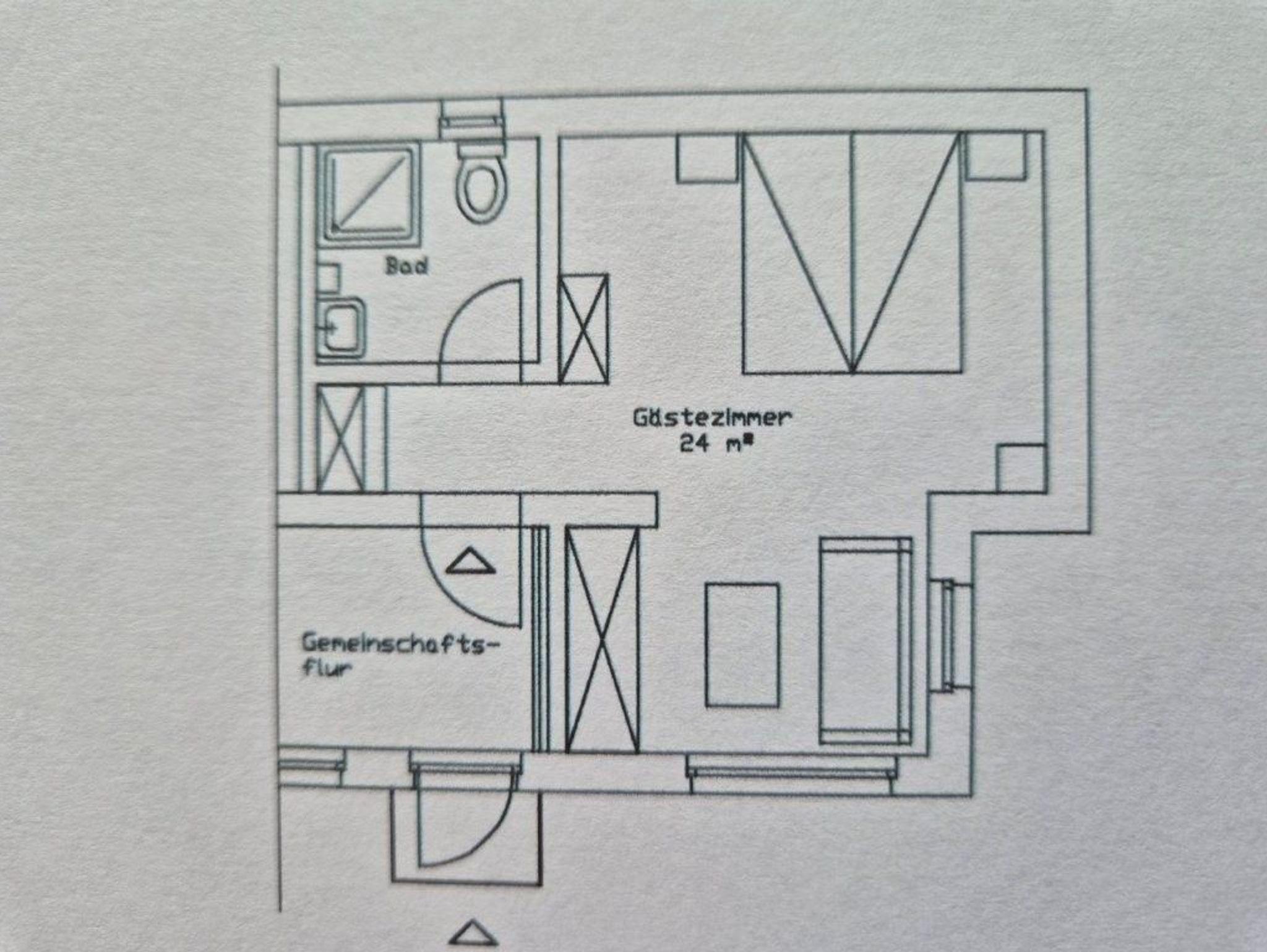 Ferienzimmer mit Bad 24 m² Parterre