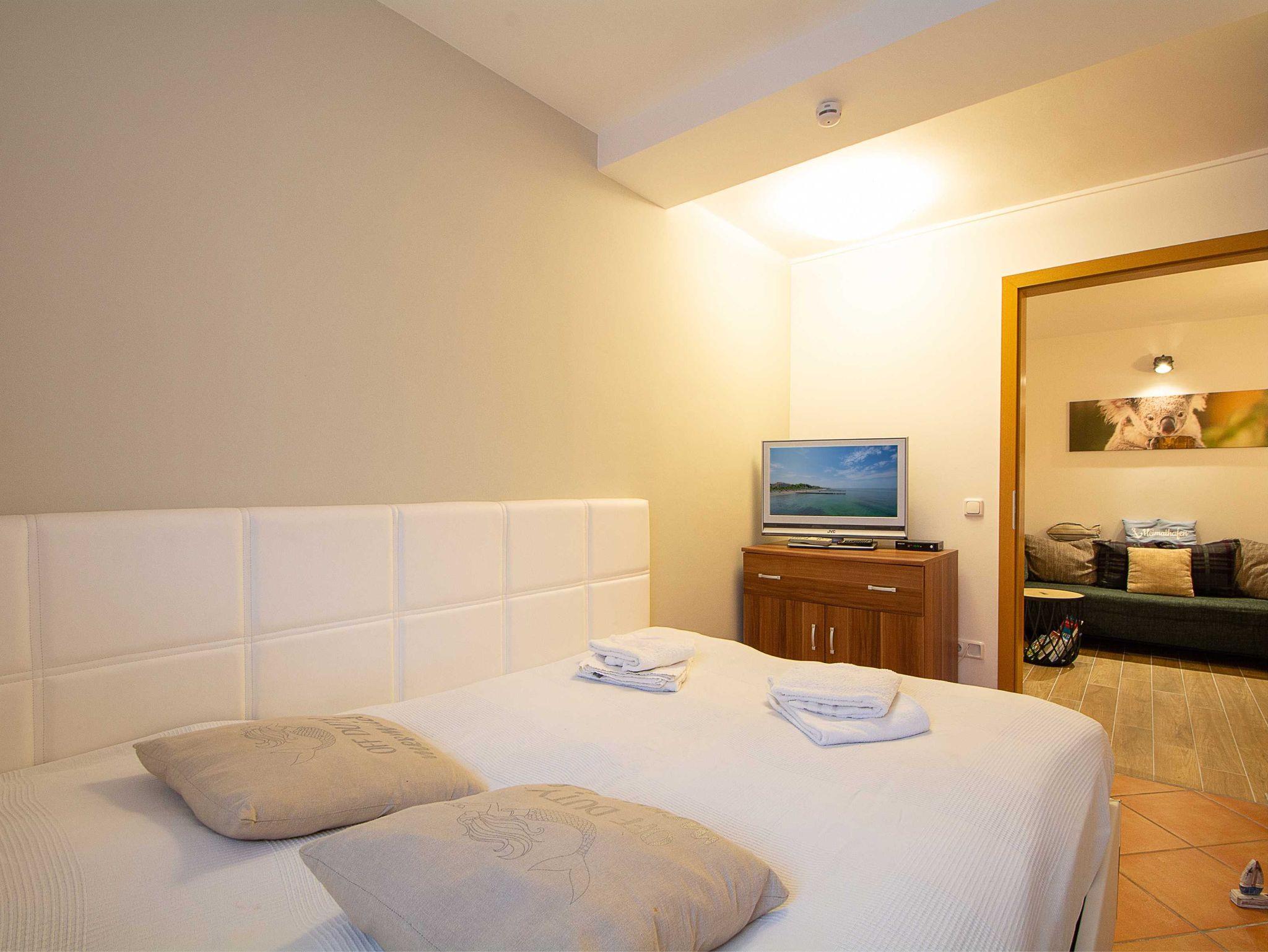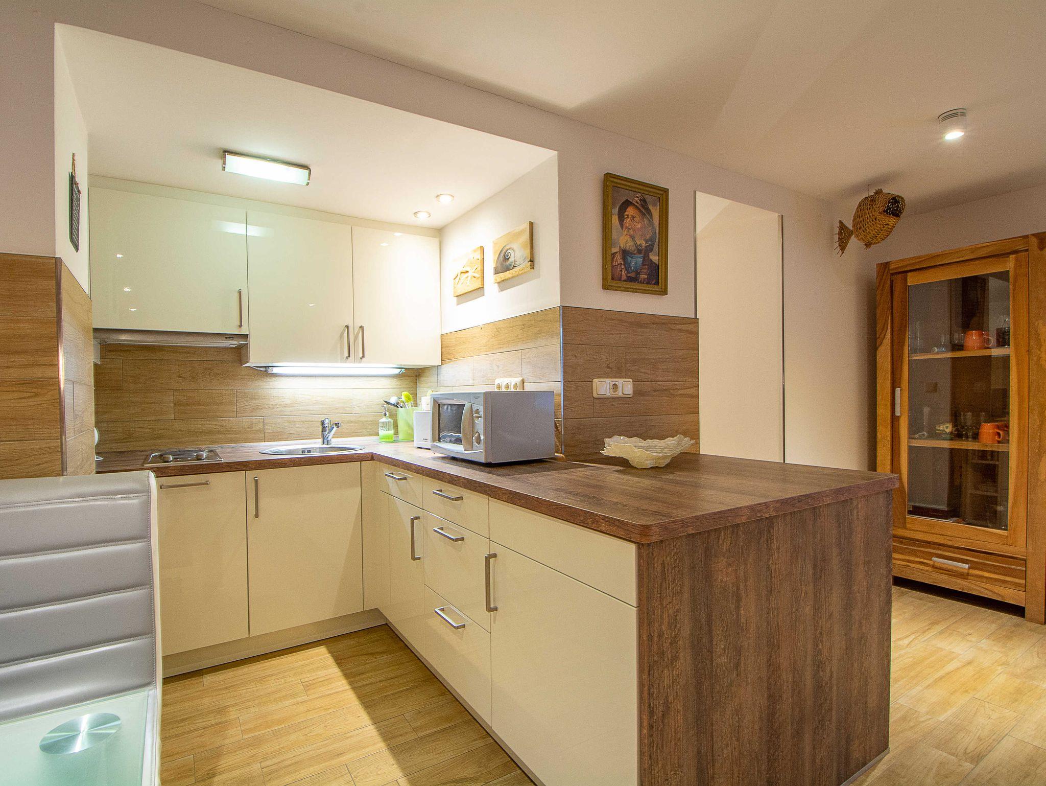 Hier kann Ihr perfekter Urlaub an der Ostsee beginnen! Die mit sehr viel Liebe zum Detail eingerichtete 2-Raum-Ferienwohnung befindet sich im Souterrain der Villa Victoria. Die etwa 50m² große Wohnung ist für 2 bis 3 Personen geeignet und zeichnet sich durch ihr modernes gepflegtes Interieur aus. Der freundliche offene Wohnraum ist ausgestattet mit einer großen gemütlichen Schlafcouch, einem Essplatz, sowie Flachbild-TV und Stereoanlage. Für Lesefreudige gibt es eine kleine Auswahl an Büchern im Schrank. Dem Wohnraum schließt sich die offene Küchenzeile an, die mit allen wichtigen Küchenutensilien, die Sie für Ihr perfektes Dinner benötigen, ausgestattet ist: Hier befindet sich ein 2-Platten-Kochfeld, eine Mikrowelle, ein Geschirrspüler, Kaffeemaschine, Wasserkocher und ein Toaster sowie ausreichend Geschirr, Besteck und Kochutensilien. Im Vorraum befindet sich ebenfalls eine kleine Couch. Für unsere kleinen Gäste ist auch etwas Spielzeug vorhanden. Das helle gemütliche Schlafzimmer ist für 2 Personen ausgestattet. Der komfortable Kleiderschrank bietet genügend Platz für Ihre Urlaubsgarderobe. Ein kleiner Flachbild-Fernseher befindet sich ebenfalls im Schlafzimmer. Das moderne Tageslichtbad wurde im Frühjahr 2022 fertiggestellt und ist über 2 Stufen erreichbar. Es besticht durch seine indirekte Beleuchtung, die Fußbodenheizung und Handtuchwärmer sowie die bodengleiche große Regenwalddusche und eine kleine gemütliche Badewanne. Das wunderschöne Bad bietet genügend Ablagefläche für Ihre Badutensilien.